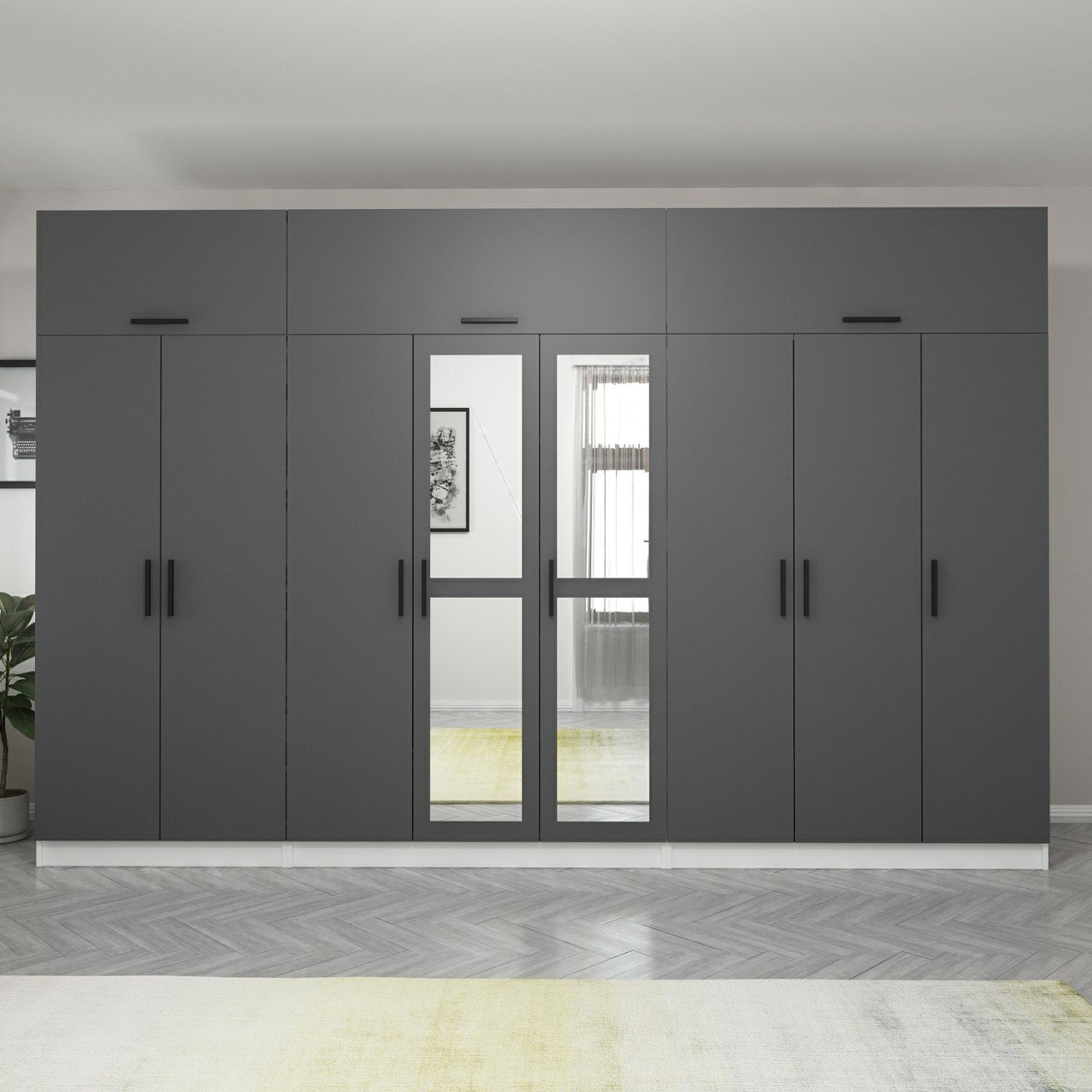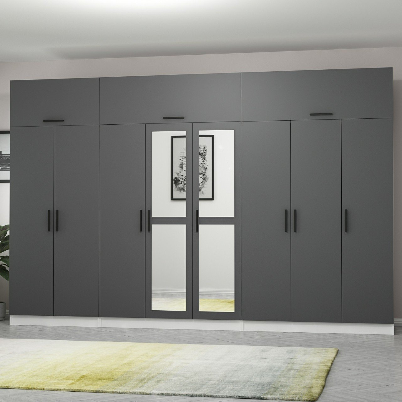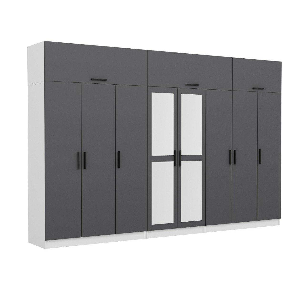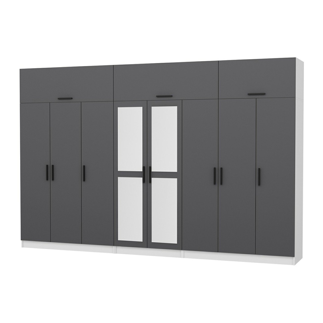 Minar Kale 8 Kapaklı 2 Aynalı 4 Ç Dolap Ve Yüklük Beyaz Antrasit