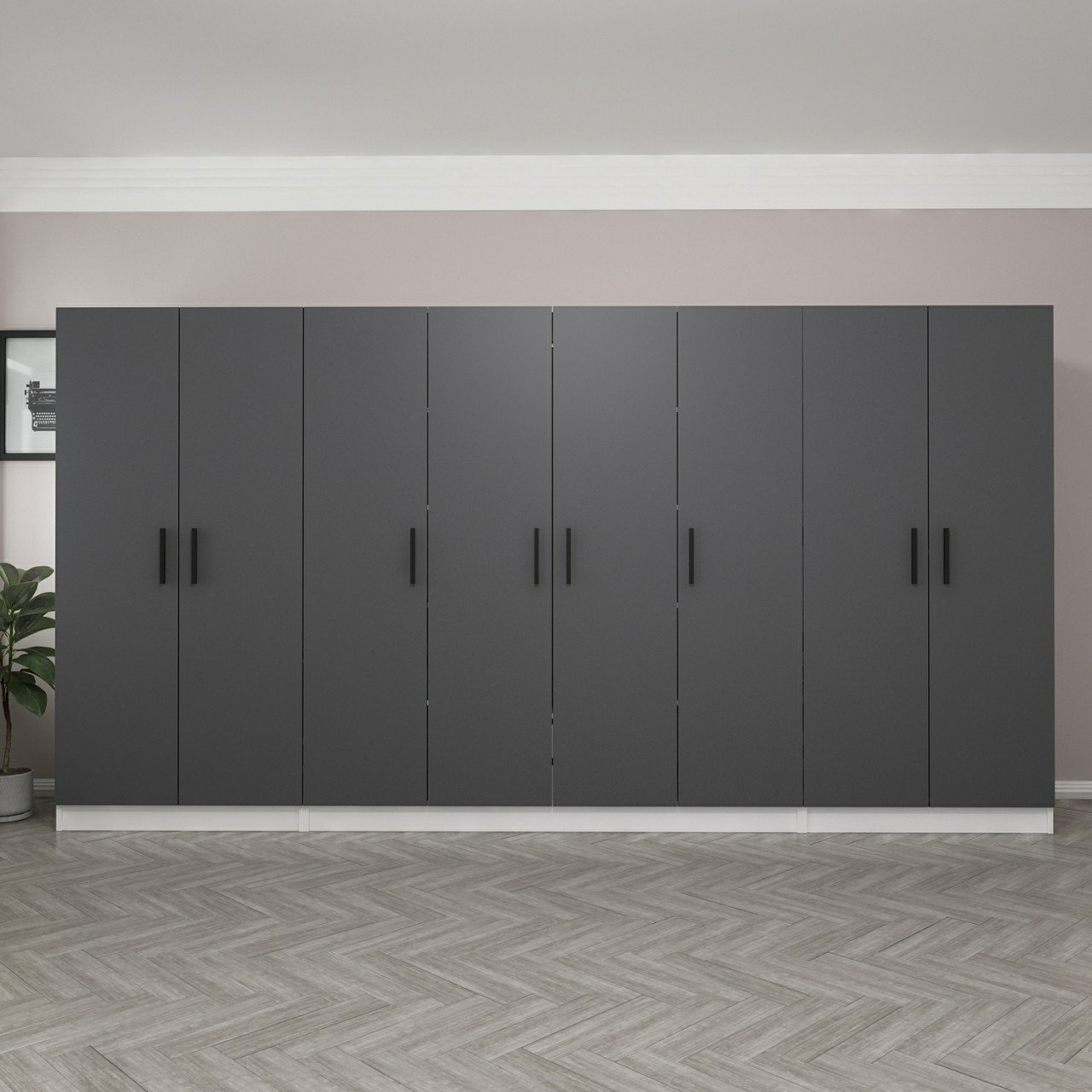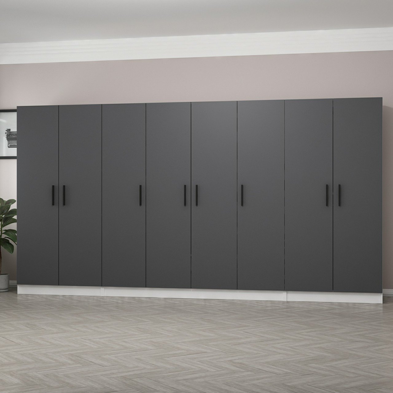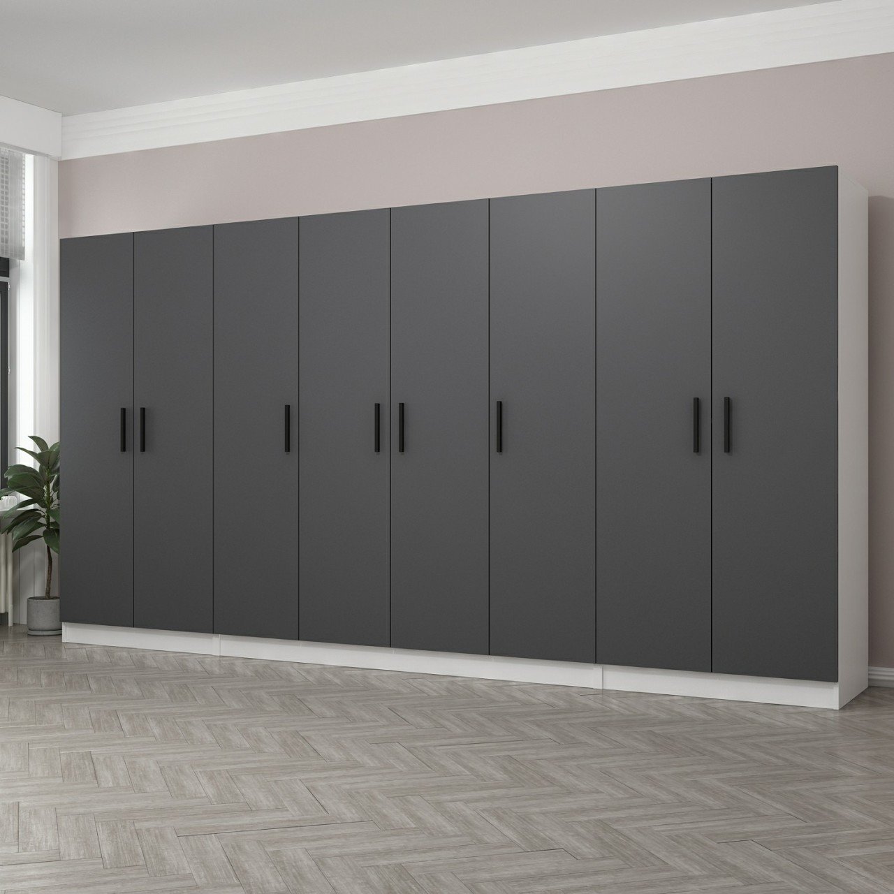 Minar Kale 8 Kapaklı 2 Çekmeceli Dolap Beyaz Antrasit