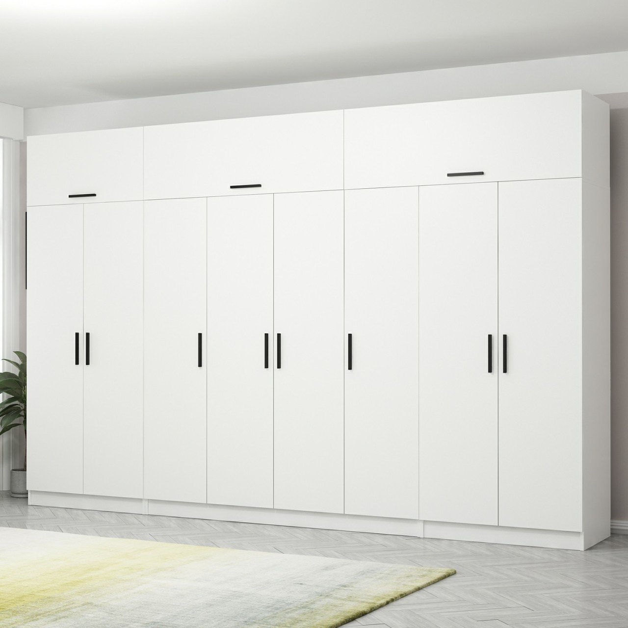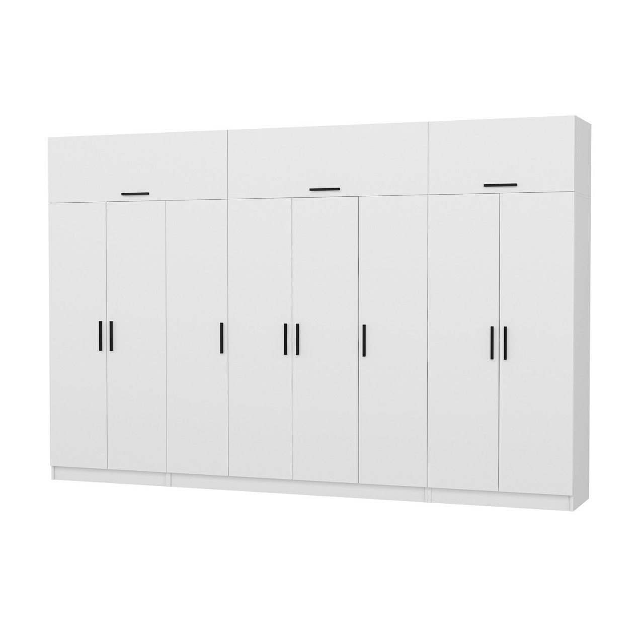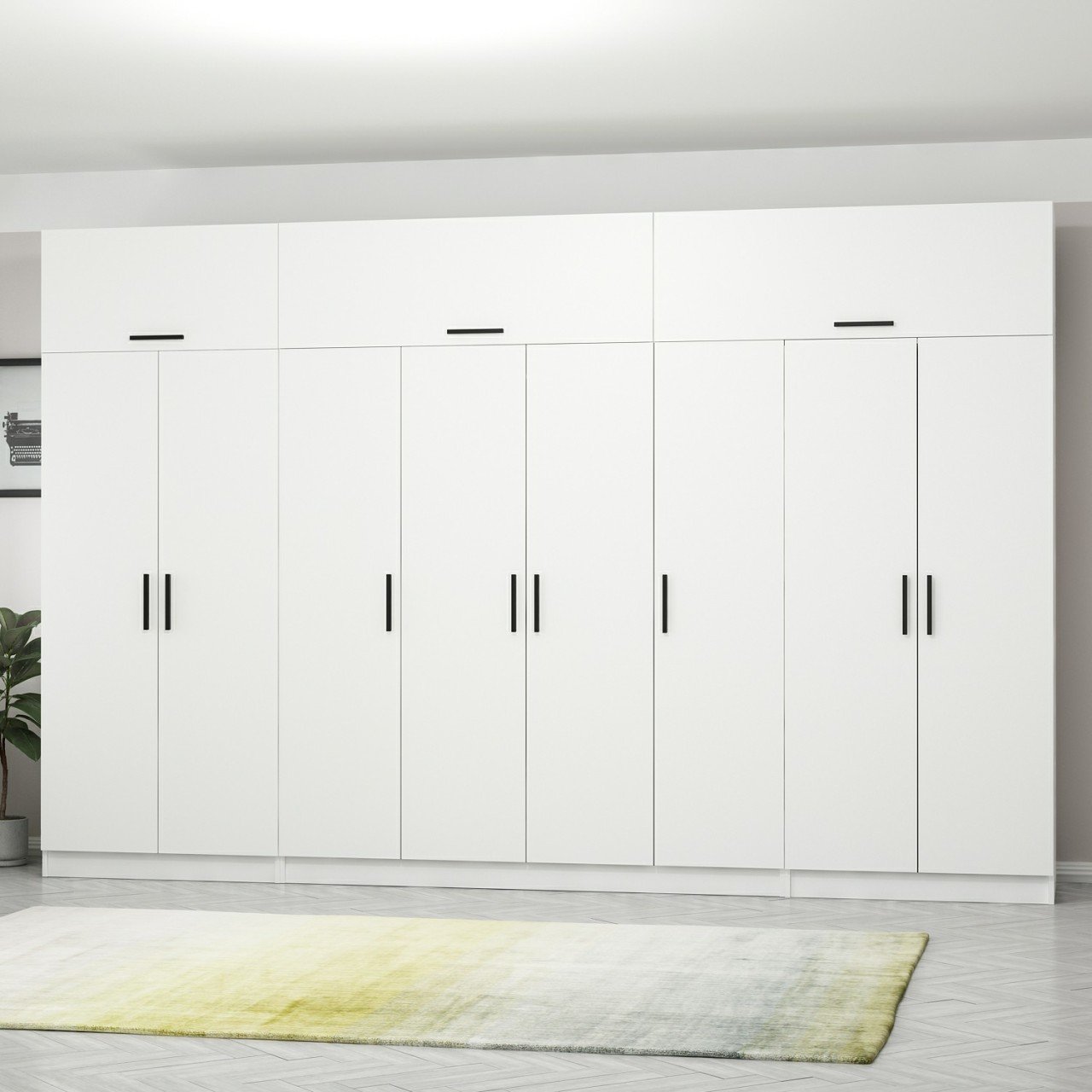 Minar Kale 8 Kapaklı 2 Çekmeceli Dolap Ve Yüklük Beyaz 255CM