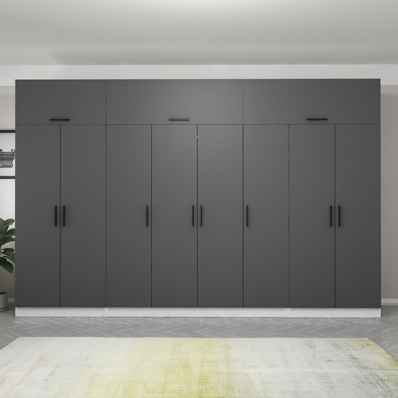 Minar Kale 8 Kapaklı 2 Çekmeceli Dolap Ve Yüklük Beyaz Antrasit