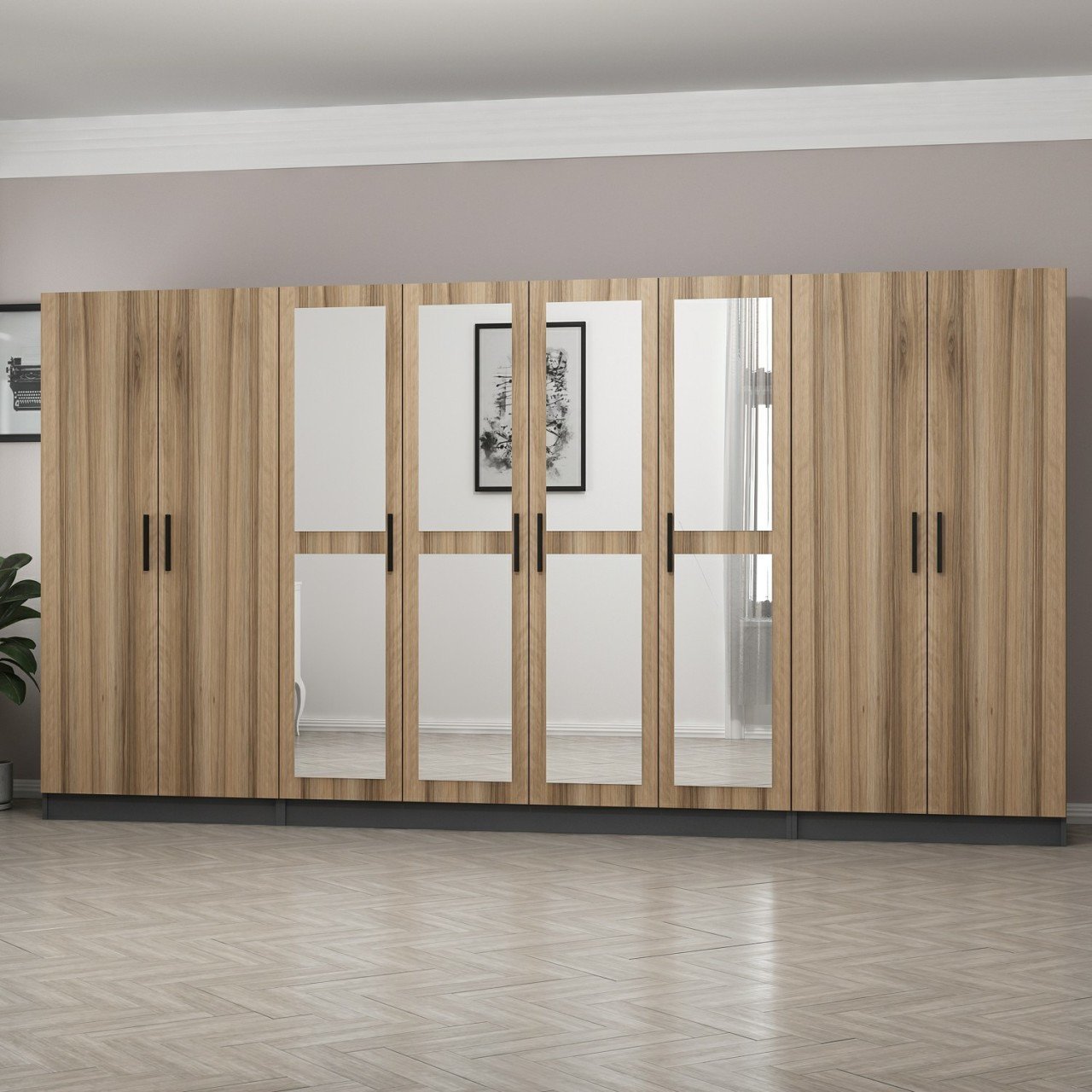 Minar Kale 8 Kapaklı 4 Aynalı 2 Çekmeceli Dolap Antrasit Dore