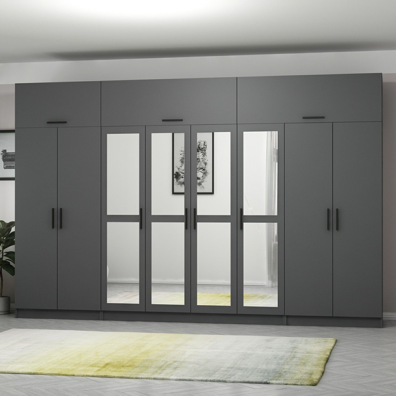 Minar Kale 8 Kapaklı 4 Aynalı 2 Ç Dolap Ve Yüklük Antrasit