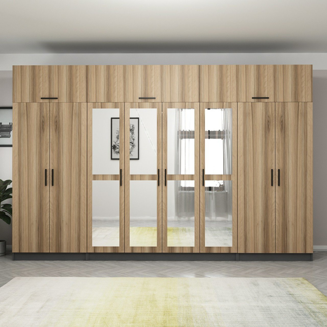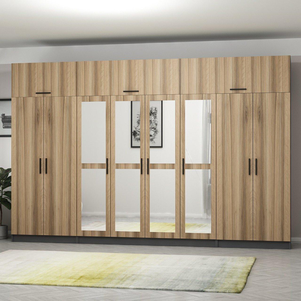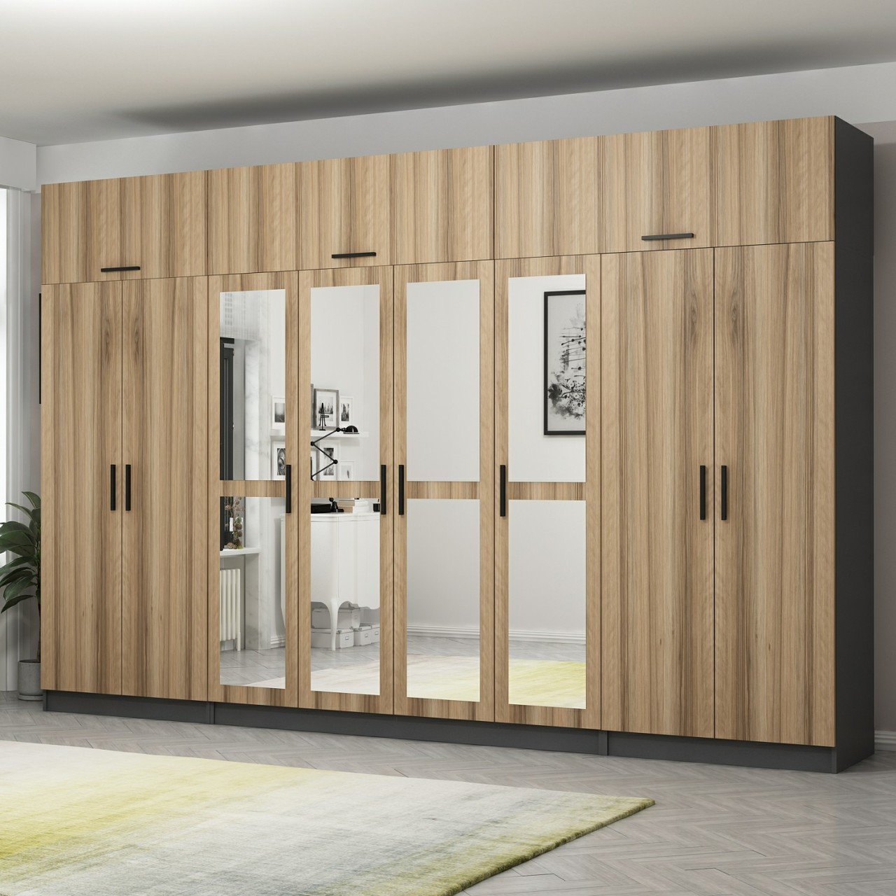 Minar Kale 8 Kapaklı 4 Aynalı 2 Ç Dolap Ve Yüklük Antrasit Dore