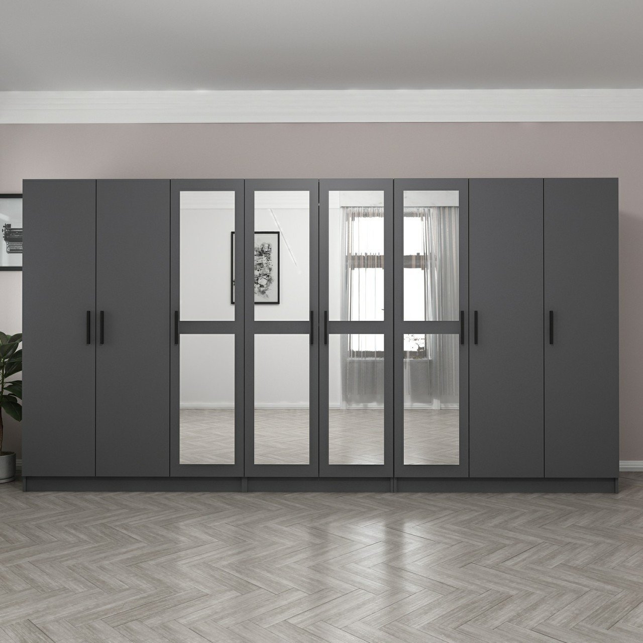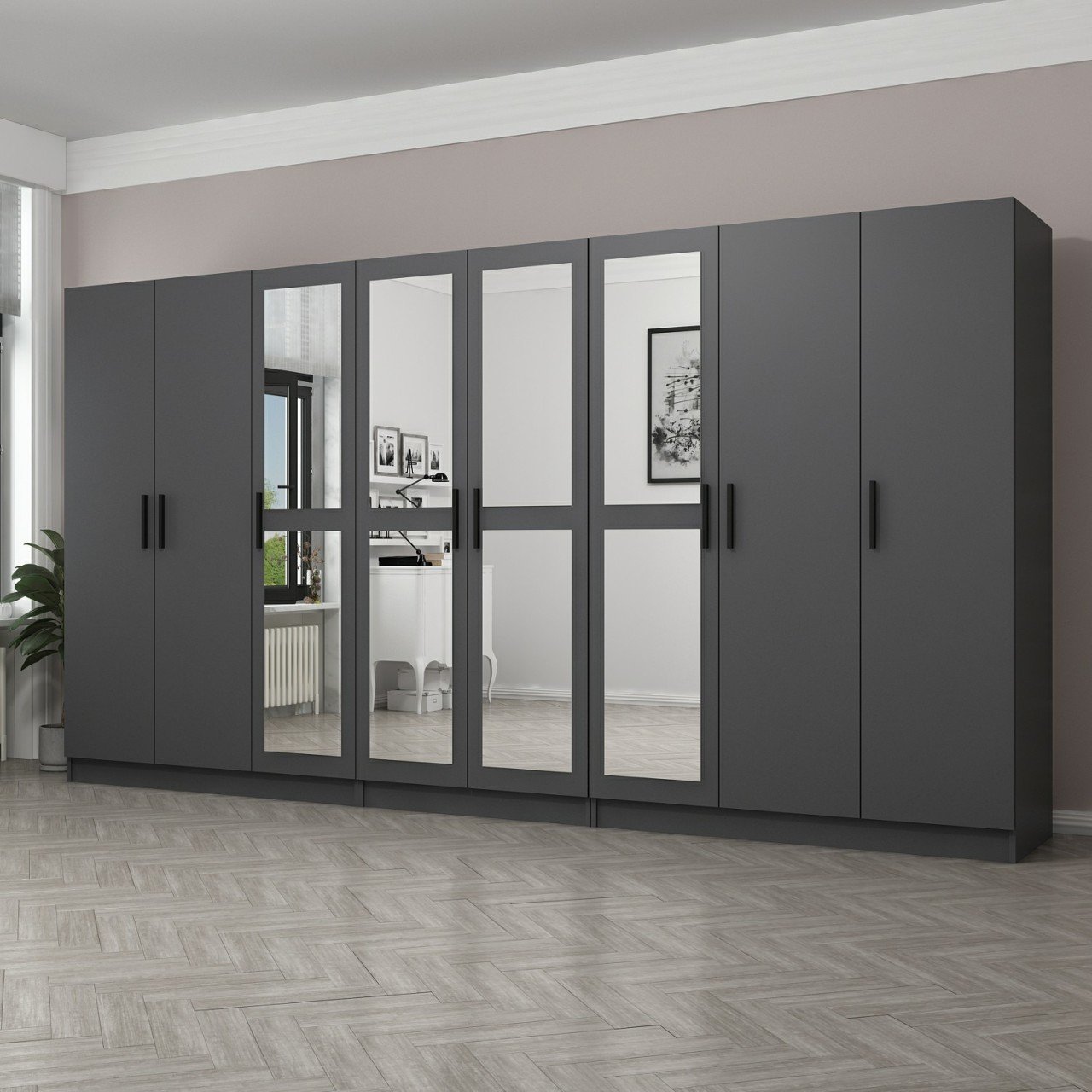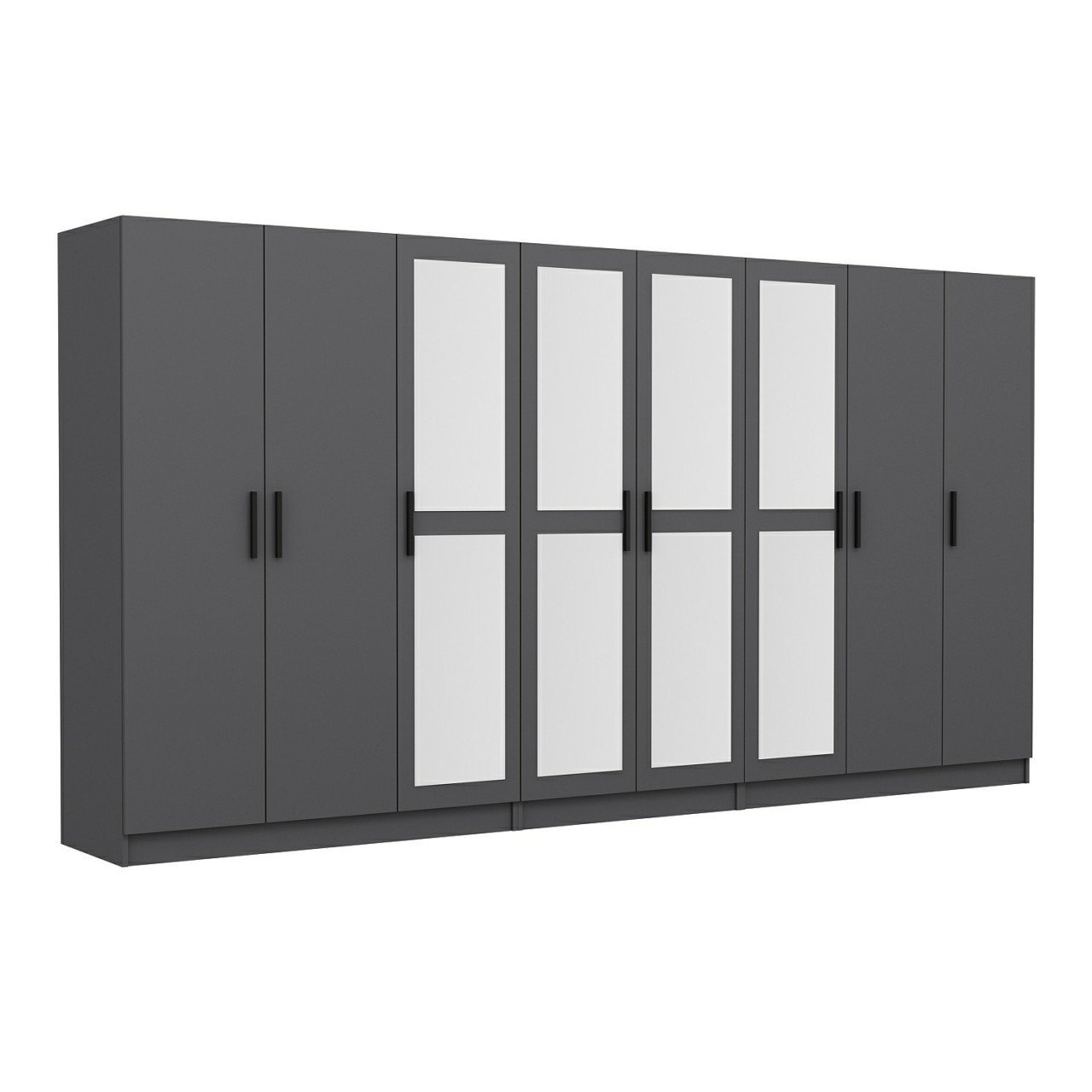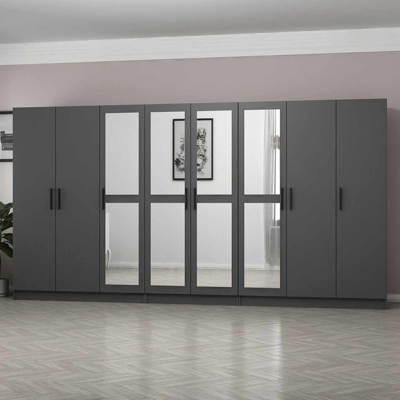 Minar Kale 8 Kapaklı 4 Aynalı 4 Çekmeceli Dolap Antrasit