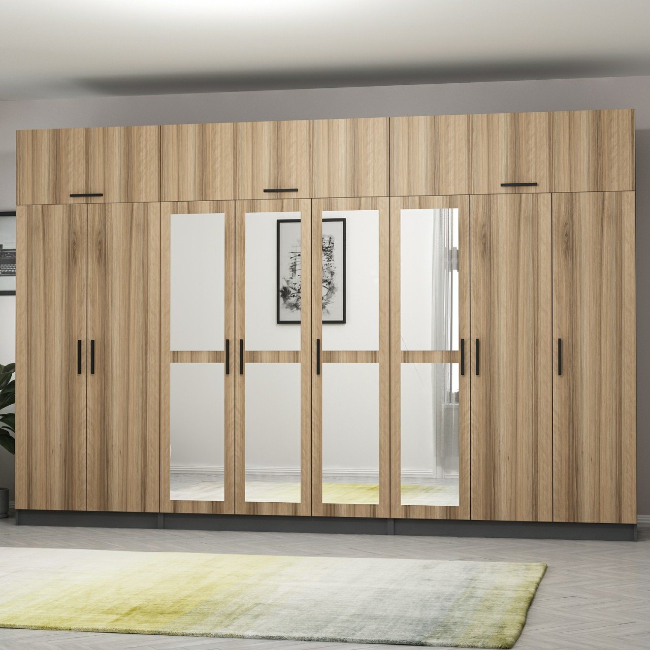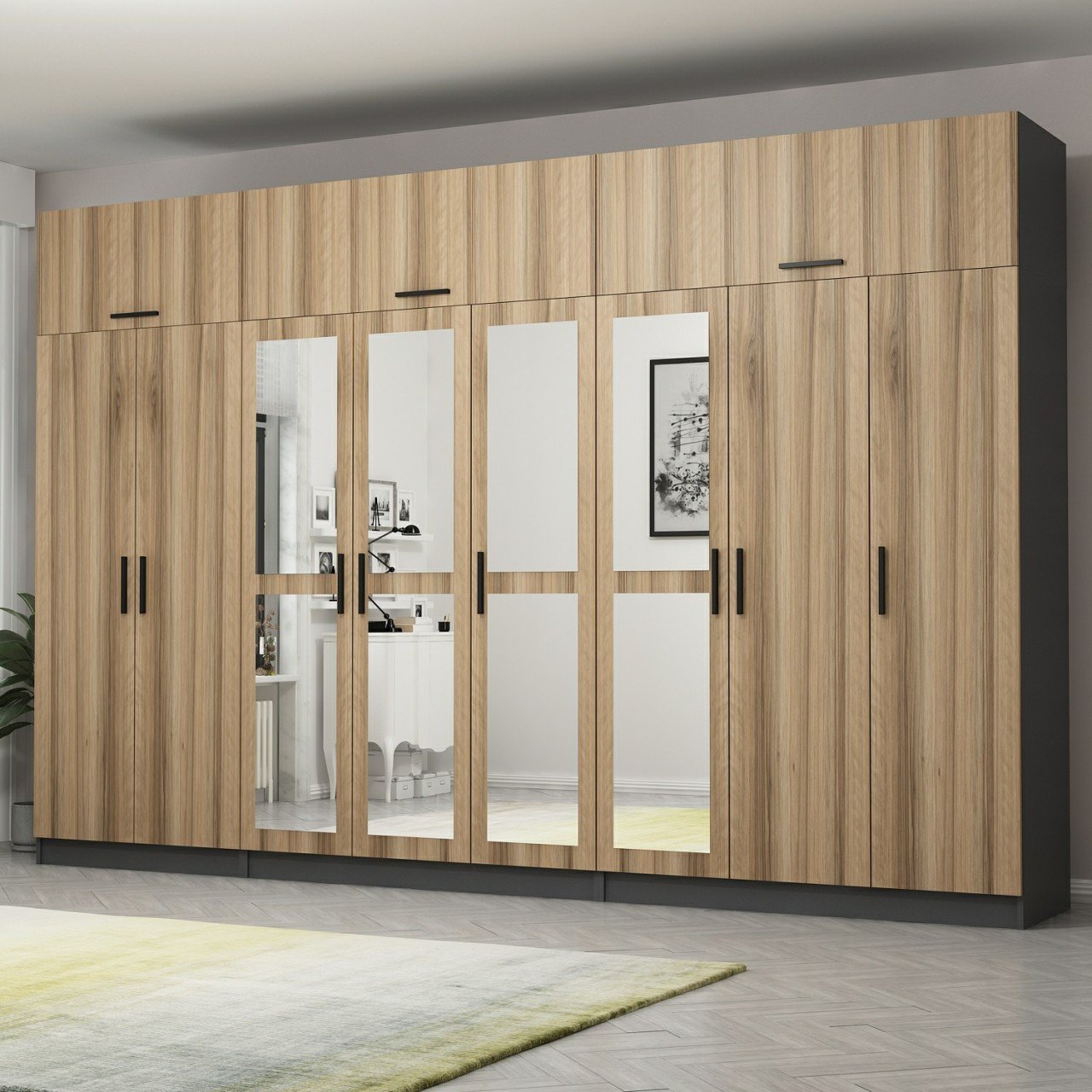Minar Kale 8 Kapaklı 4 Aynalı 4 Ç Dolap Ve Yüklük Antrasit Dore