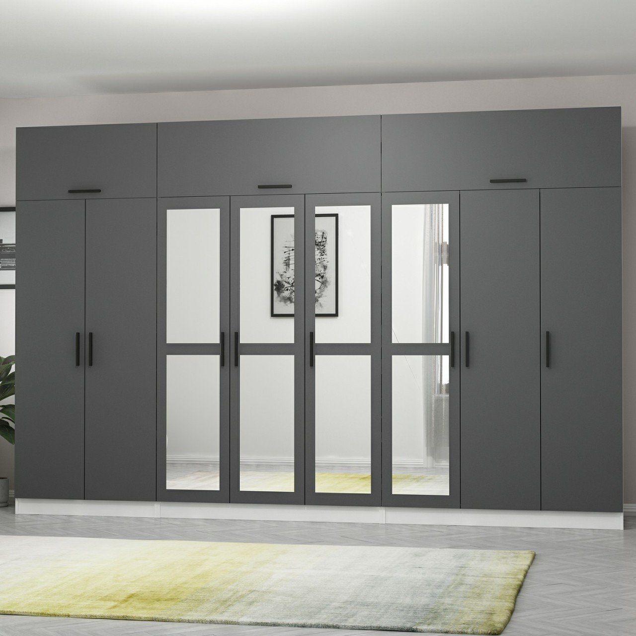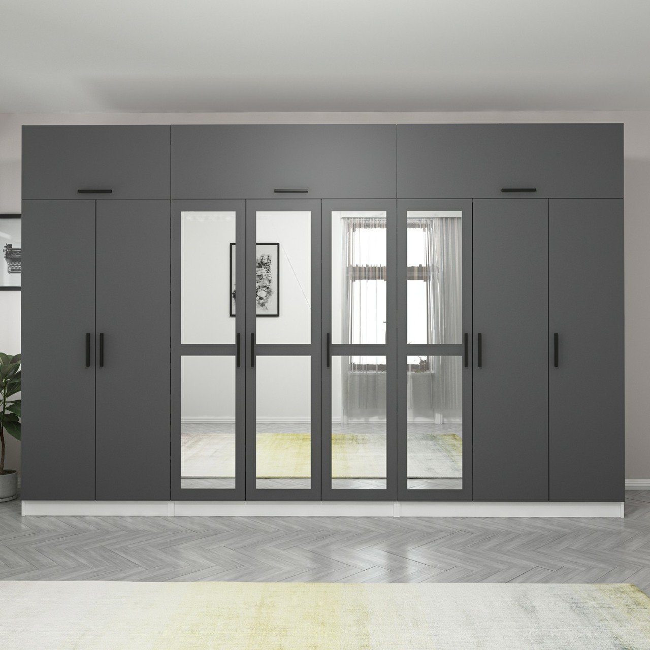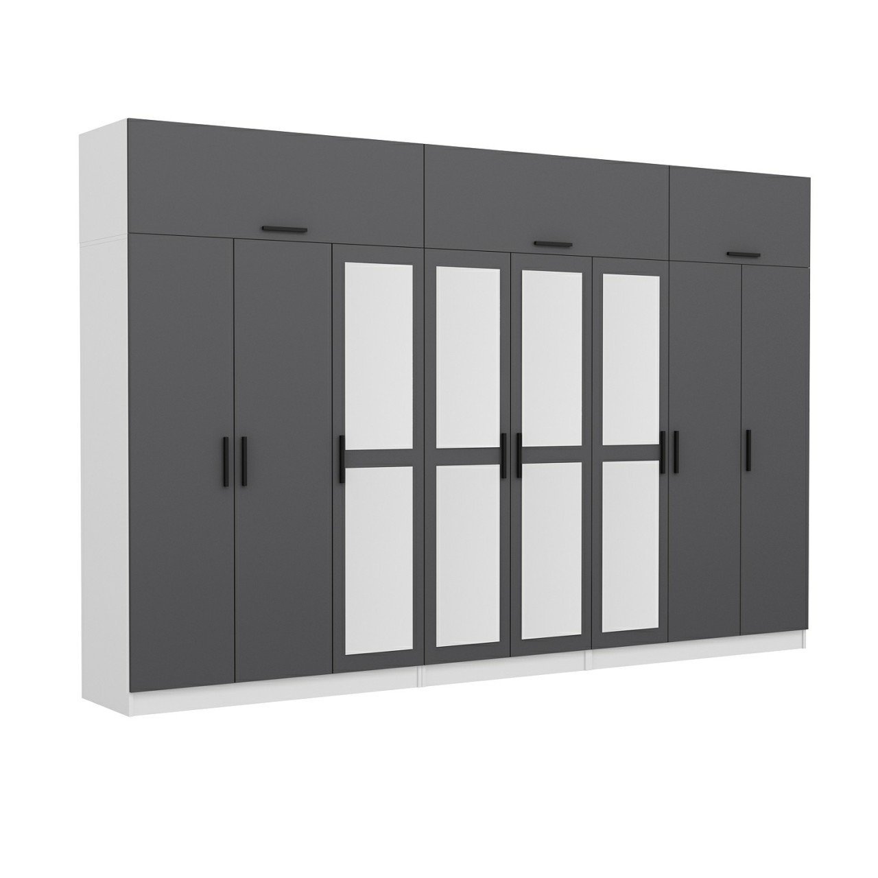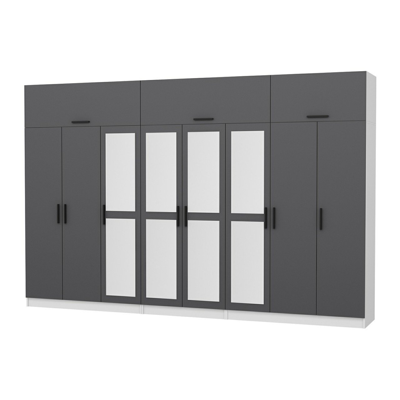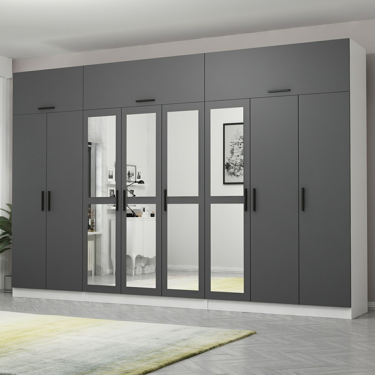 Minar Kale 8 Kapaklı 4 Aynalı 4 Ç Dolap Ve Yüklük Beyaz Antrasit
