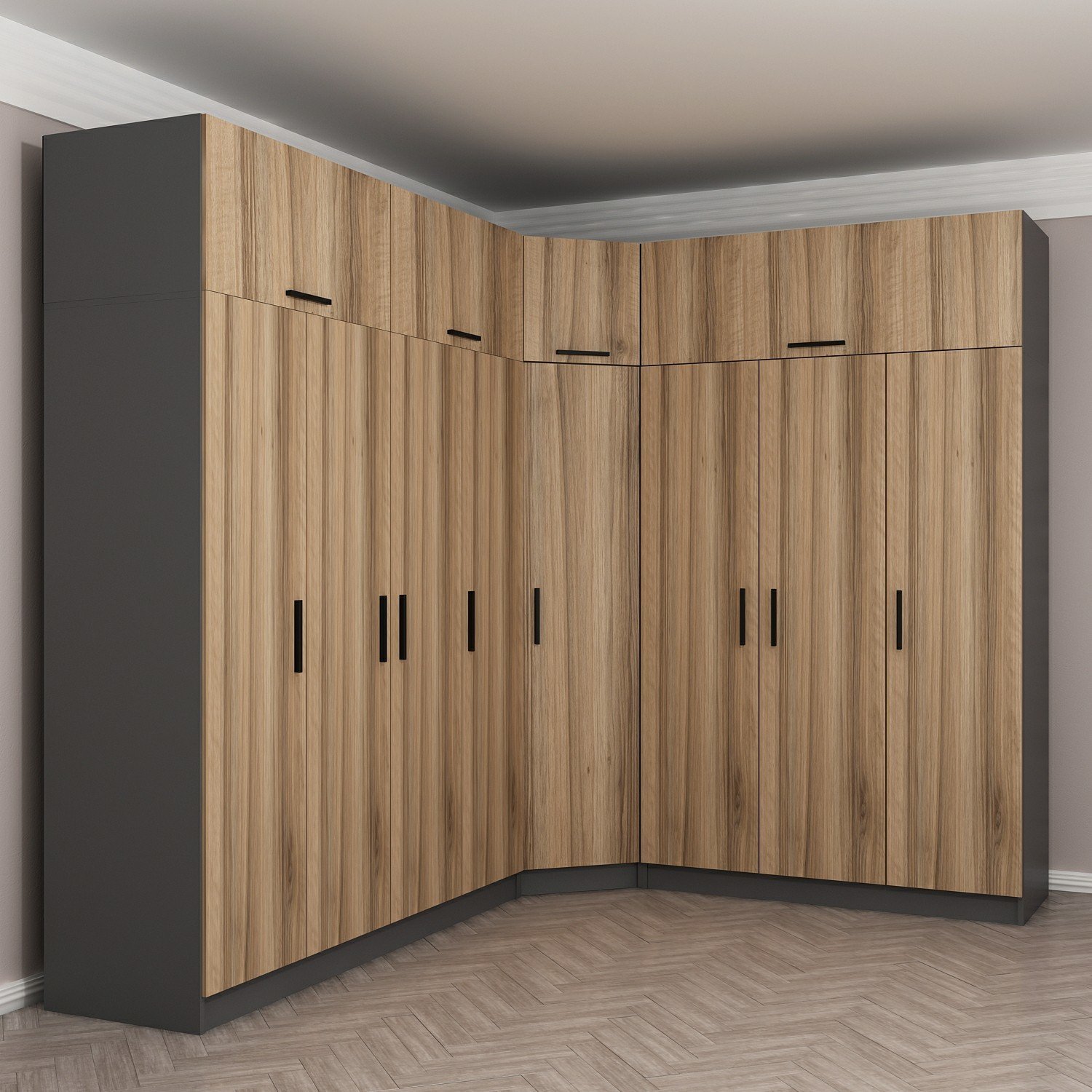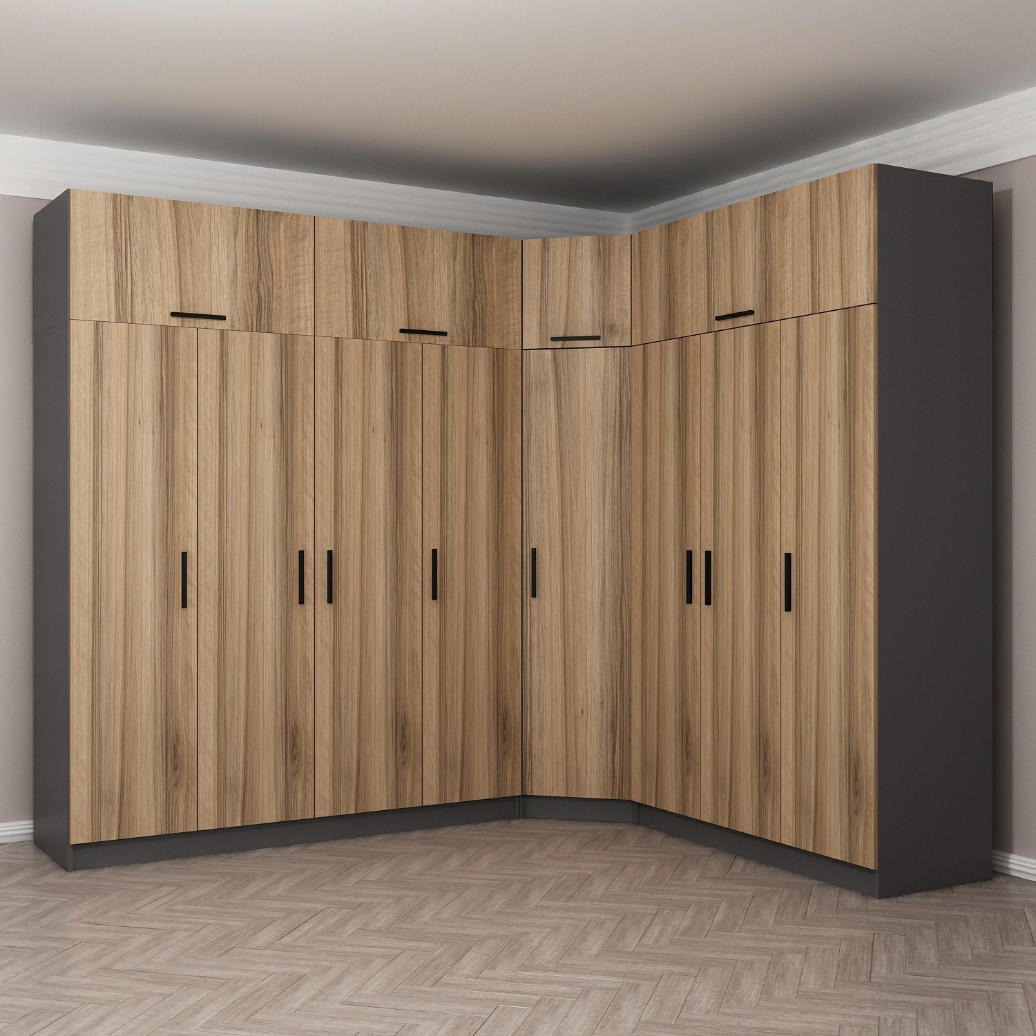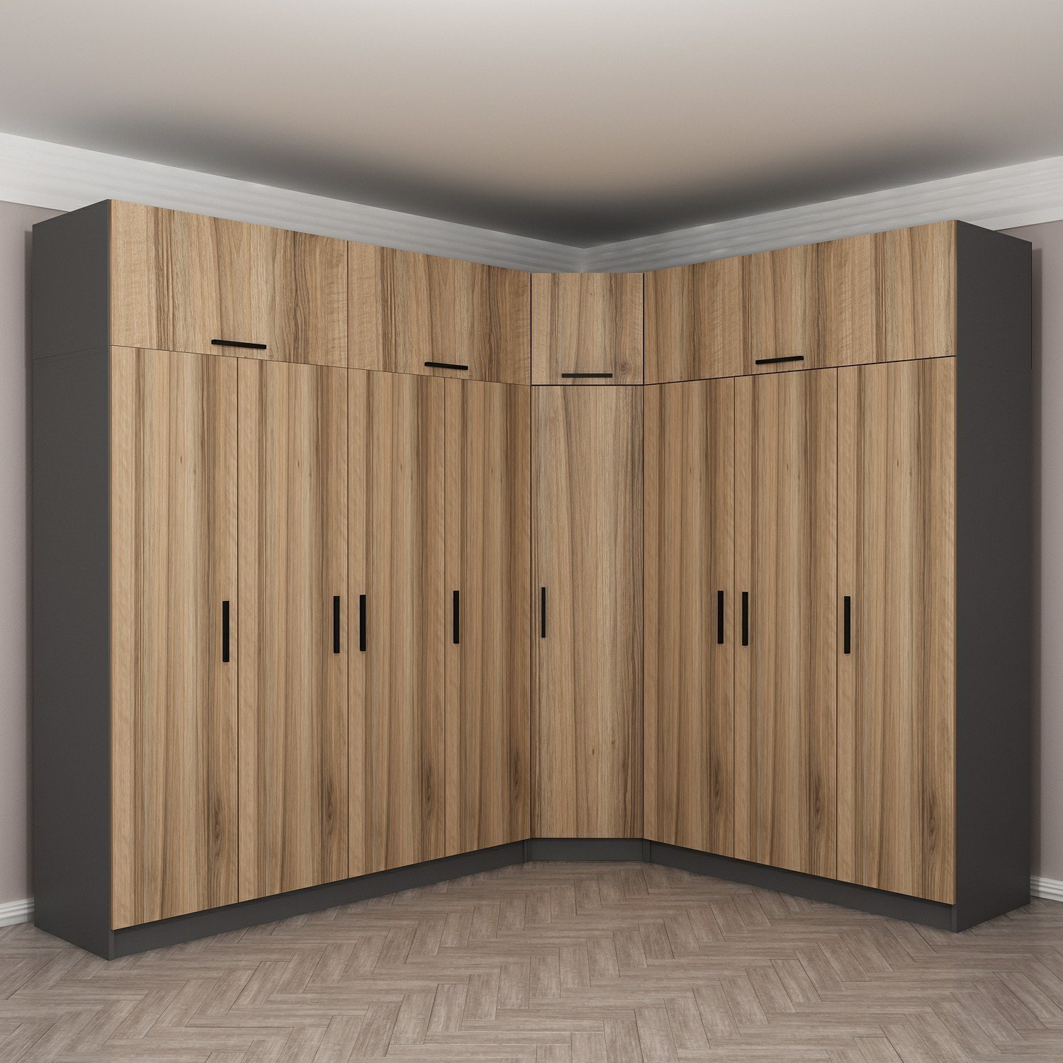Minar Kale 8 Kapaklı 4 Ç Köşe Dolap + Yüklük Antrasit Dore