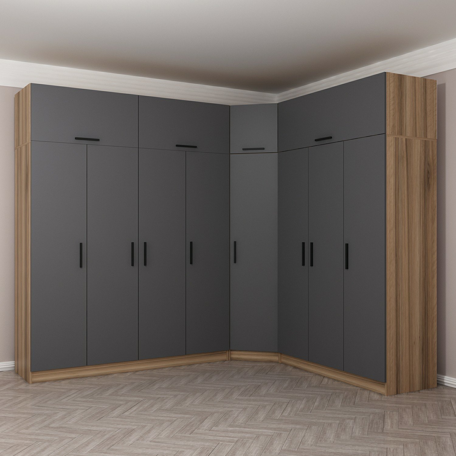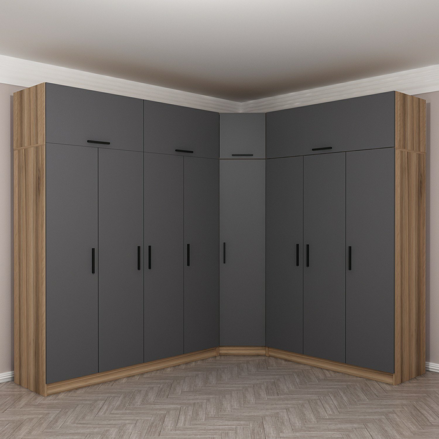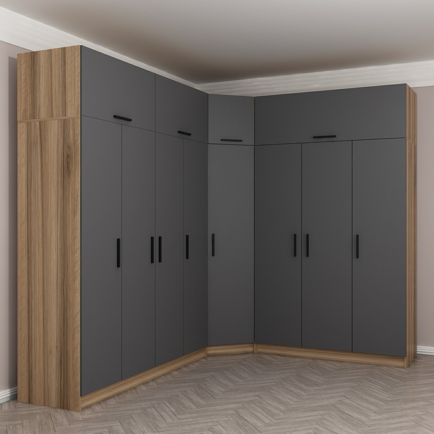 Minar Kale 8 Kapaklı 4 Ç Köşe Dolap + Yüklük Dore Antrasit