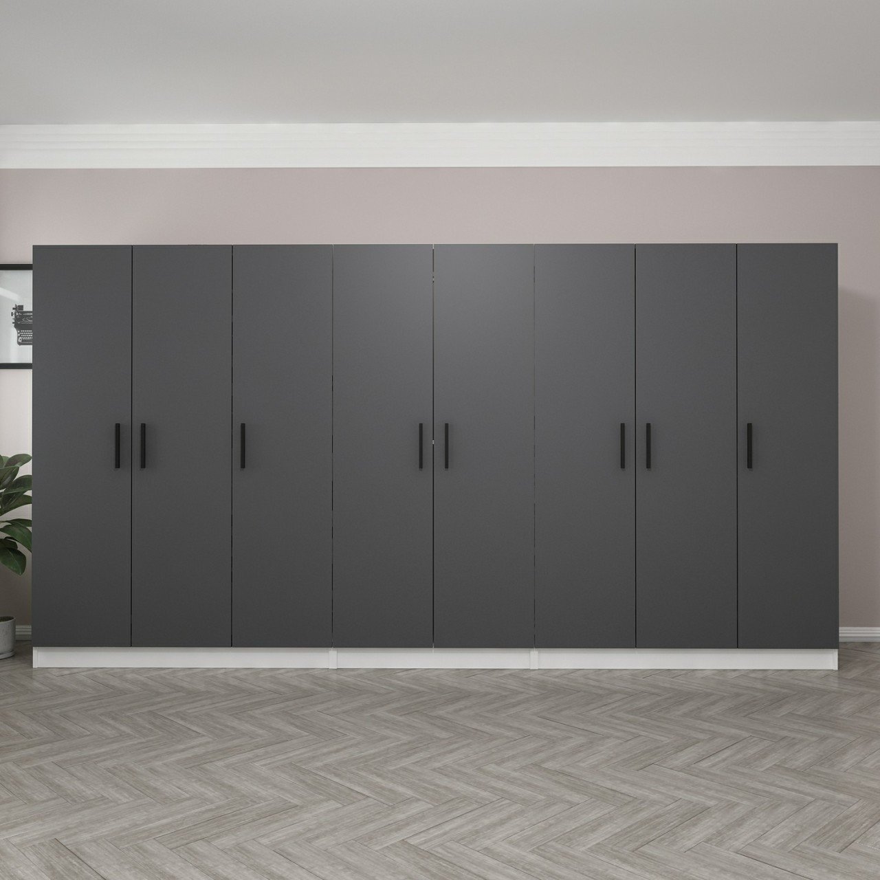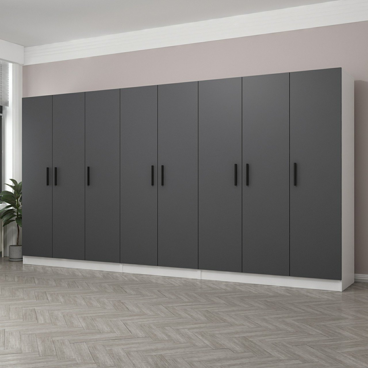 Minar Kale 8 Kapaklı 4 Çekmeceli Dolap Beyaz Antrasit
