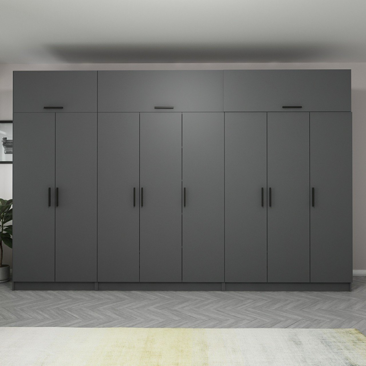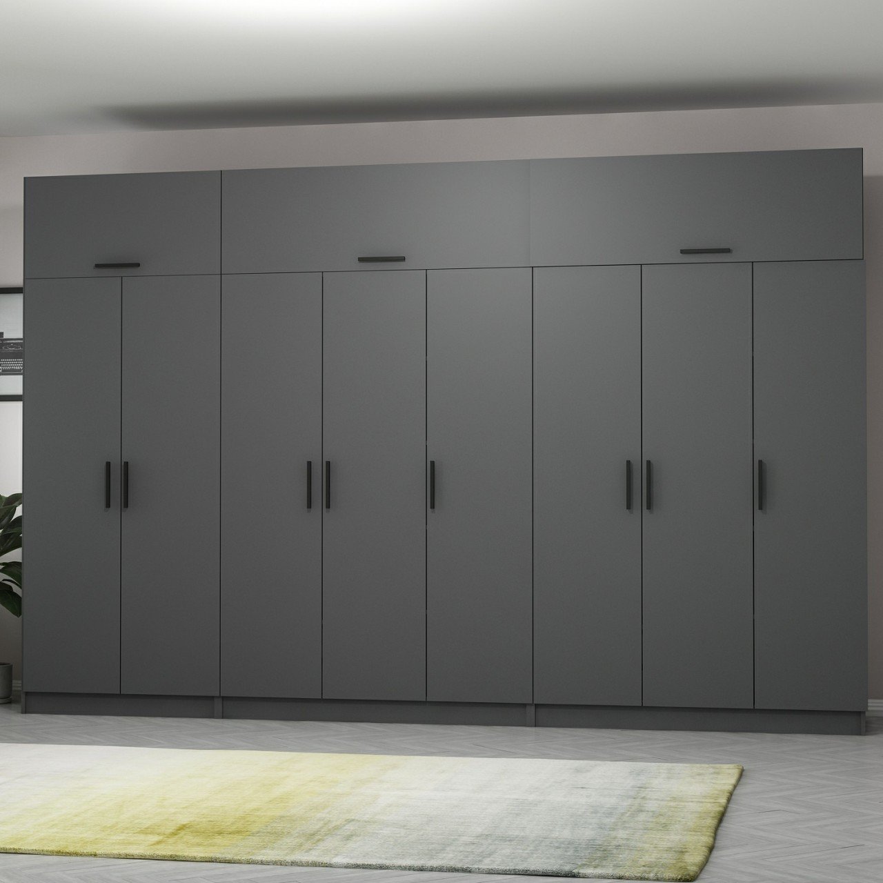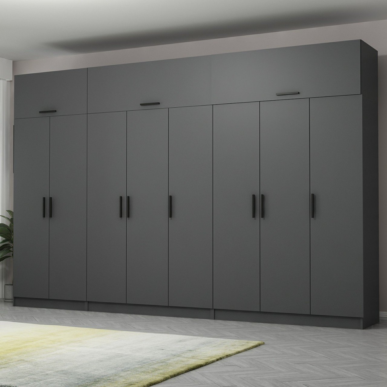 Minar Kale 8 Kapaklı 4 Çekmeceli Dolap Ve Yüklük Antrasit