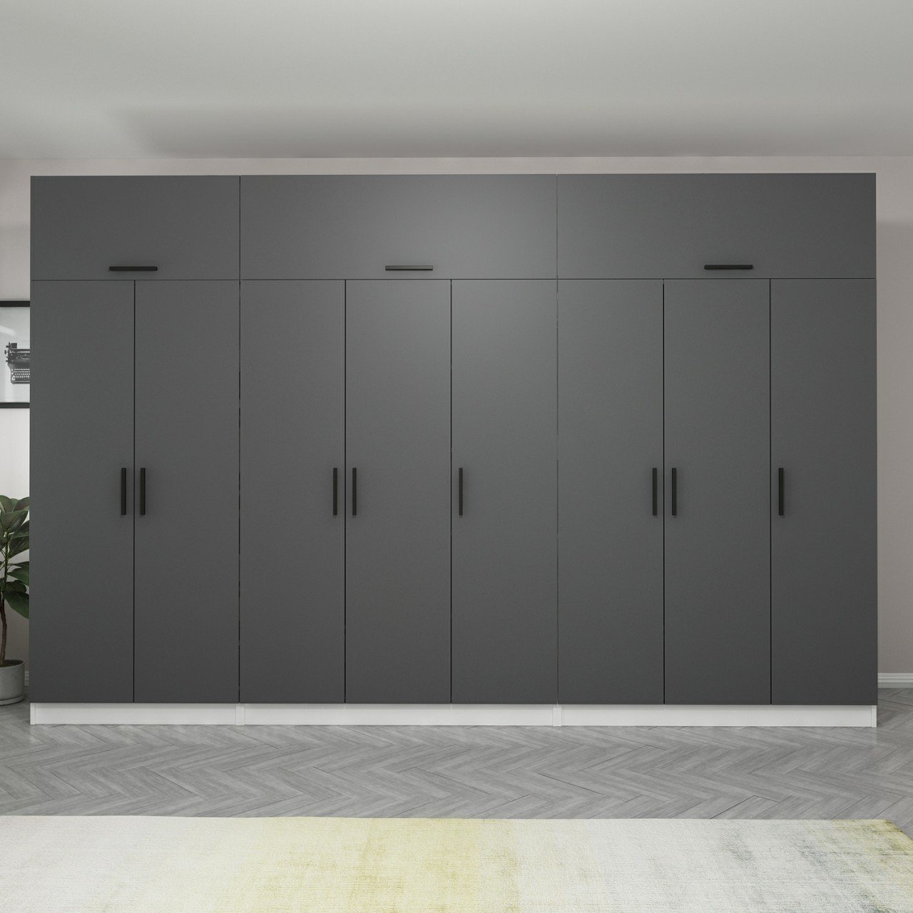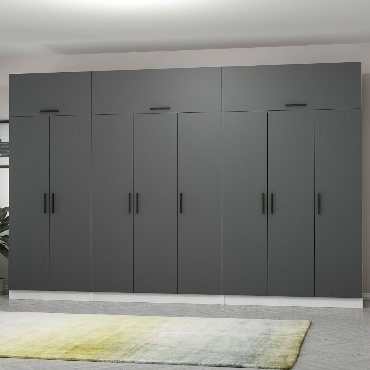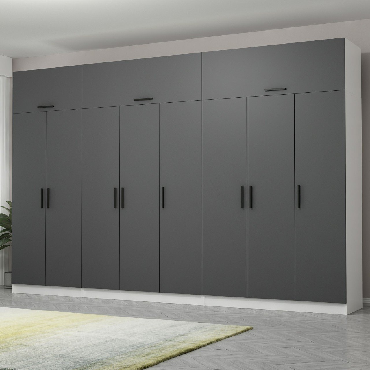 Minar Kale 8 Kapaklı 4 Çekmeceli Dolap Ve Yüklük Beyaz Antrasit