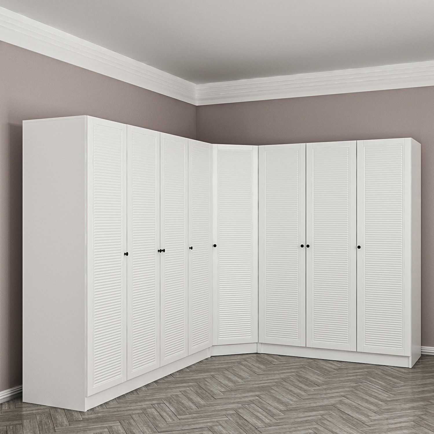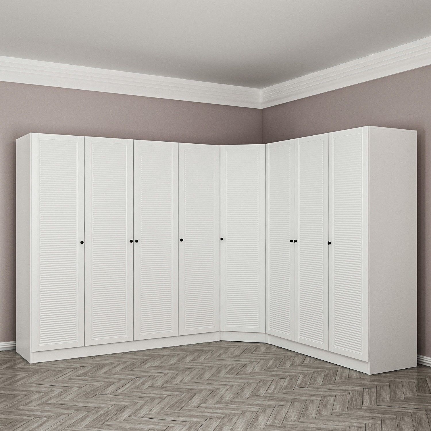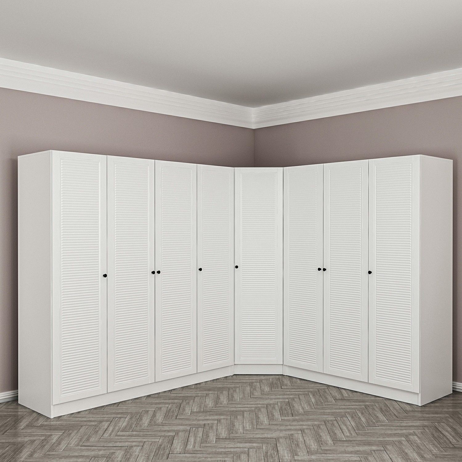 Minar Kale 8 Kapaklı 4 Çekmeceli Köşe Dolap Beyaz Mebran Panjur