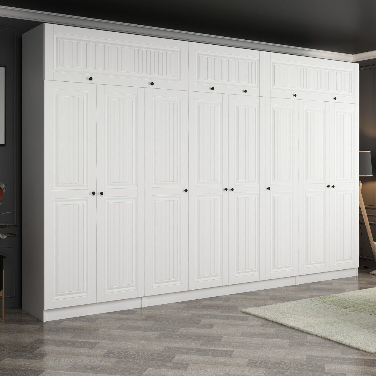 Minar Kale 8 Mebran Kapaklı 2 İç Çekmeceli Dolap Ve Yüklük Beyaz