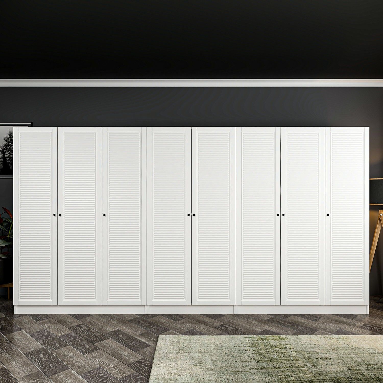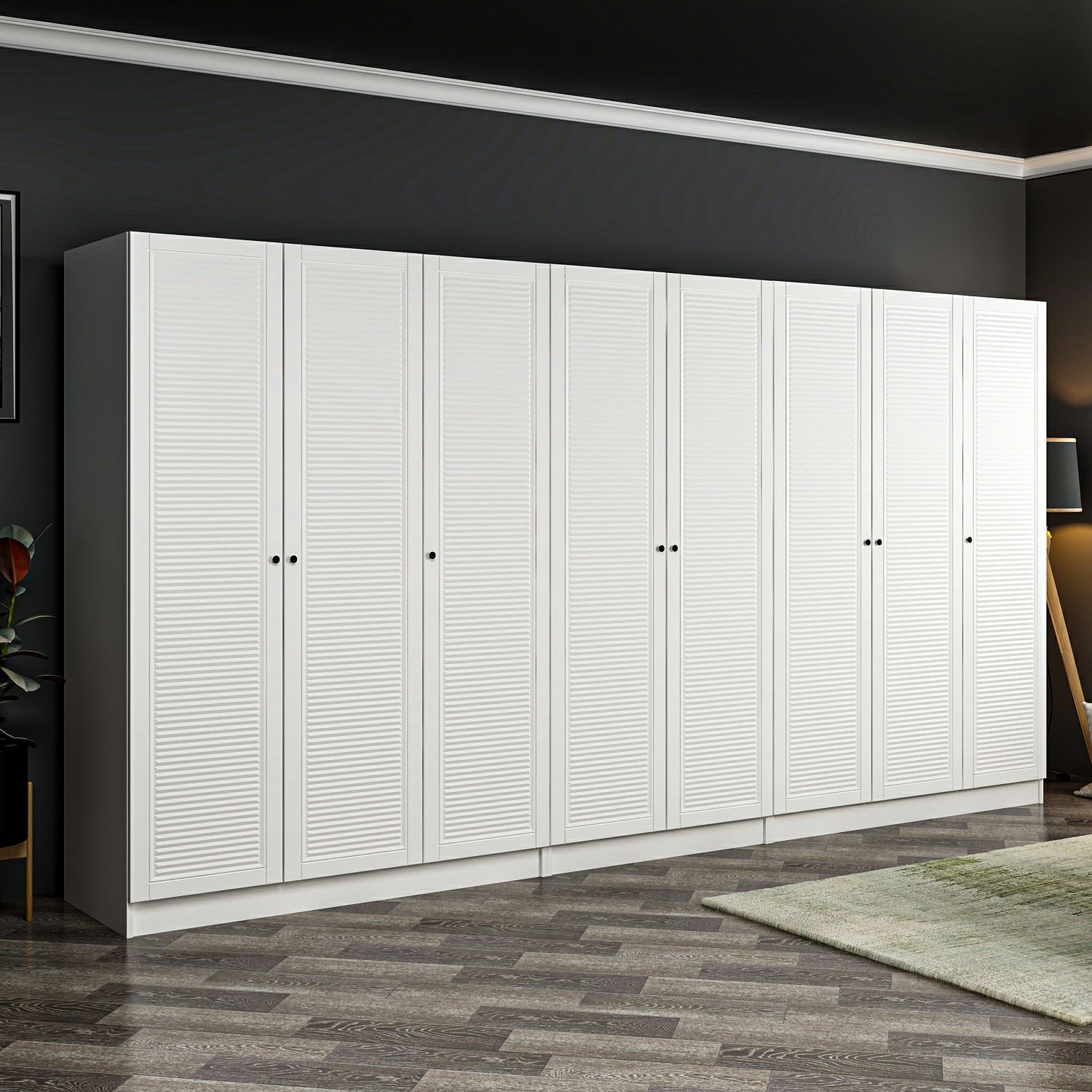 Minar Kale 8 Mebran Panjur Kapaklı 4 Çekmeceli Dolap Beyaz/Beyaz 190CM
