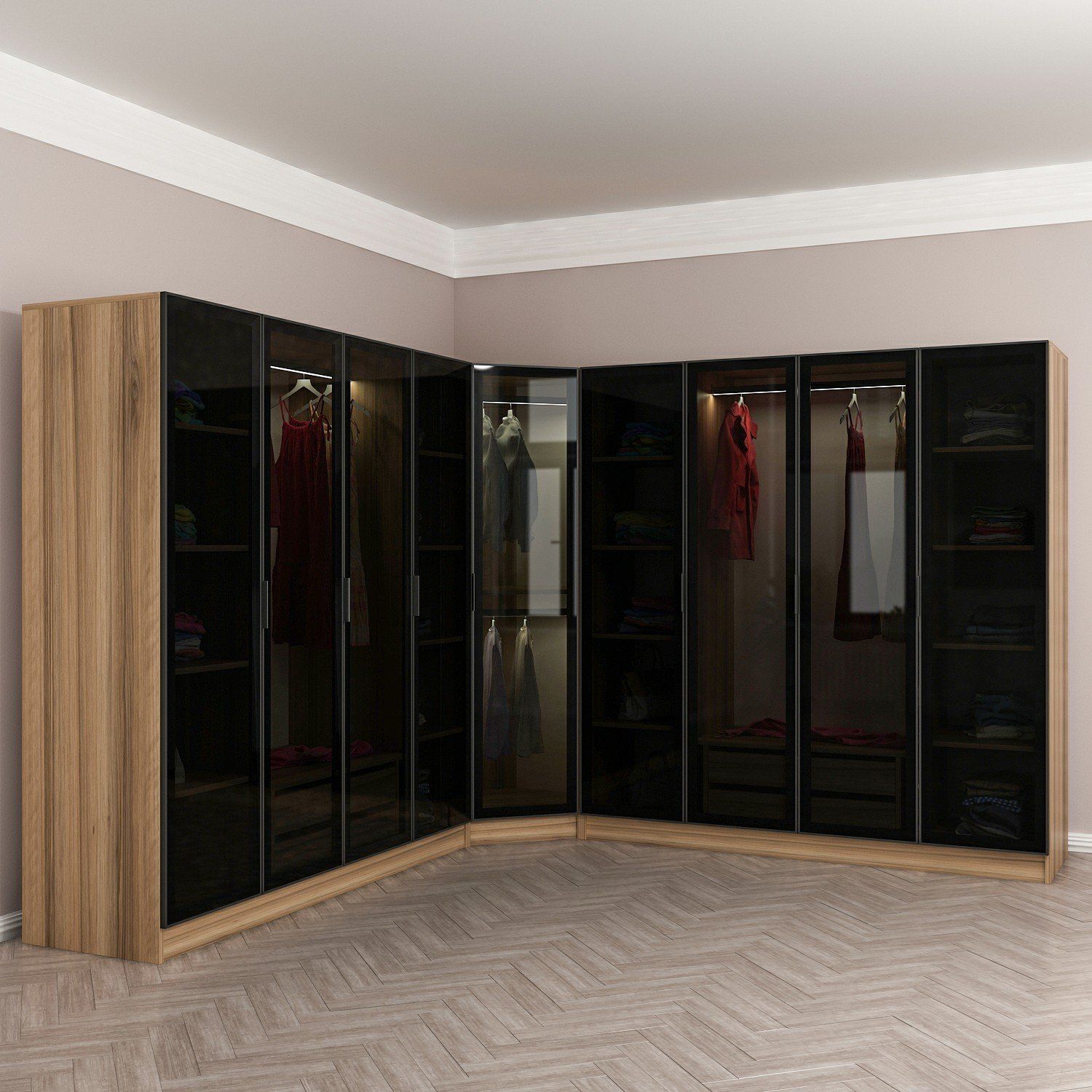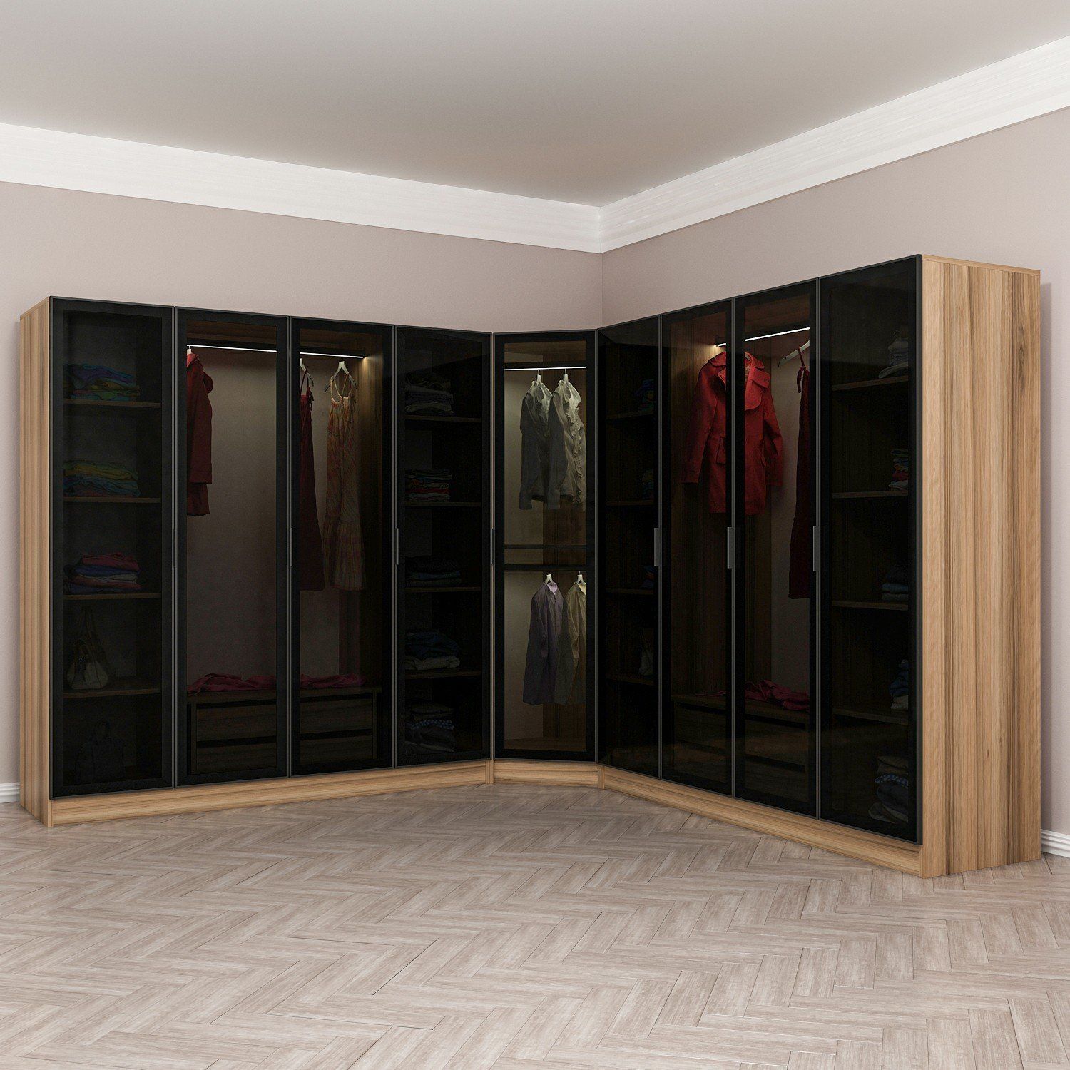 Kale 9 Füme Cam Kapaklı 4Ç Köşe Dolap Dore Füme Cam