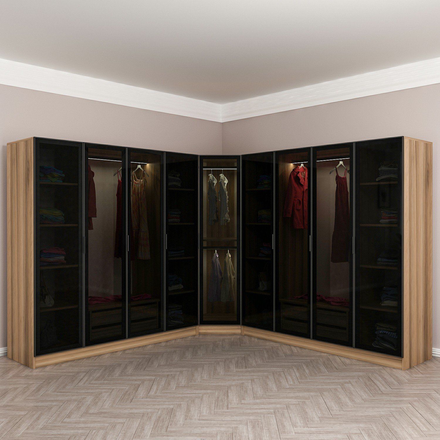 Minar Kale 9 Füme Cam Kapaklı 4Ç Köşe Dolap Dore Füme Cam