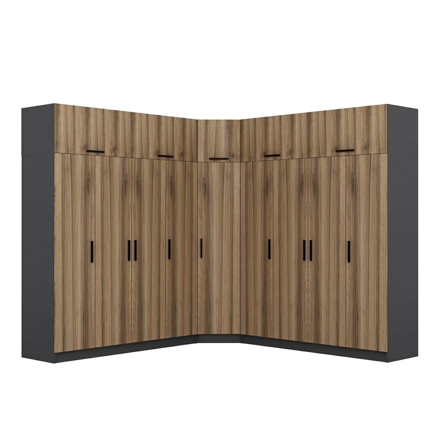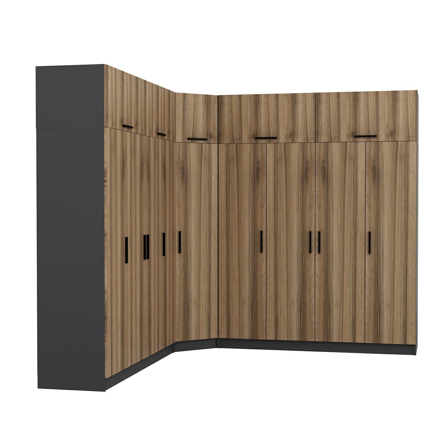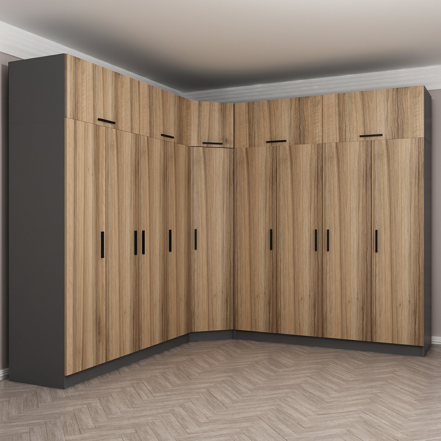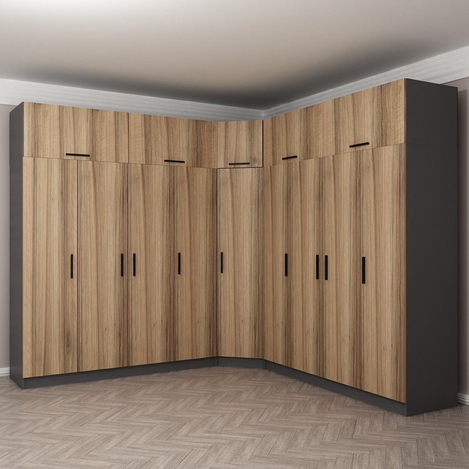 Minar Kale 9 Kapaklı 4 Ç Köşe Dolap + Yüklük Antrasit Dore