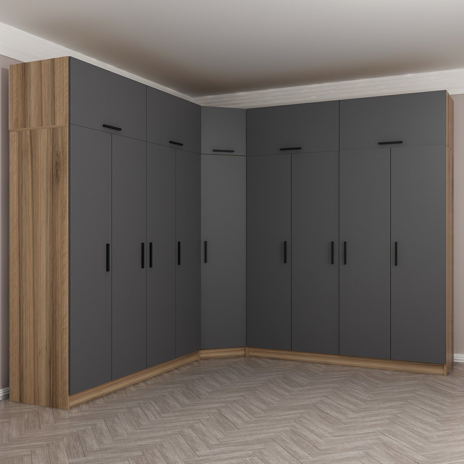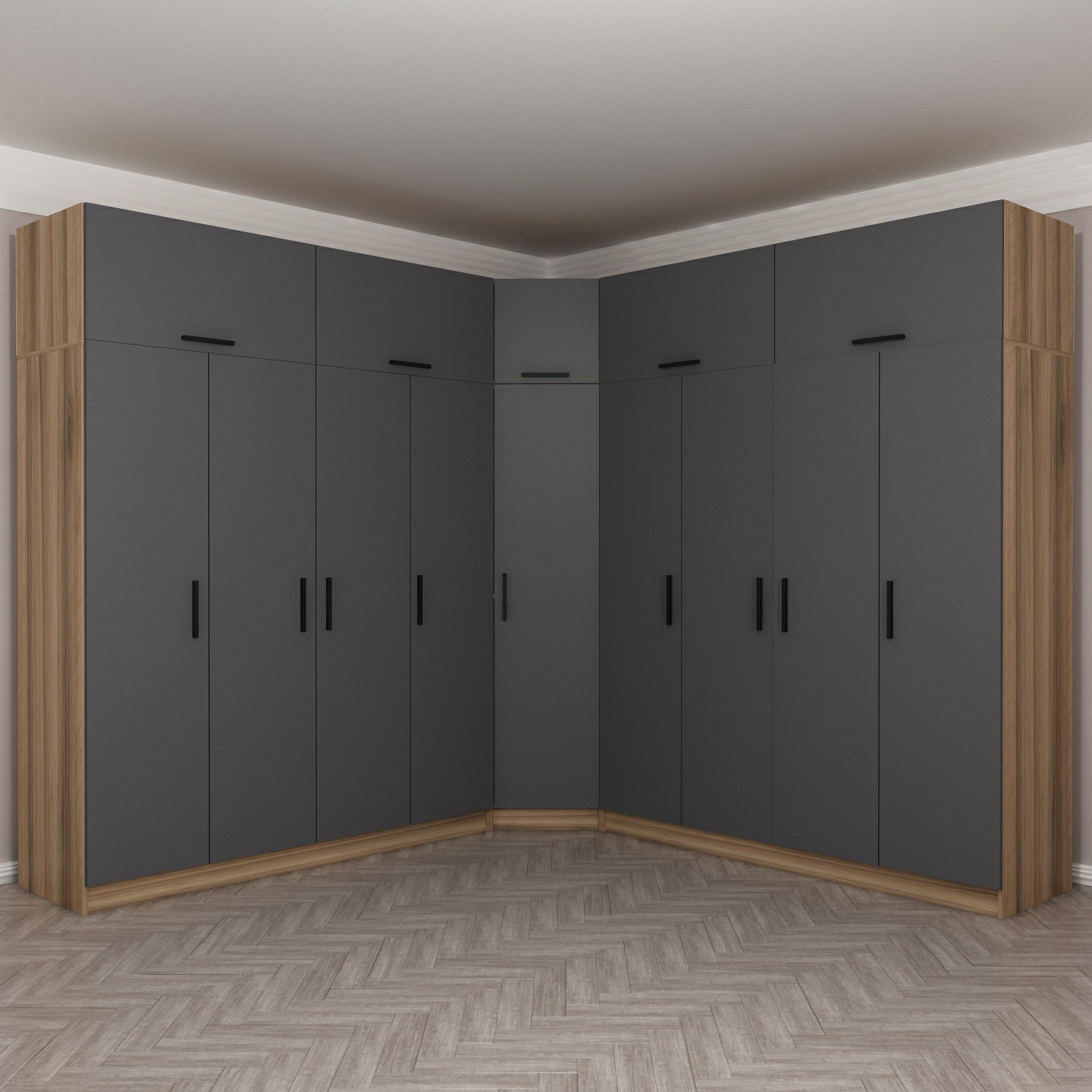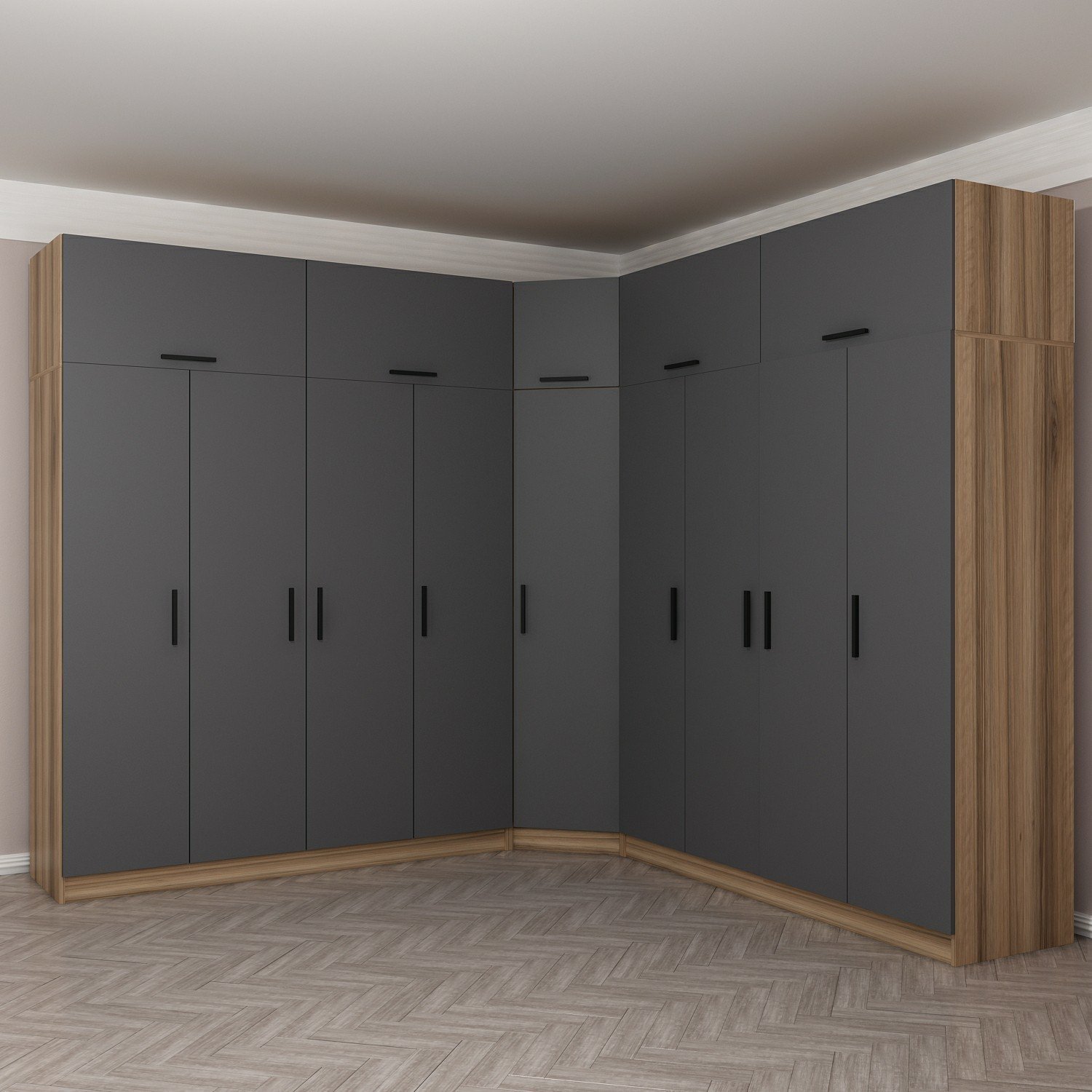 Minar Kale 9 Kapaklı 4 Ç Köşe Dolap + Yüklük Dore Antrasit