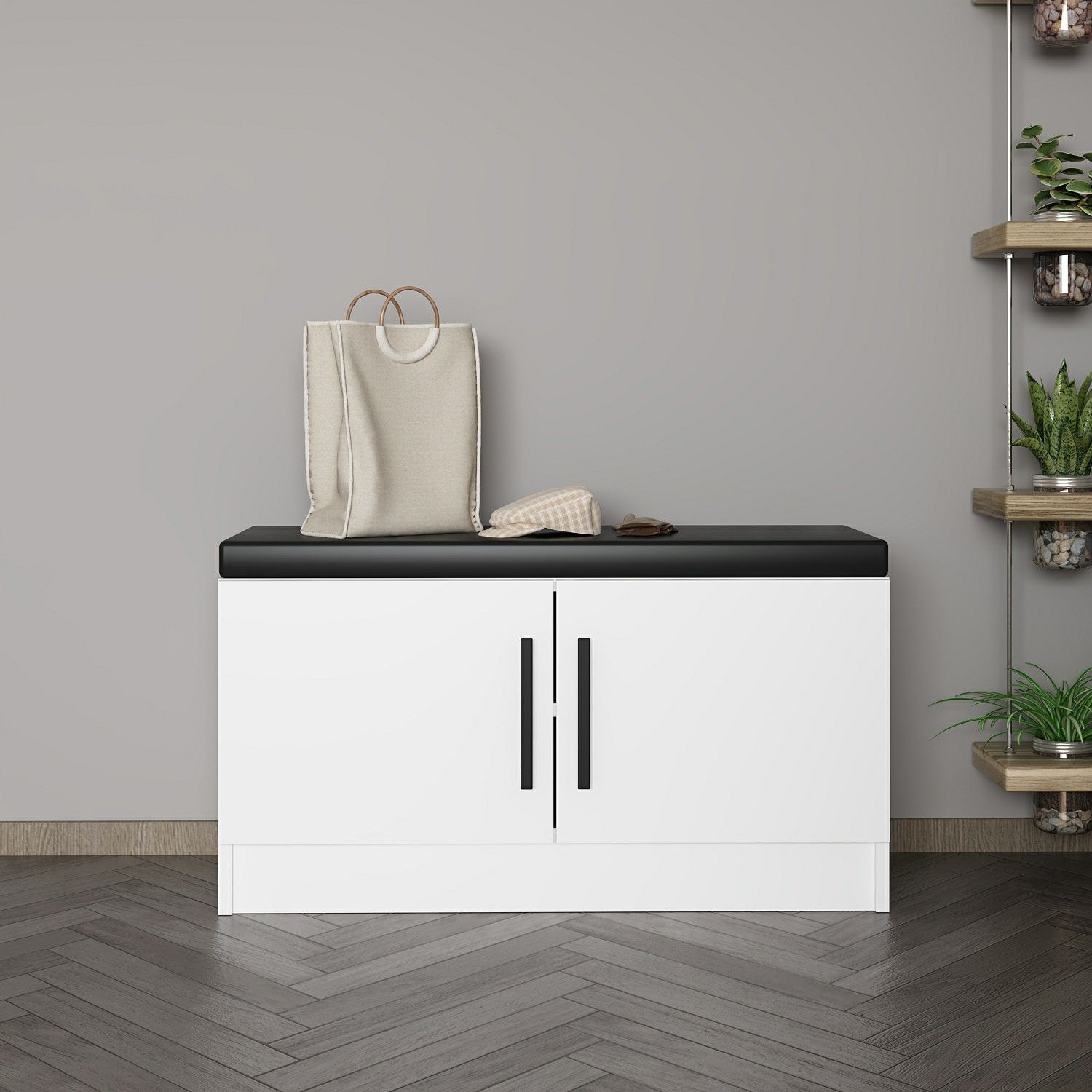 Beyaz gövde ve beyaz düz kapaklar, mekâna ferah ve modern bir görünüm kazandırır. Üst kısmındaki minderli oturma alanı, ayakkabılarınızı giyip çıkarırken ekstra konfor sağlar. 90 cm genişlik, 35 cm derinlik ve 50 cm yükseklik ölçüleriyle dar alanlarda bile pratik kullanım imkânı sunar.