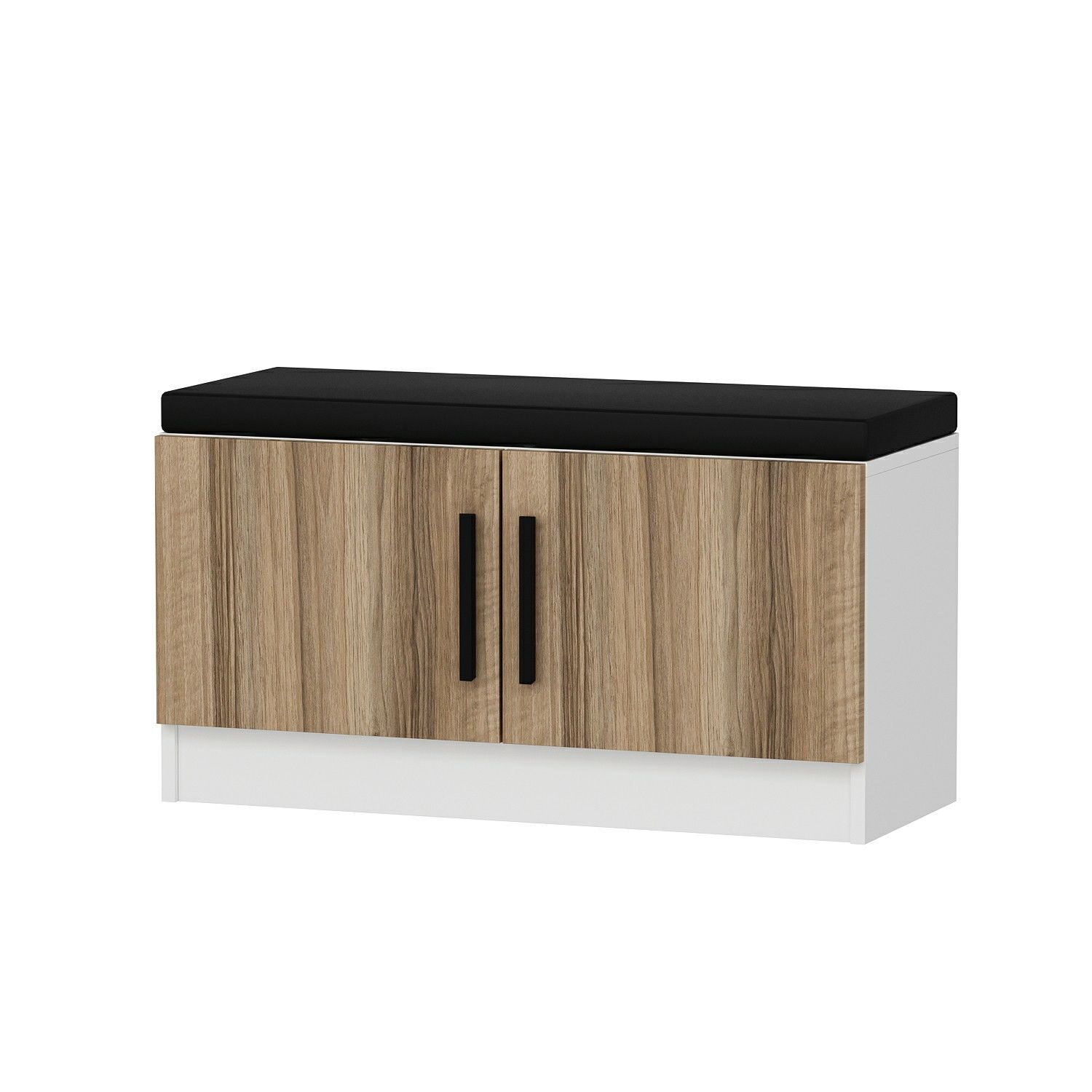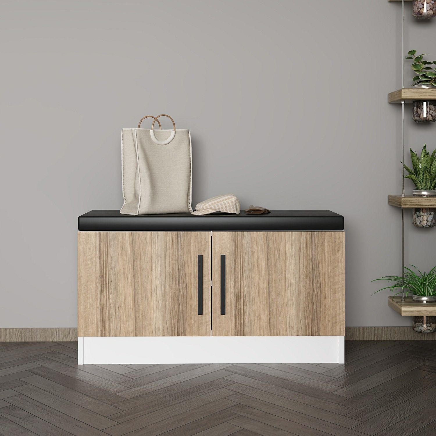 Beyaz gövde ve dore düz kapaklar, mekâna sıcak ve modern bir görünüm kazandırırken, minderli oturma alanı ayakkabılarınızı giyip çıkarırken ekstra konfor sağlar. 90 cm genişlik, 35 cm derinlik ve 50 cm yükseklik ölçüleriyle dar alanlarda bile pratik kullanım sunar.