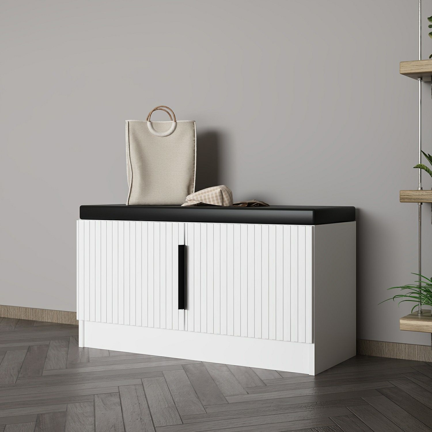 Evinizin girişinde şık ve düzenli bir alan yaratmak isteyenler için tasarlanan Minar Kale Ayakkabılık Minderli Beyaz Mebran Çizgili Beyaz, modern çizgili kapak tasarımı ile estetik bir görünüm sunar.