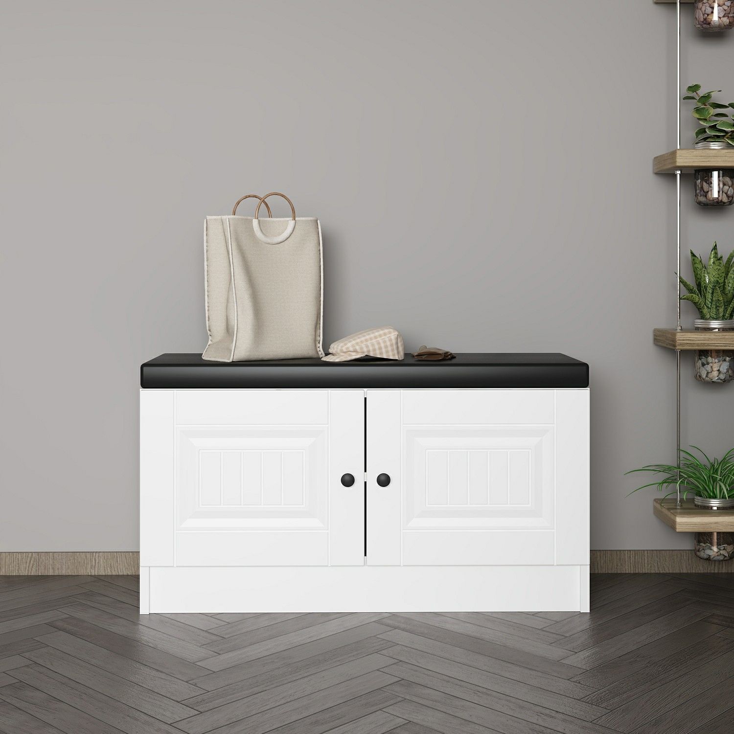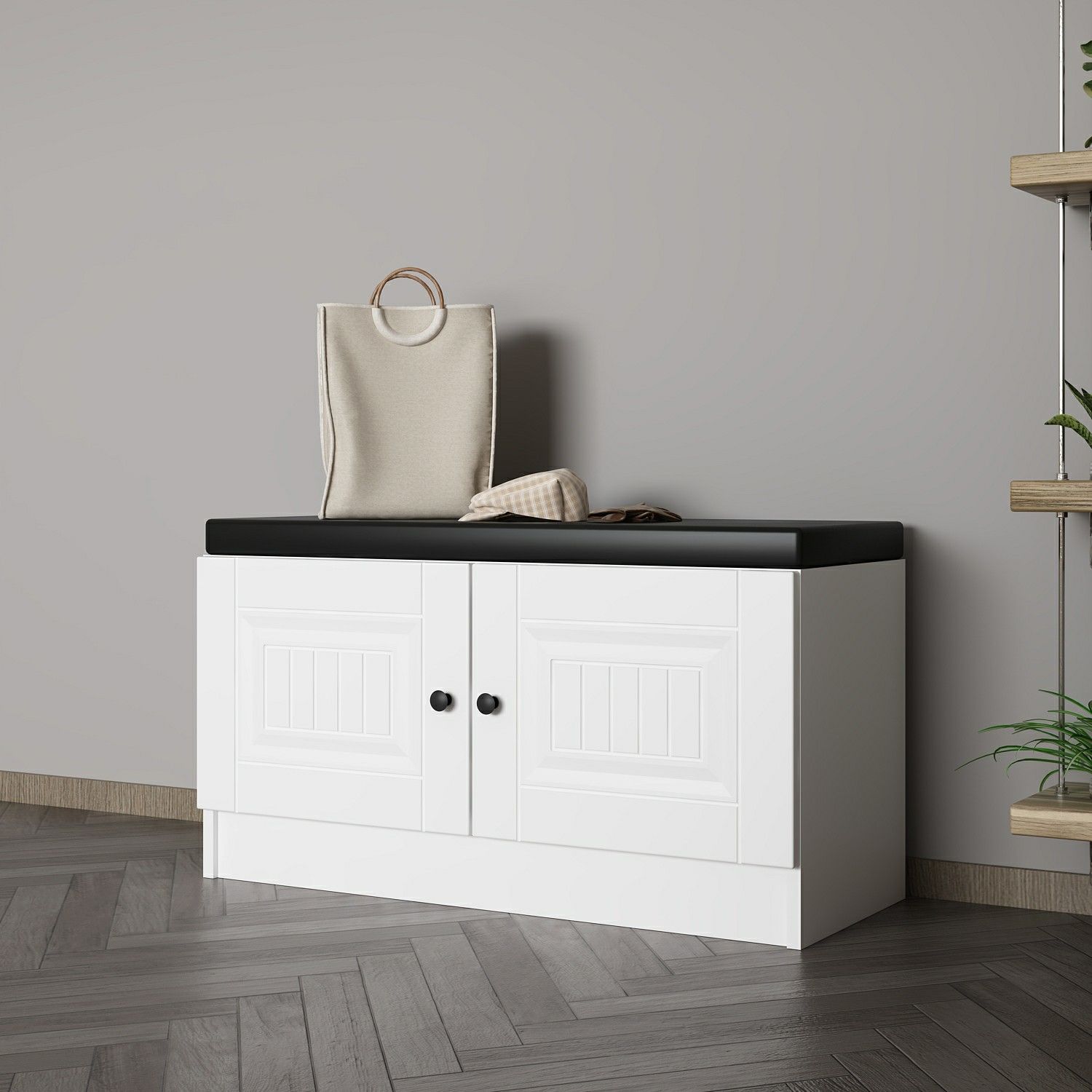Beyaz gövde ve mebran kapaklar, modern ve sade bir görünüm sunarken, minderli oturma alanı ayakkabılarınızı giyip çıkarırken ekstra konfor sağlar. 90 cm genişlik, 35 cm derinlik ve 50 cm yükseklik ölçüleriyle dar alanlara bile uyum sağlayacak şekilde tasarlanmıştır.