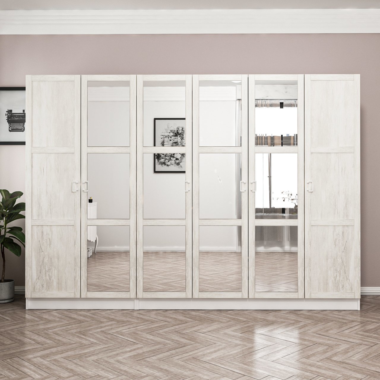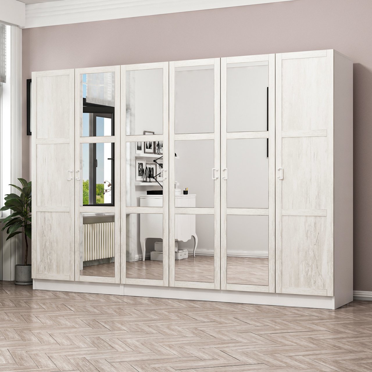 Minar Kale Country 6 Kapak Aynalı 2 Ç Zincir Dolap - E.Beyaz