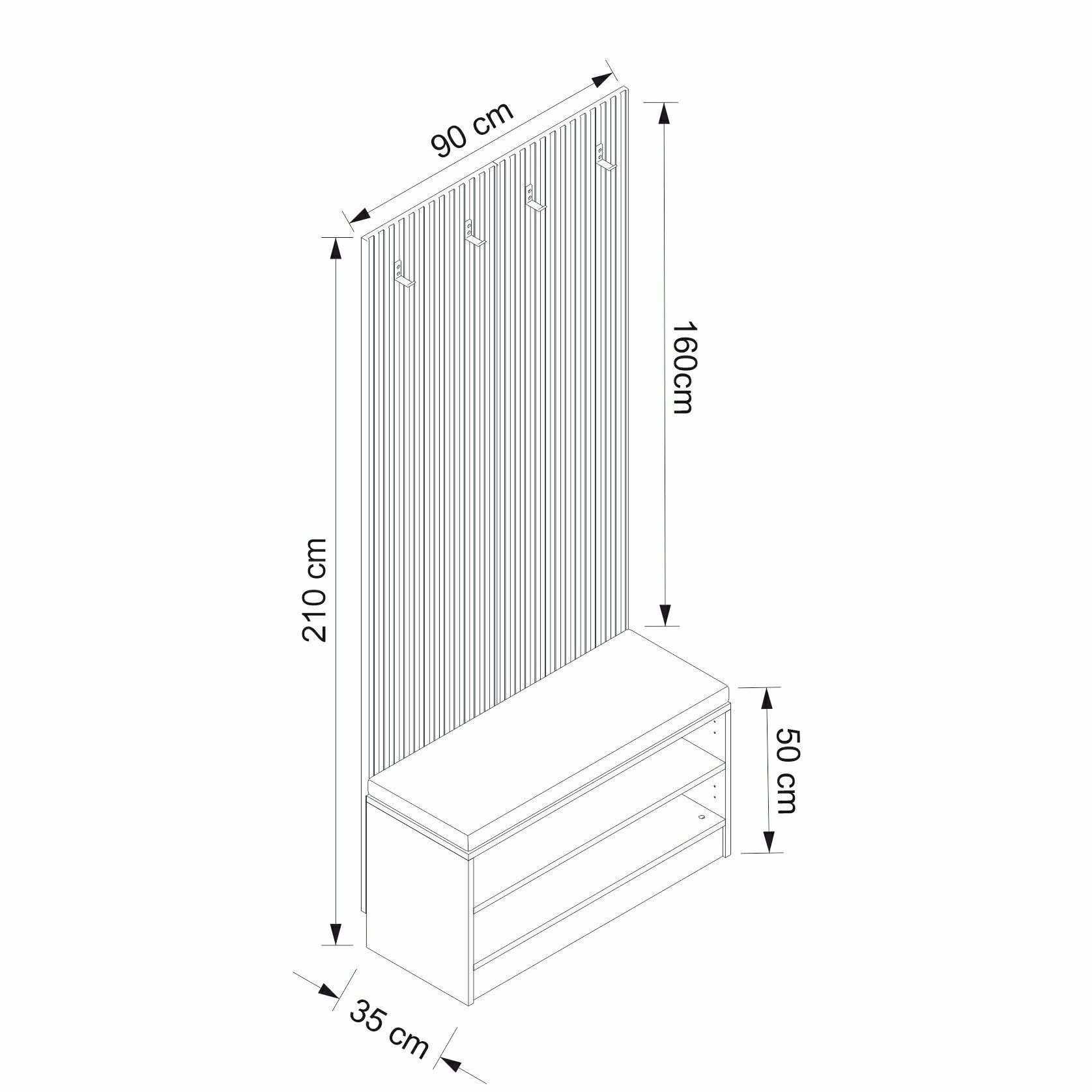 Minar Kale Dekor Panel Ayakkabılık Minderli Beyaz Eskitme Beyaz