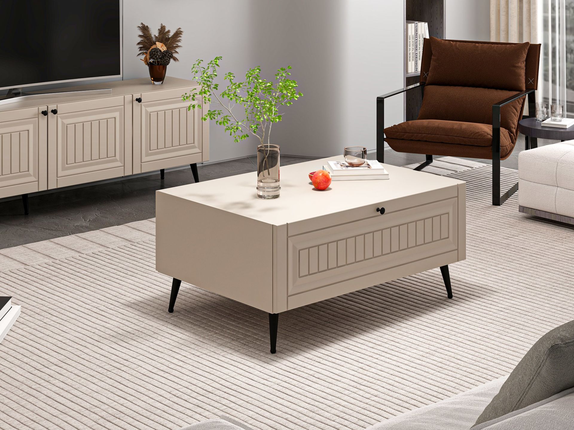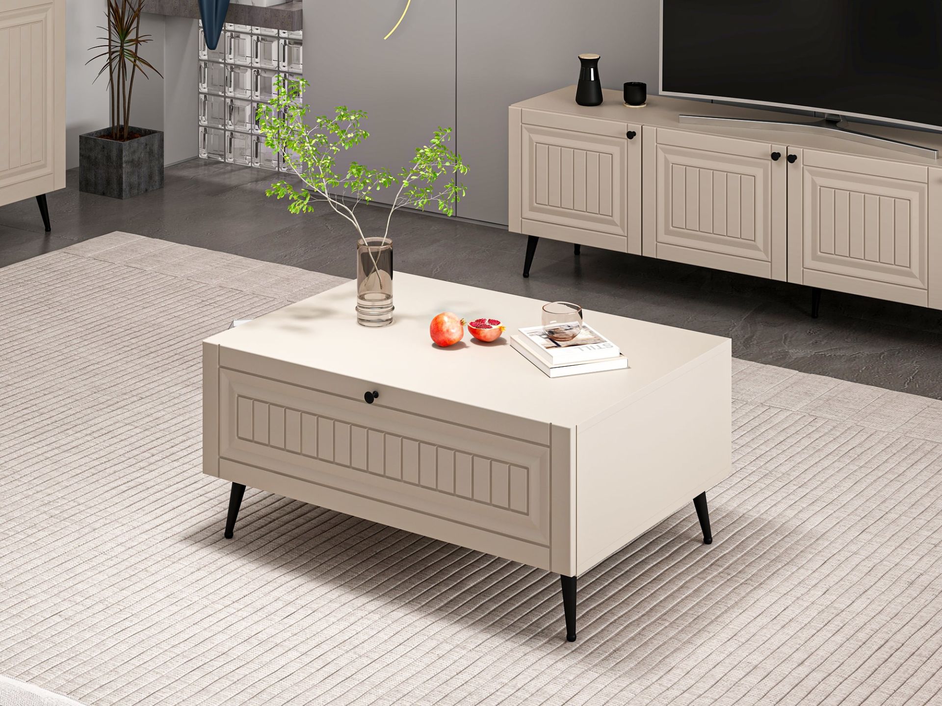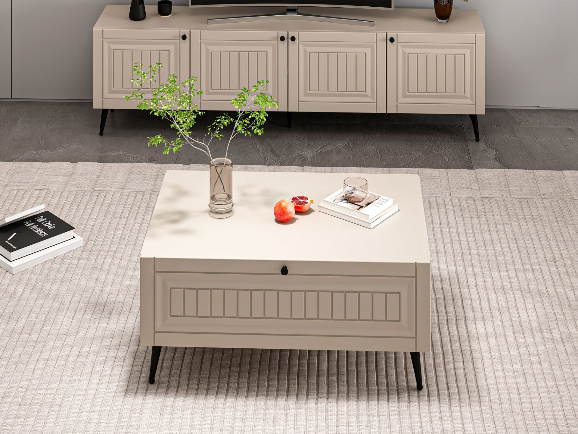 Minar Kale Orta Sehpa İlkbahar Sadelik ve fonksiyonelliği uyumla buluşturan sehpamız modern yaşam alanlarınız için tasarlandı. Kumtaşı renginin doğal sıcaklığını taşıyan bu model, kapağındaki farklı çizgisel desenleriyle kendine özgü bir karakter sergiliyor. Kapağının çizgileri, sade tasarımı hareketlendirirken, sehpanın genel zarafetini koruyor.