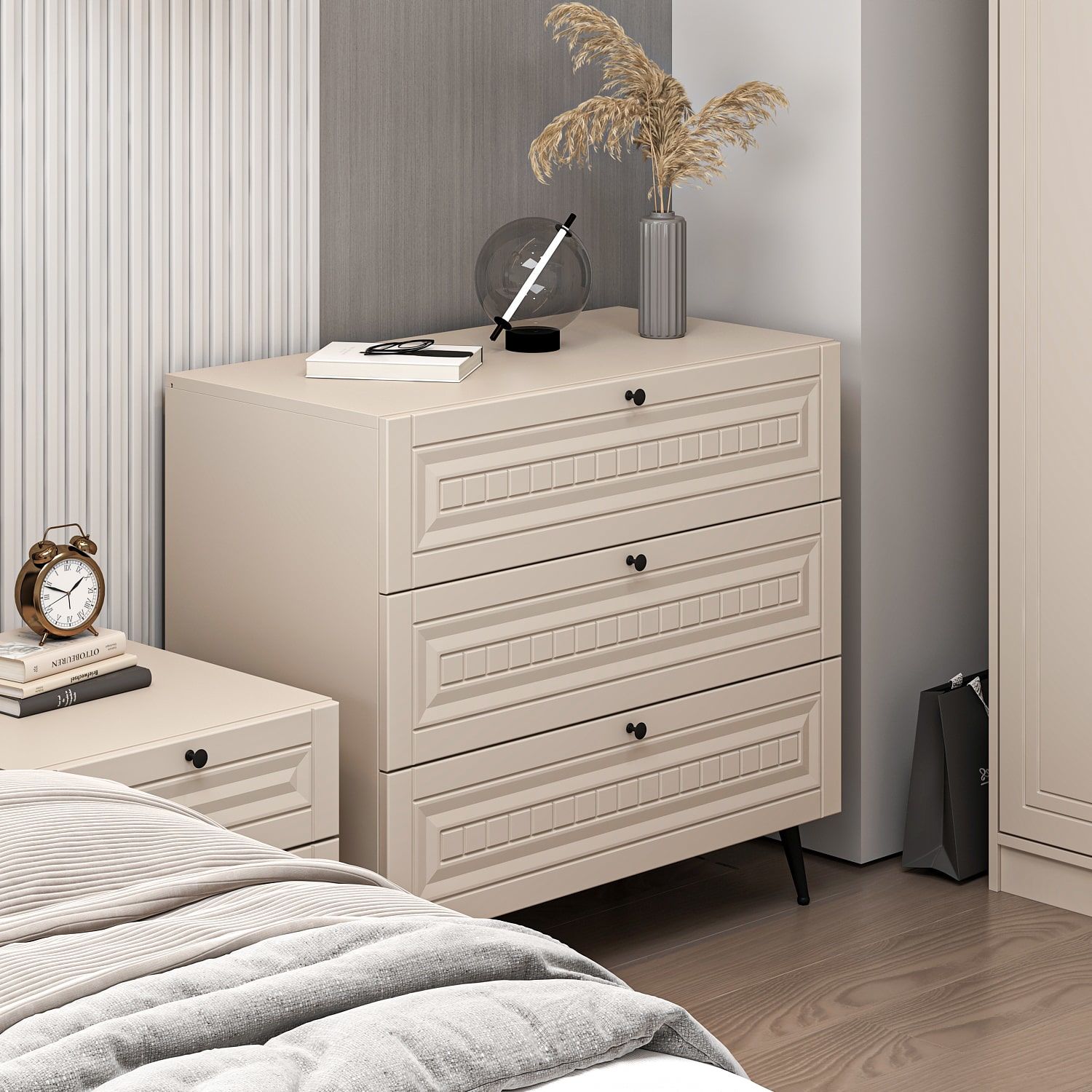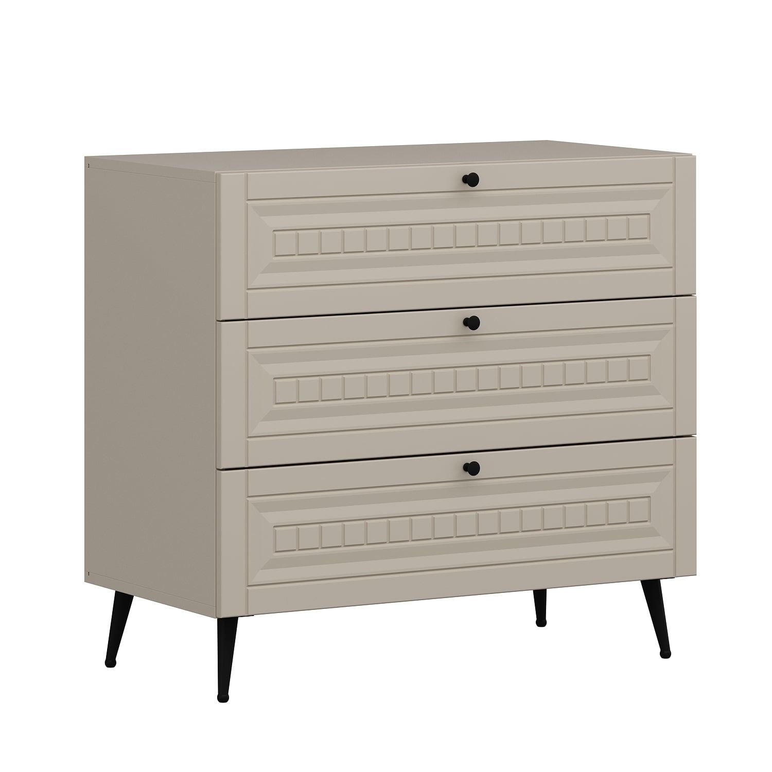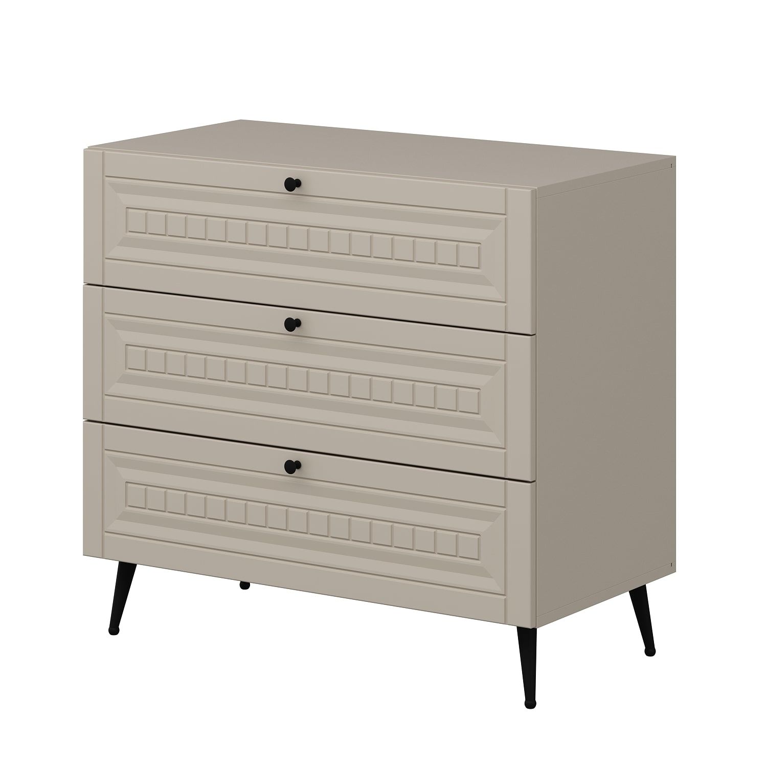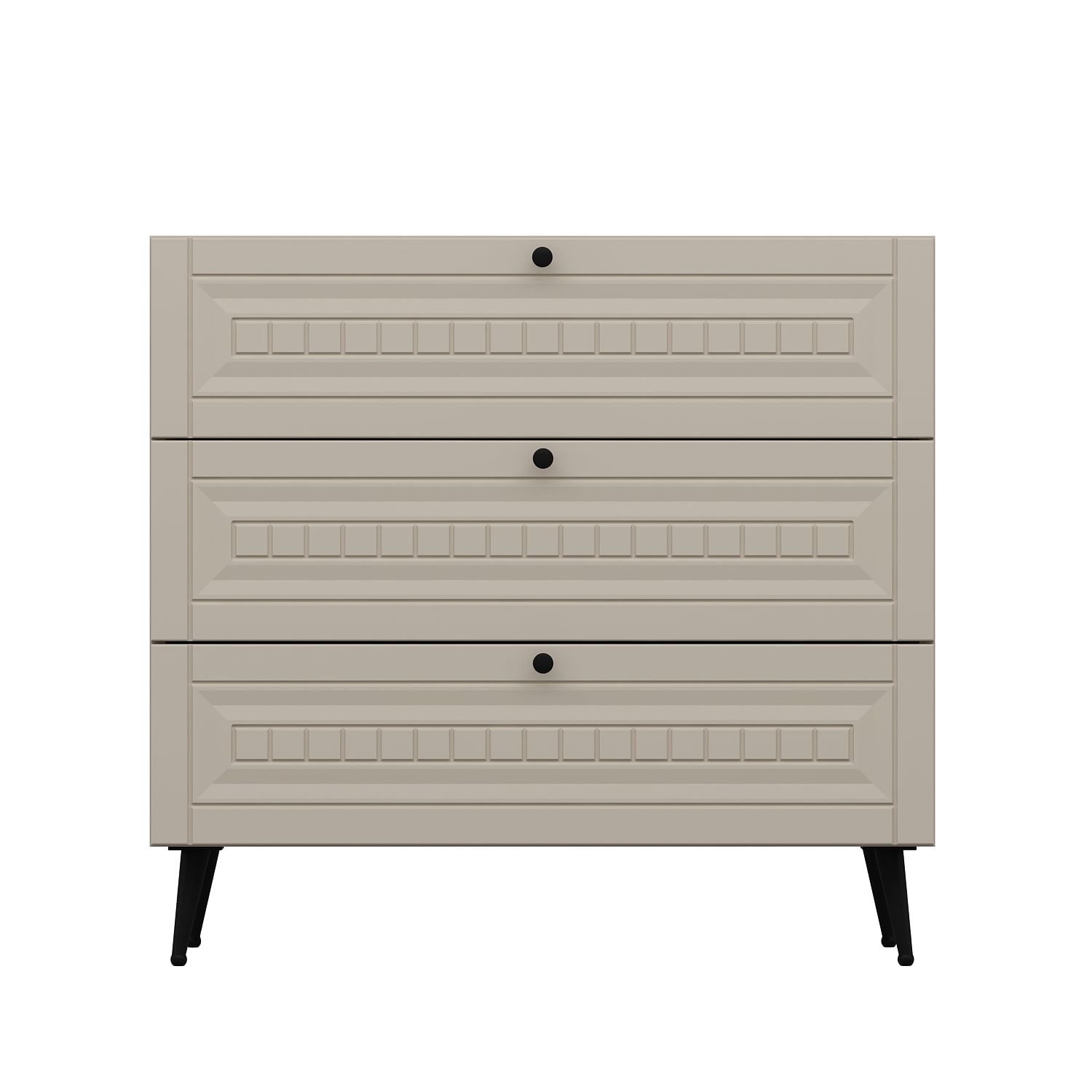 3 çekmecesi, giysi, aksesuar veya günlük kullanım eşyalarınızı düzenli ve ulaşılabilir şekilde saklamanıza olanak tanır. Ayaklı yapısı ve 14 cm yüksekliğe sahip ayakları sayesinde zeminle temasını azaltarak temizlik kolaylığı sağlar ve modern bir duruş sunar.