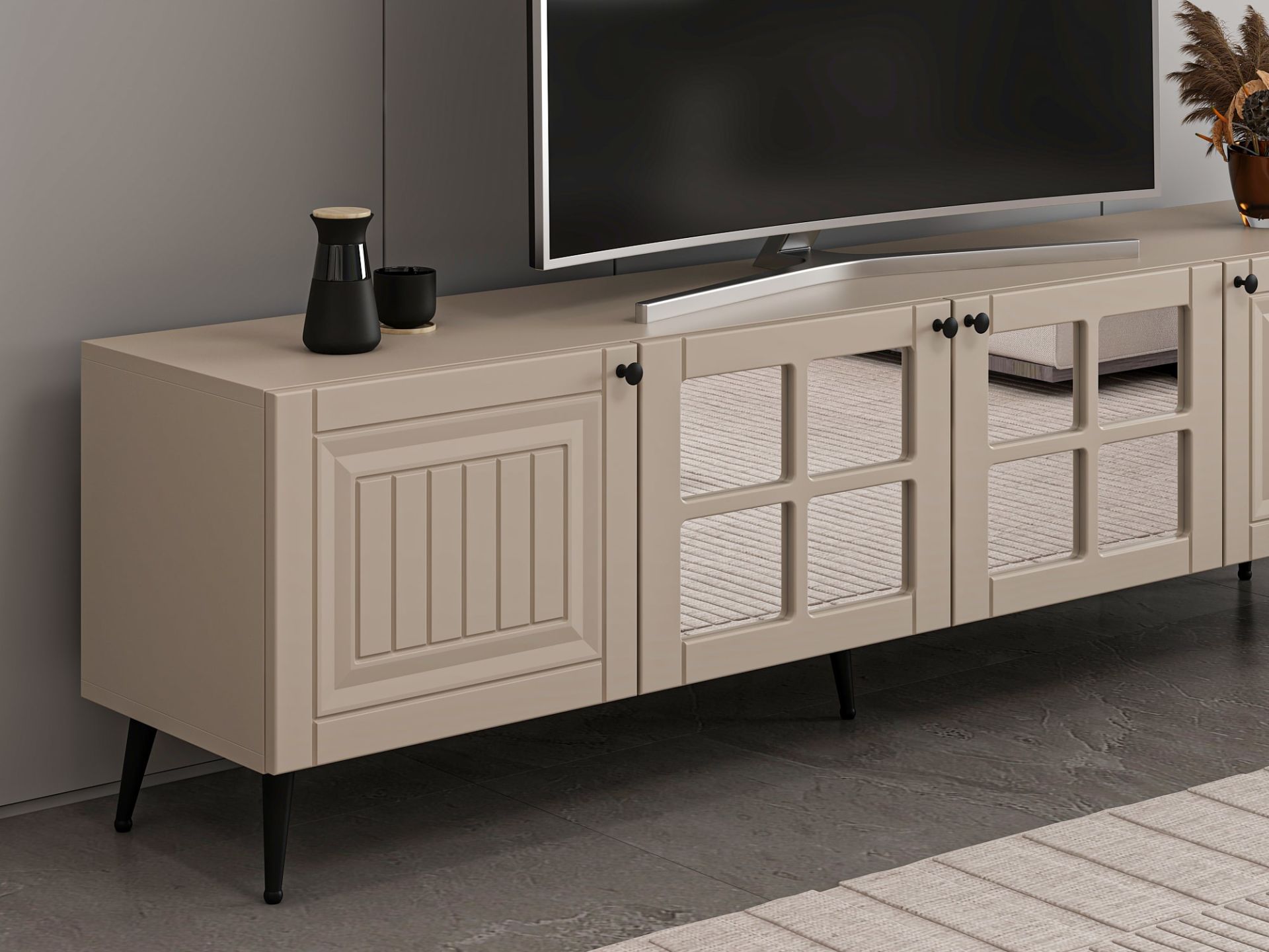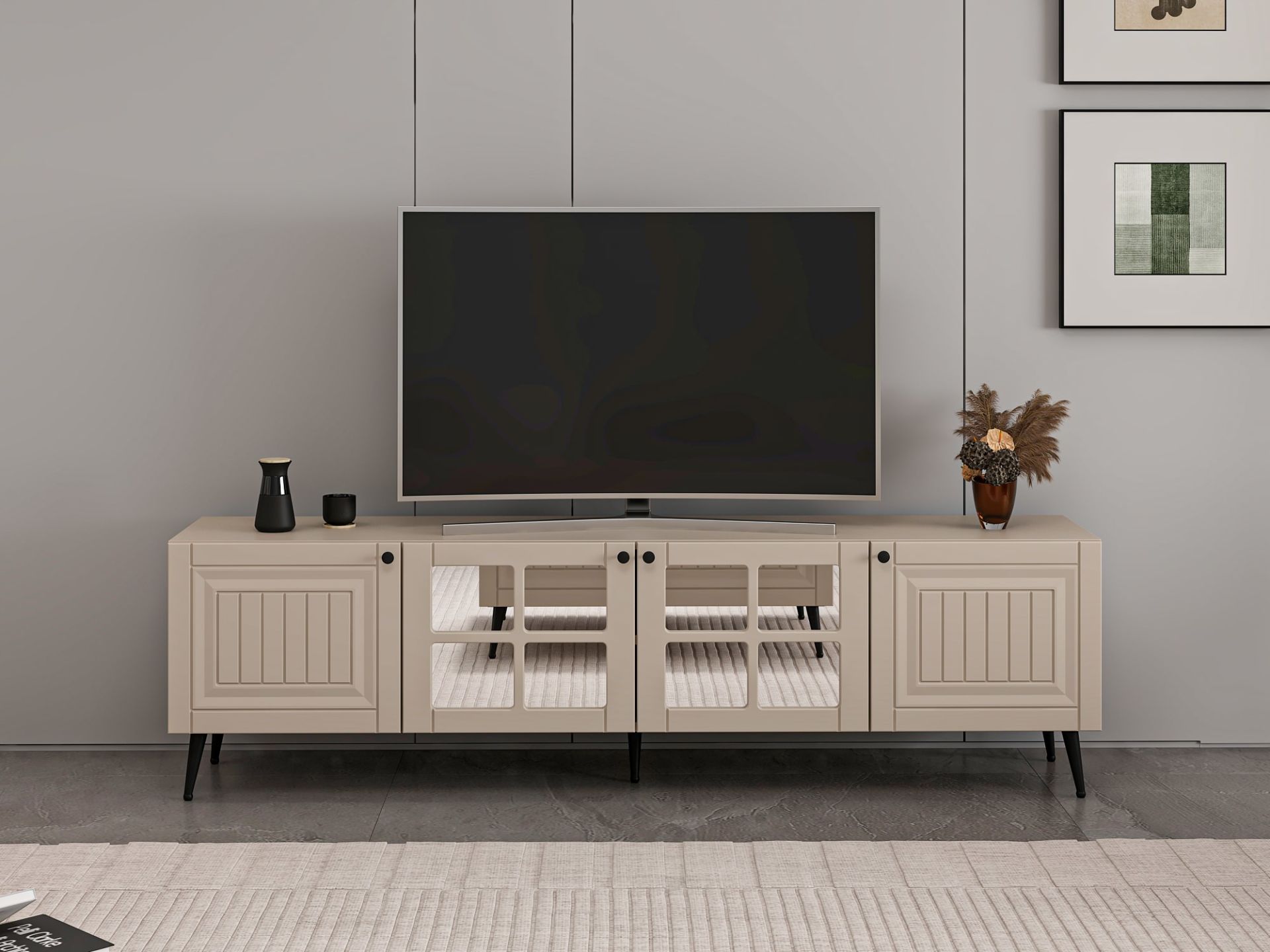 Zarif detaylarıyla yaşam alanlarınıza ferahlık ve şıklık kazandıran İlkbahar TV Ünitesi, aynalı kapak tasarımı sayesinde mekâna derinlik ve ışıltı katar. 180 cm genişliğiyle hem büyük hem de kompakt salonlar için ideal bir kullanım sunar. Modern çizgileri, yumuşak yüzey dokusu ve işlevsel bölmeleriyle estetikle işlevselliği bir arada sunar.