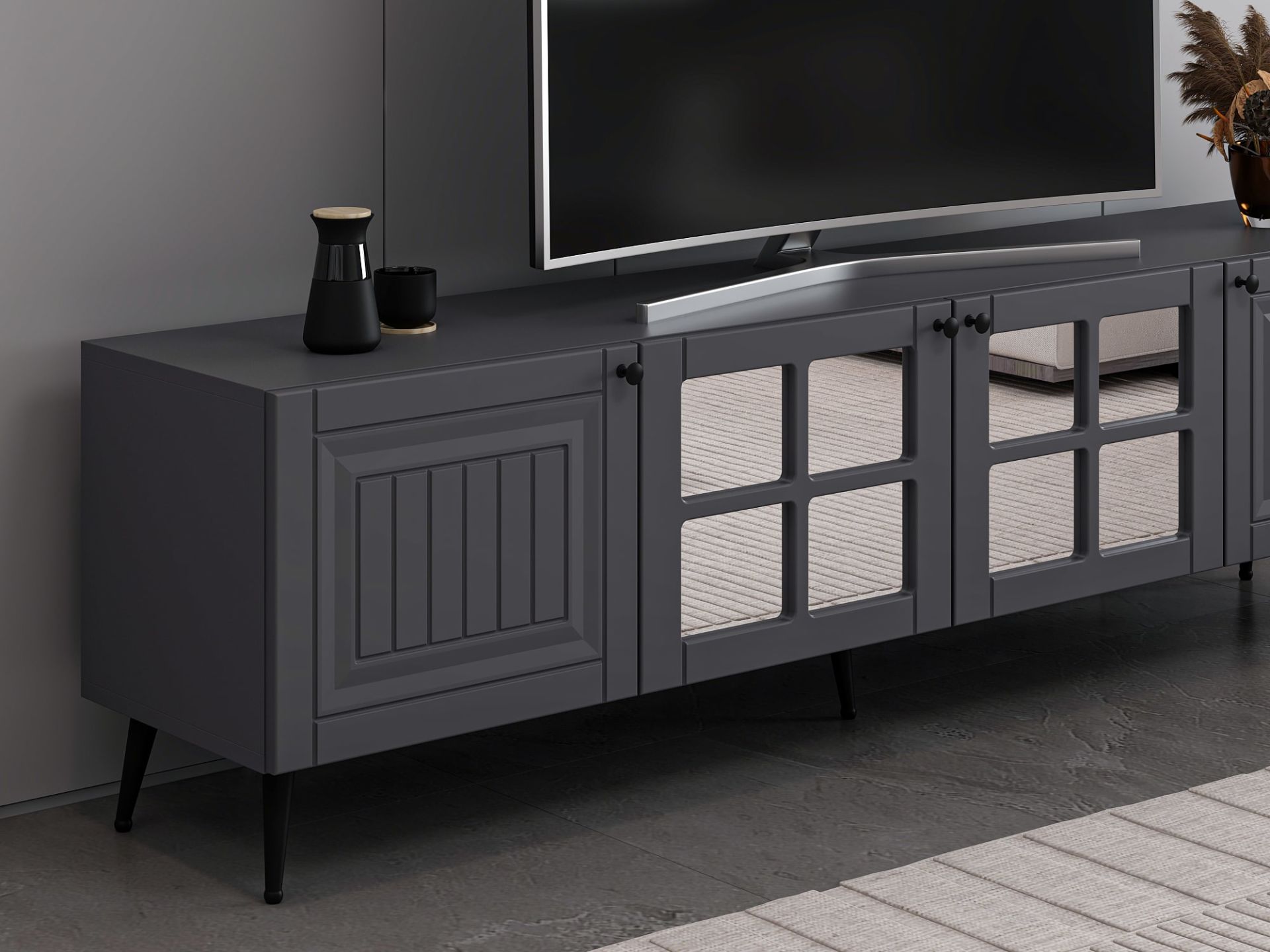 İlkbahar Tv Ünitesi Aynalı Kapak Antrasit Aynalı Antrasit