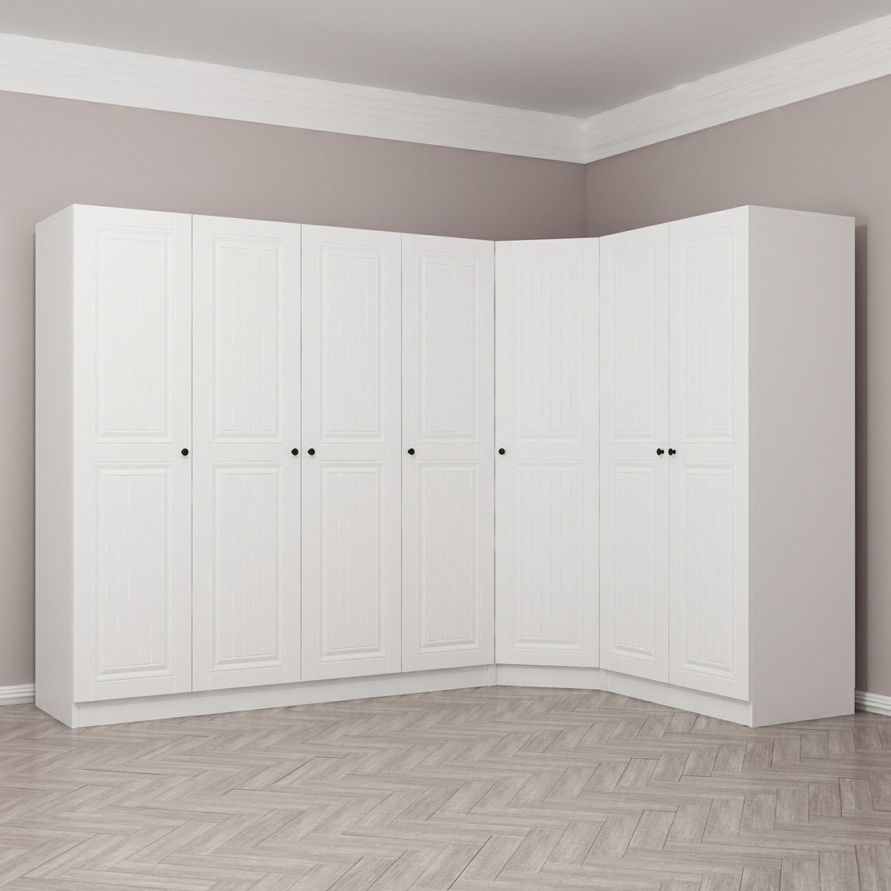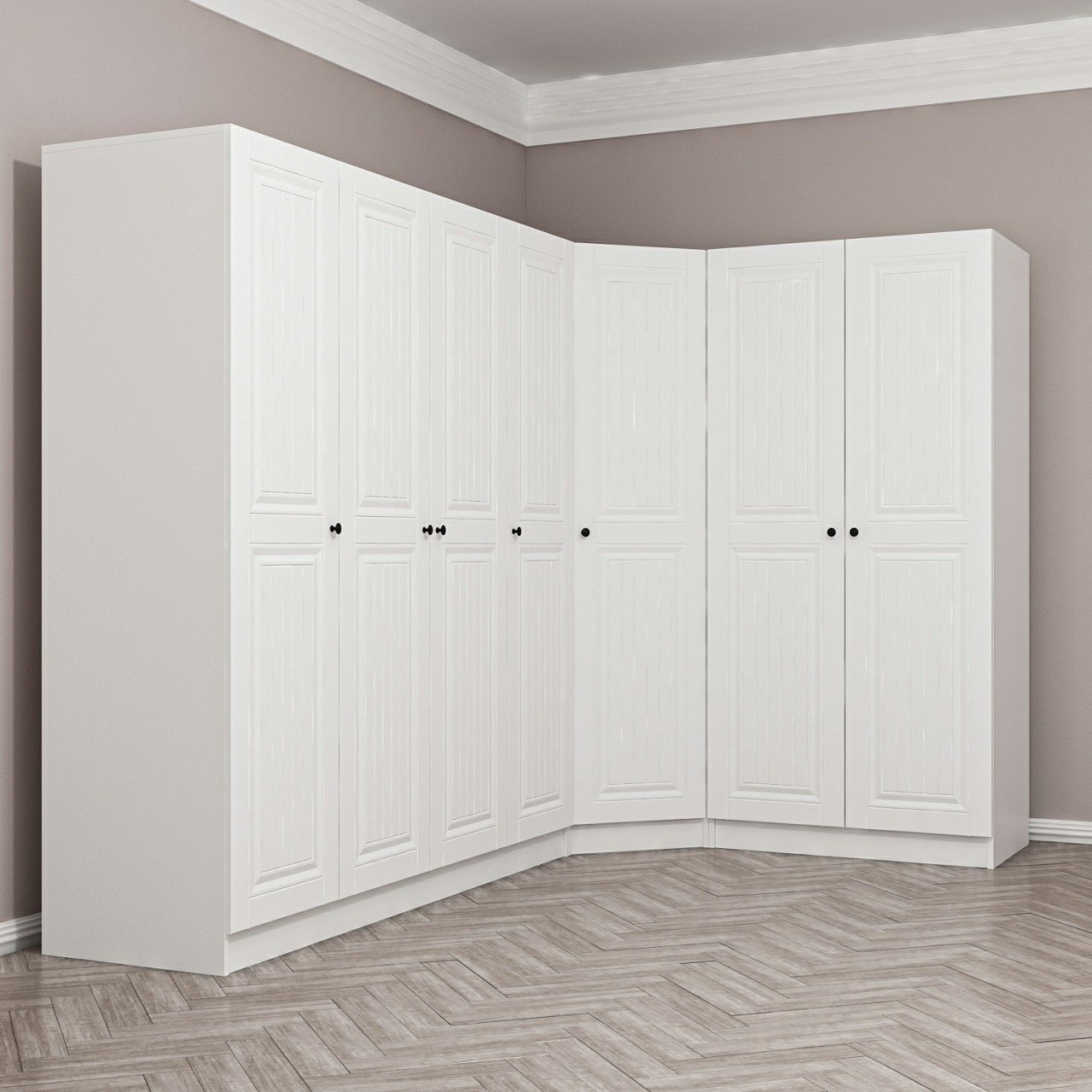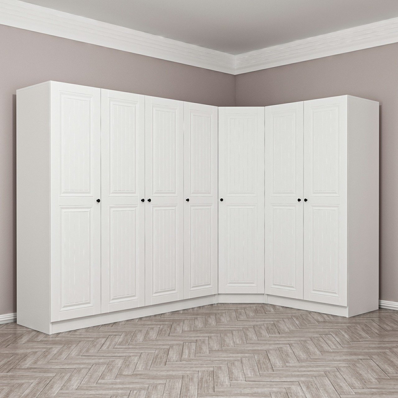Minar Kale190 7 Kapaklı 2Ç Köşe Dolap Beyaz Mebran