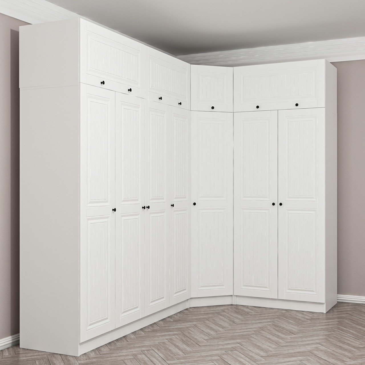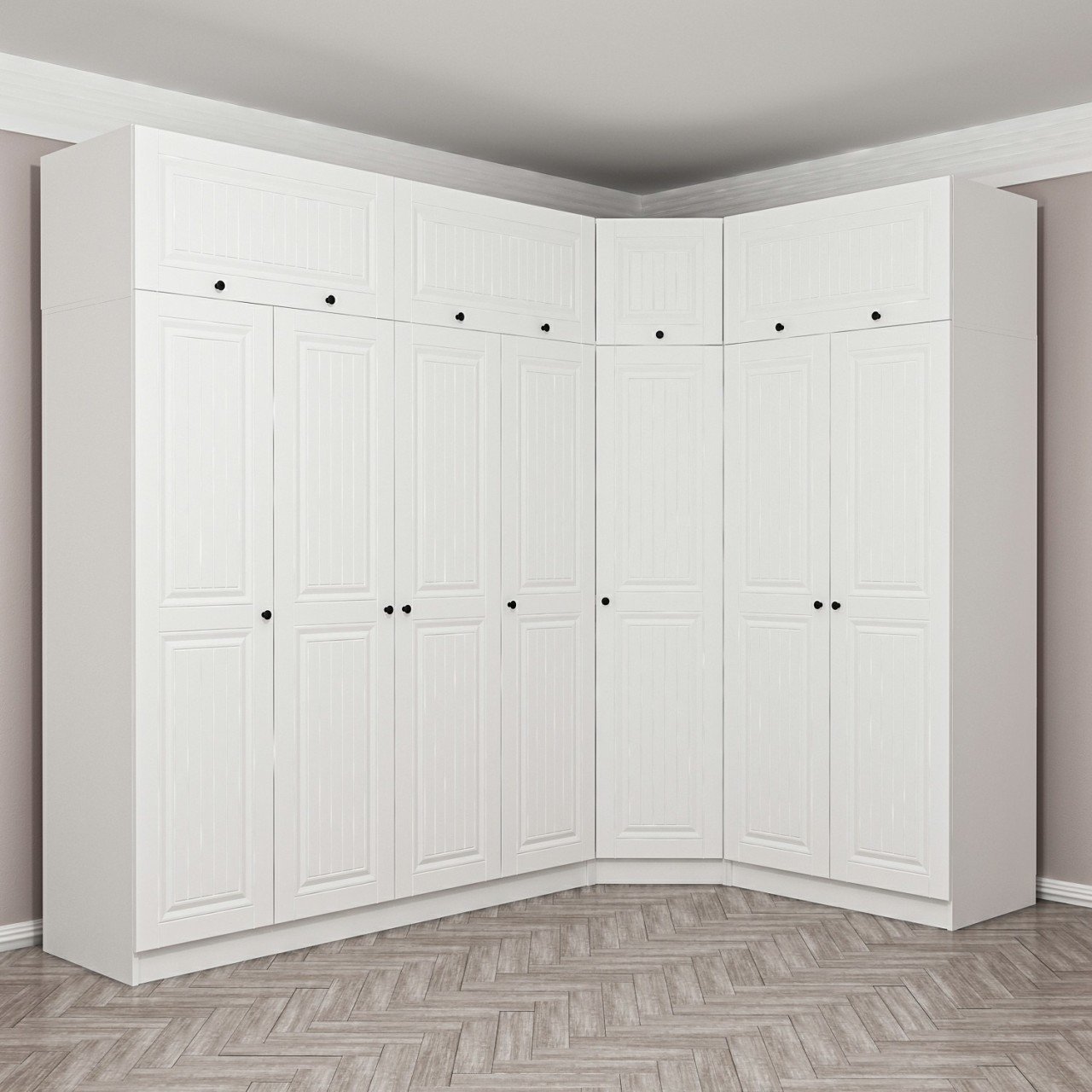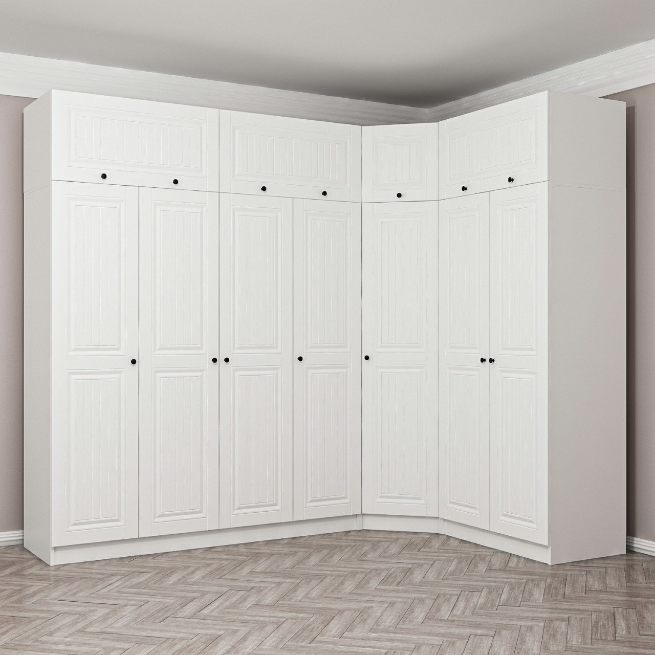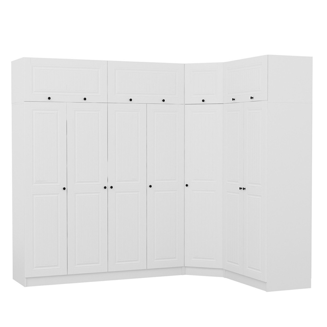 Minar Kale190 7 Kapaklı 2Ç Köşe Dolap + Yüklük Beyaz Mebran