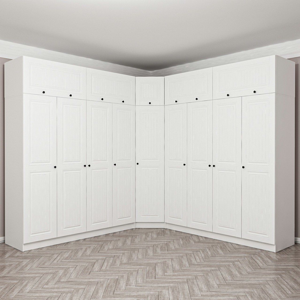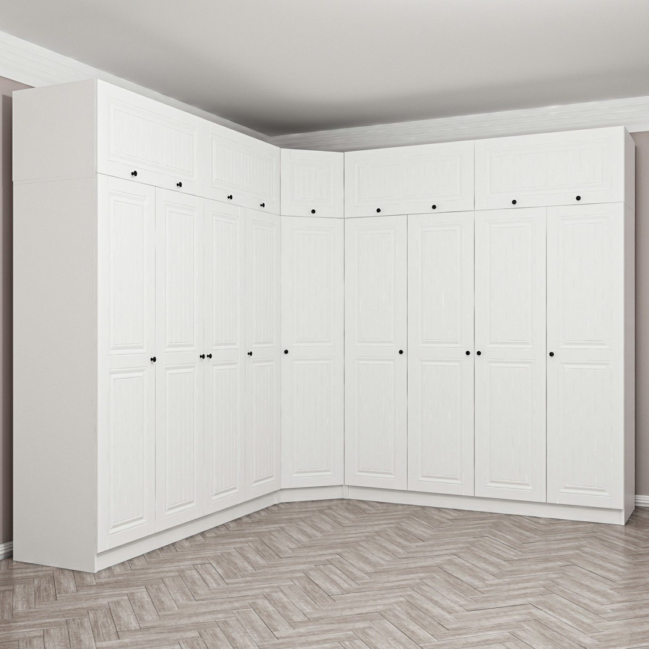 Minar Kale190 9 Kapaklı 4Ç Köşe Dolap + Yüklük Beyaz Mebran