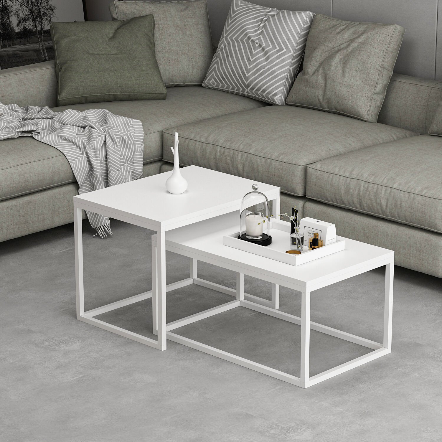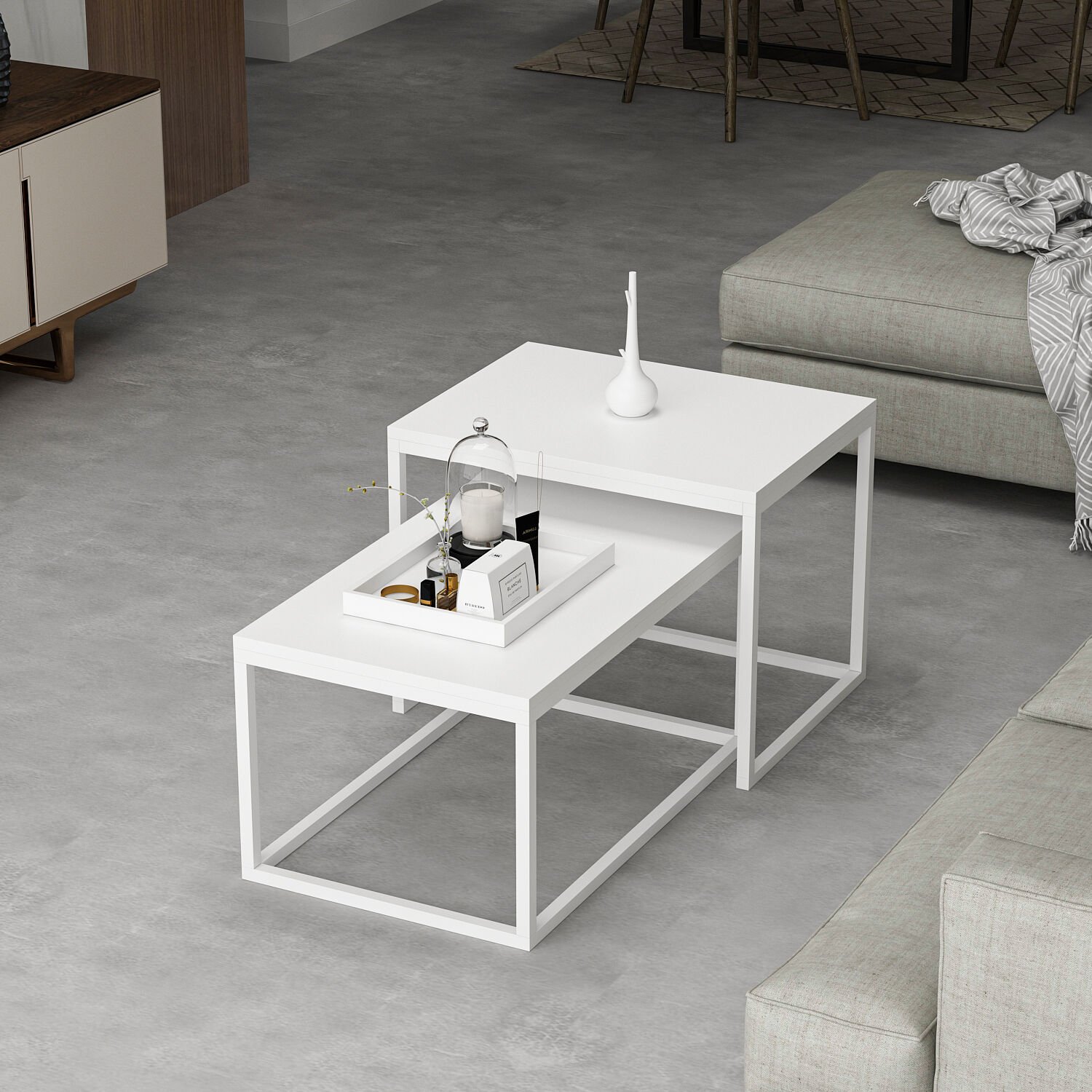 Minar Leka Metal Ayaklı Modern Orta Sehpa - Beyaz