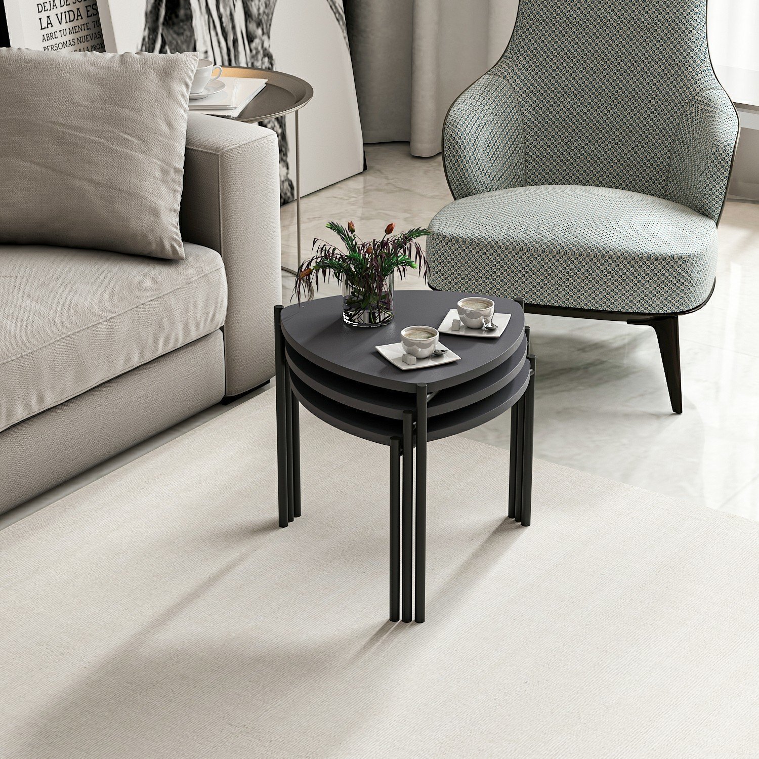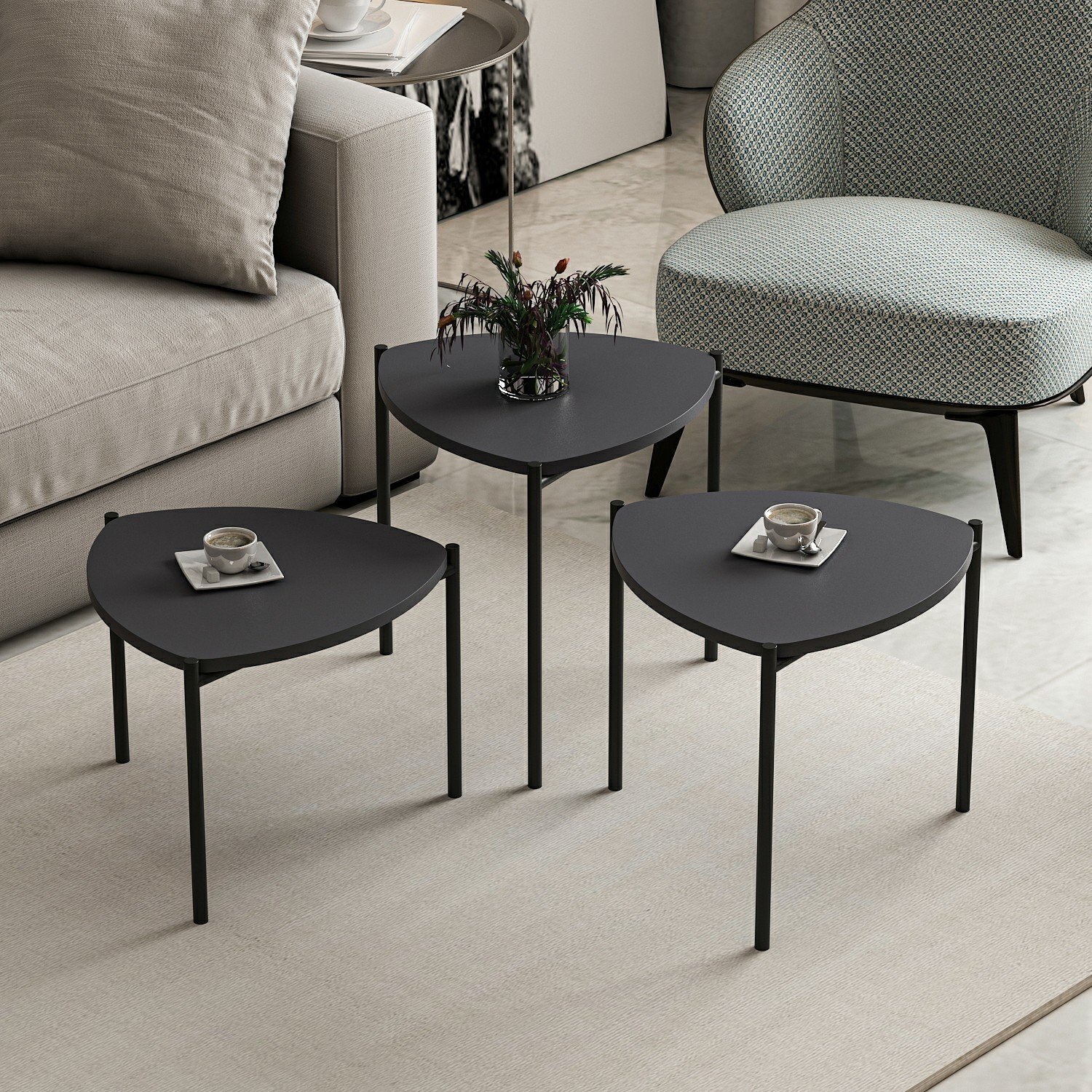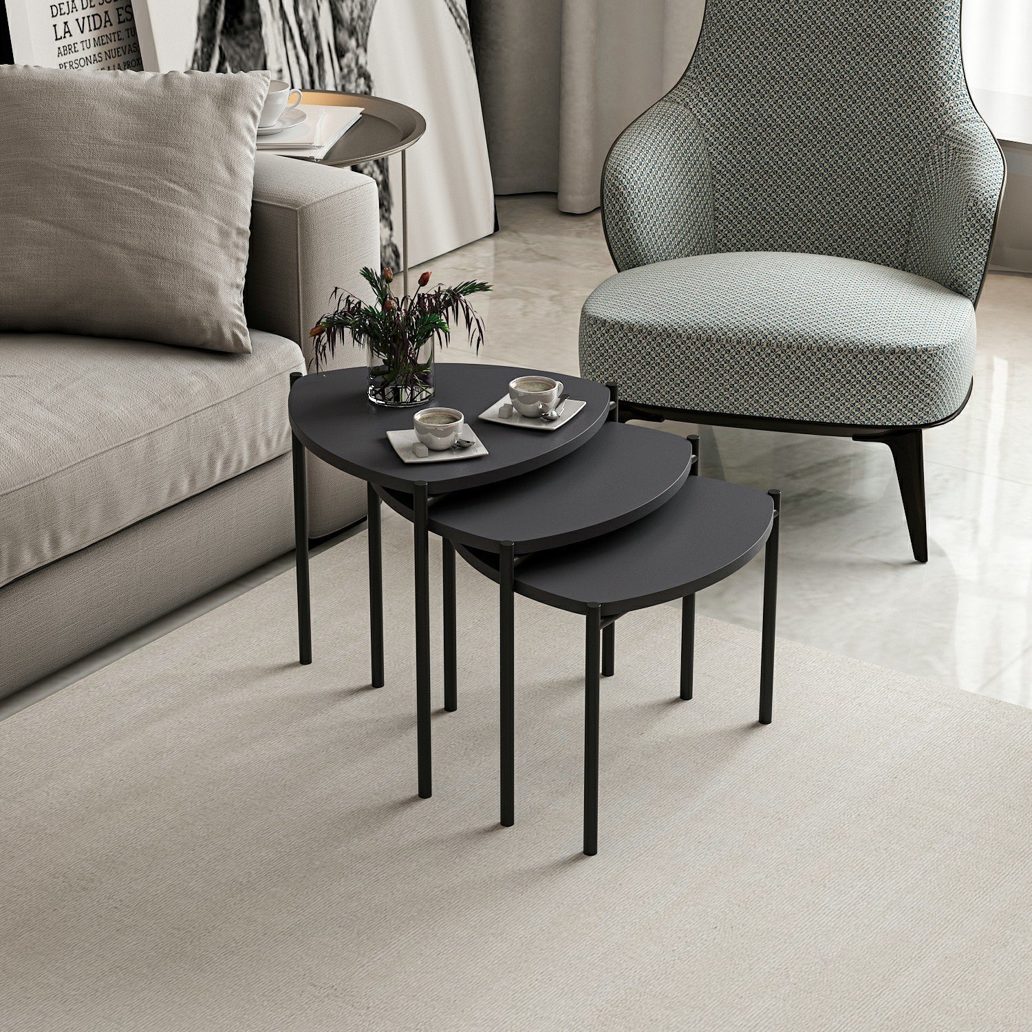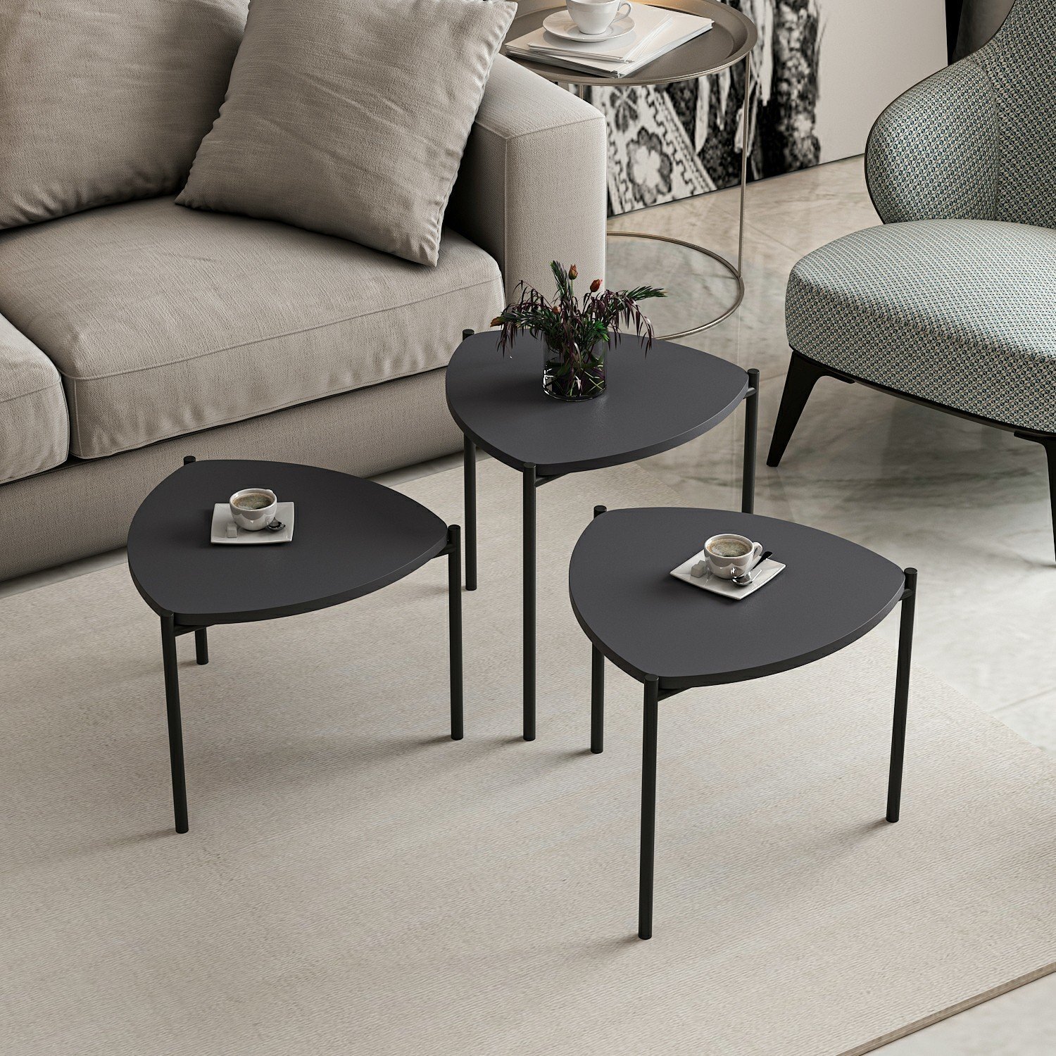 Minar Lenny 3 lü Metal Ayaklı Zigon Sehpa - Antrasit