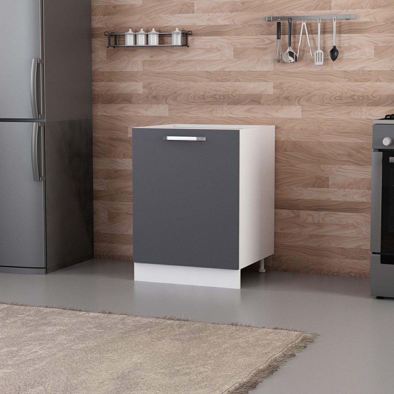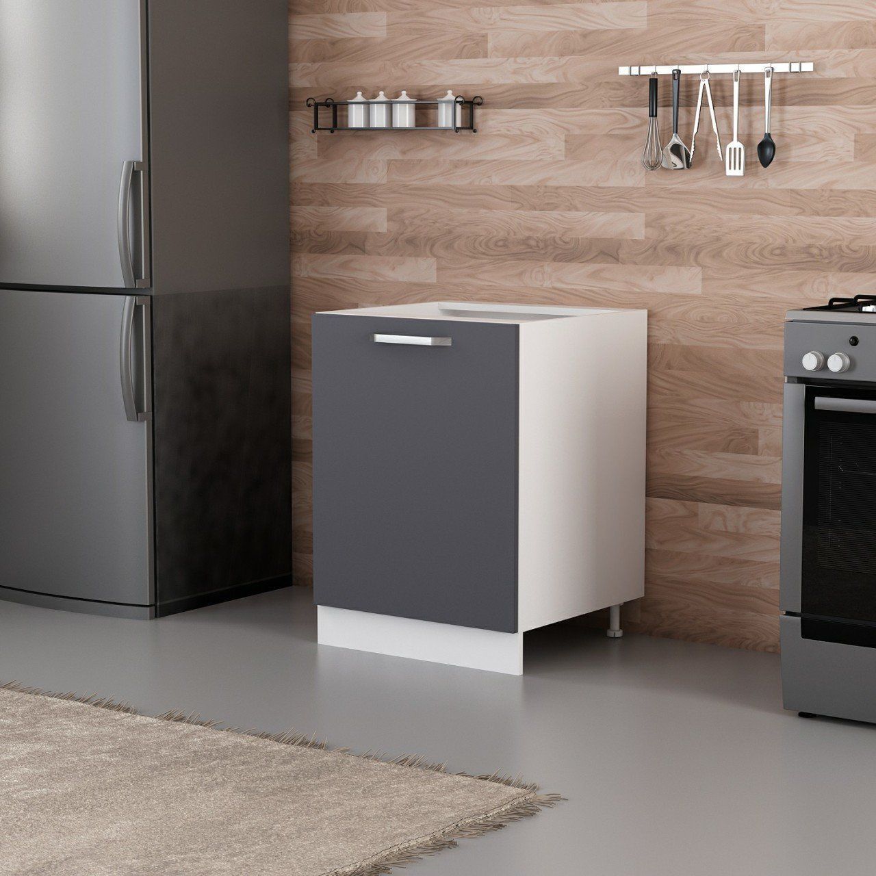 Minar Mutfak Alt Modül 1K1R 60Cm Dolap Beyaz/Antrasit - A1