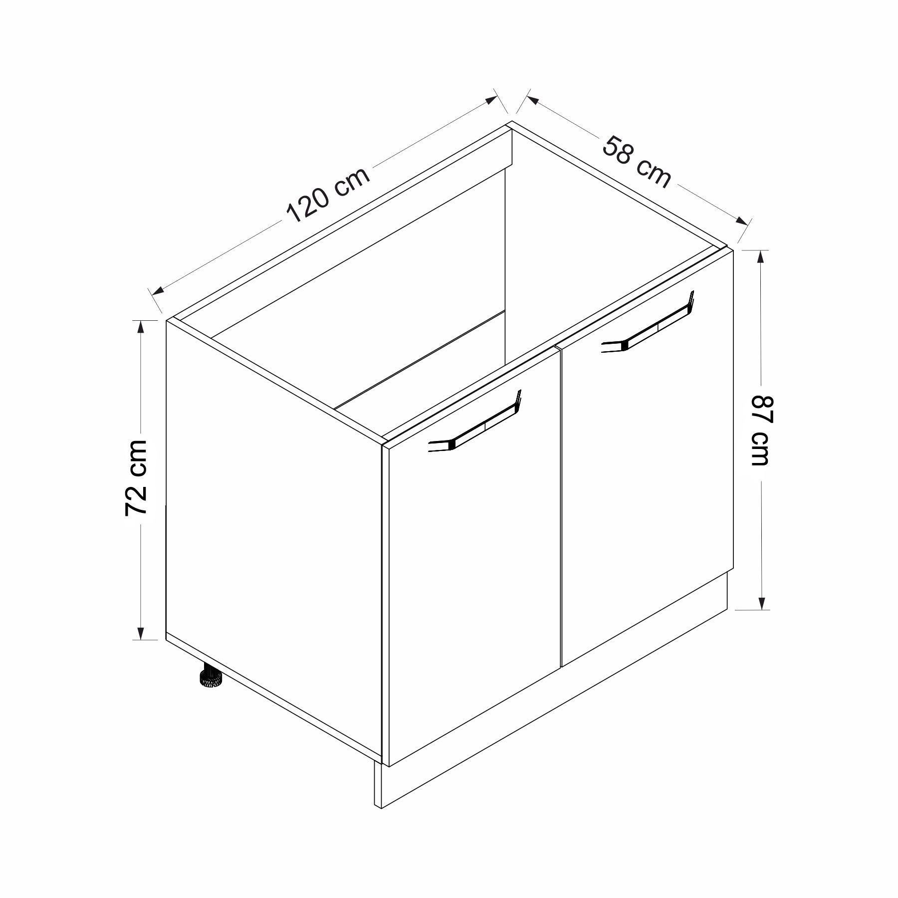 Minar Mutfak Alt Modül 2K 120Cm Evye Dolap Beyaz/Antrasit - A1
