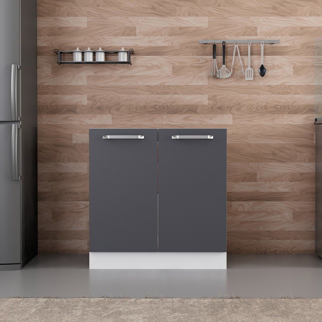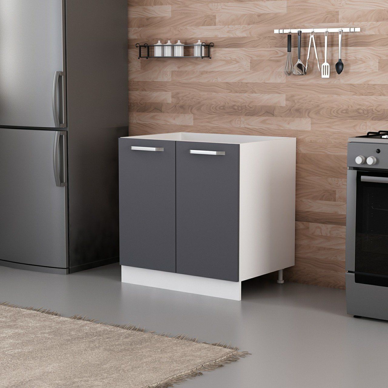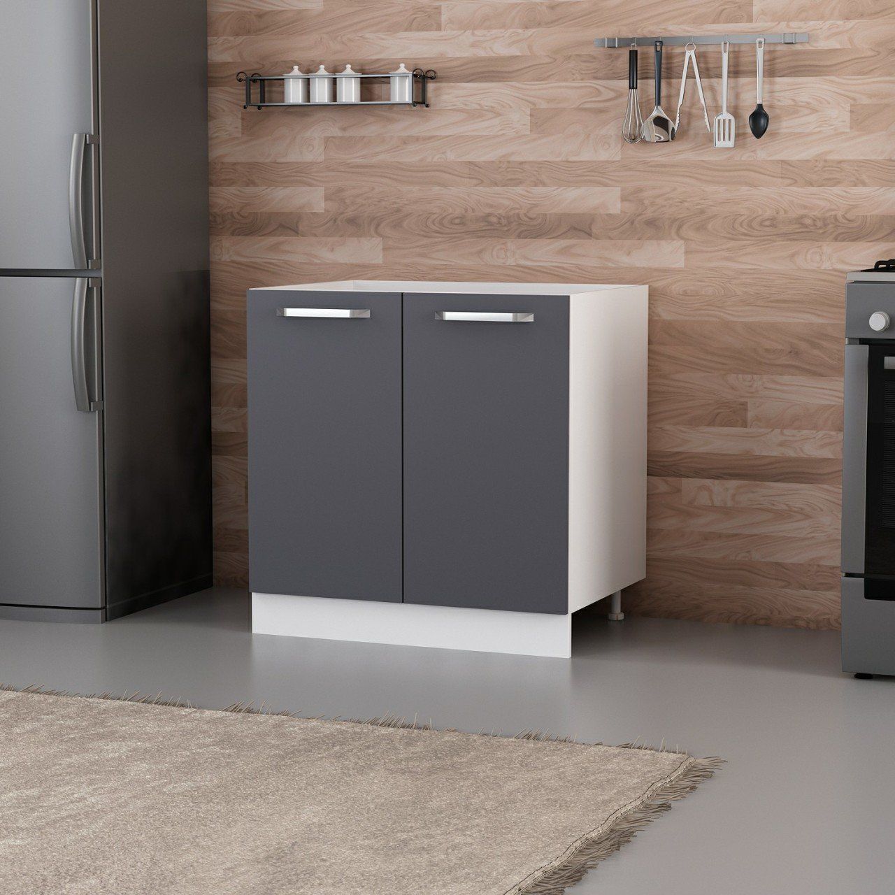Minar Mutfak Alt Modül 2K 80Cm Evye Dolap Beyaz/Antrasit - A1