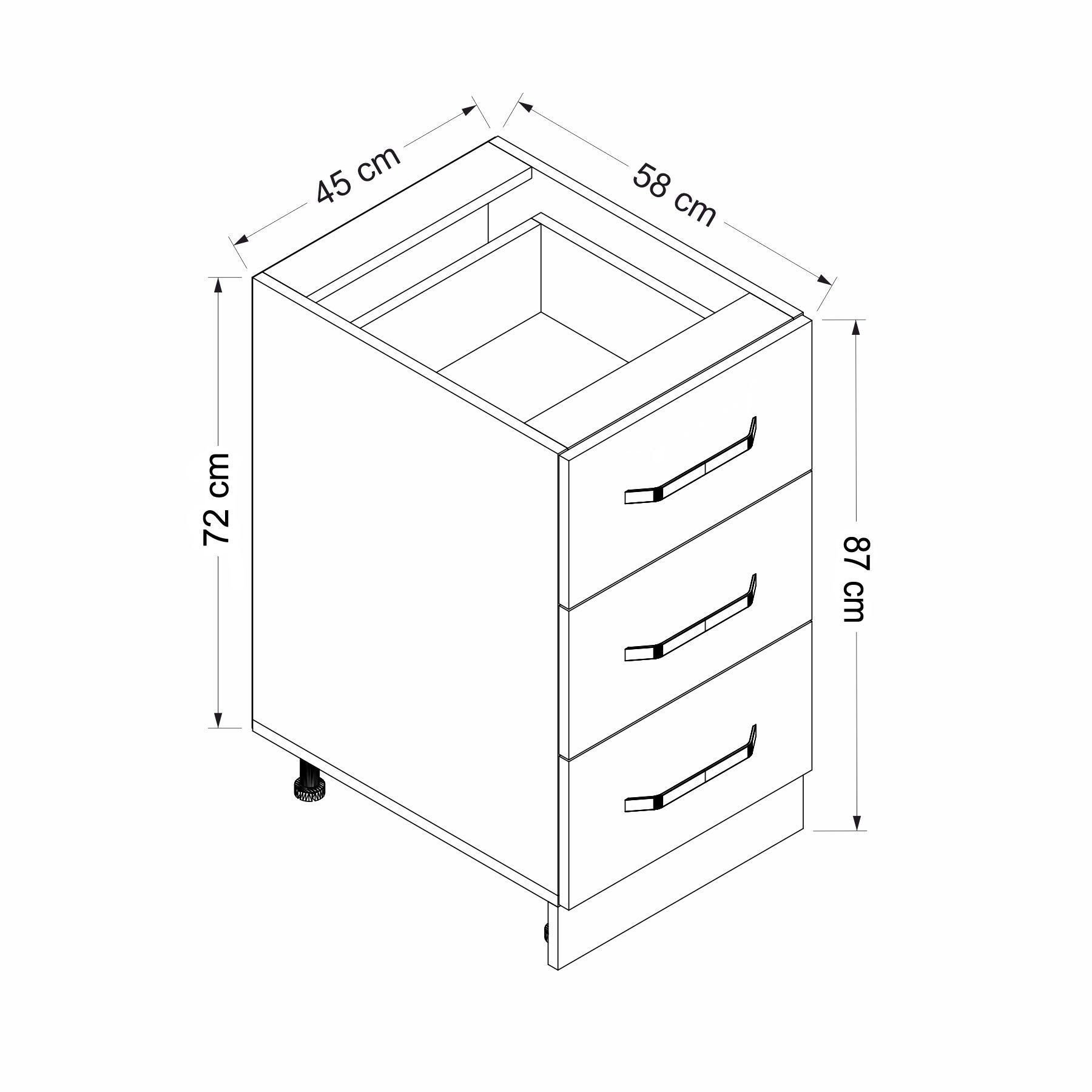 Minar Mutfak Alt Modül 3Ç Nray 45Cm Dolap Beyaz/Antrasit - A1