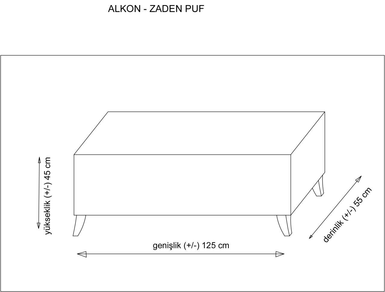 125 cm genişliği ve 55 cm derinliği ile geniş oturum imkânı sunarken, 45 cm yüksekliği sayesinde hem oturma hem de ayak dayama amaçlı kullanımlarda ideal ergonomi sağlar.