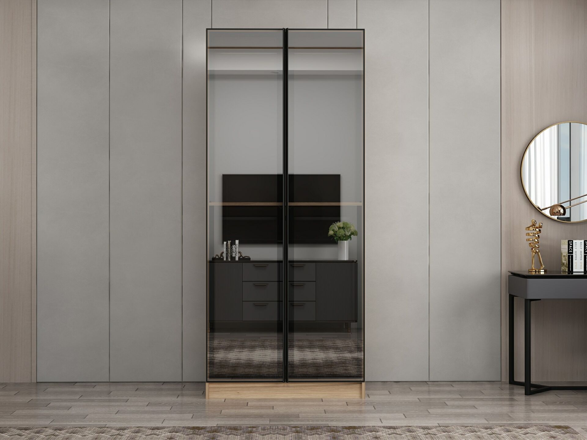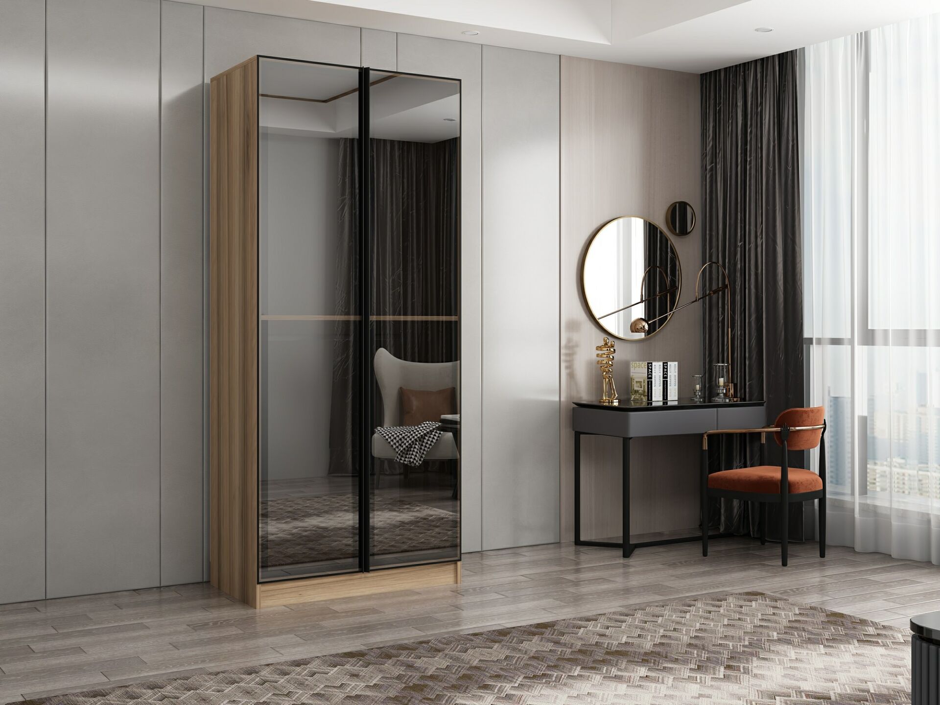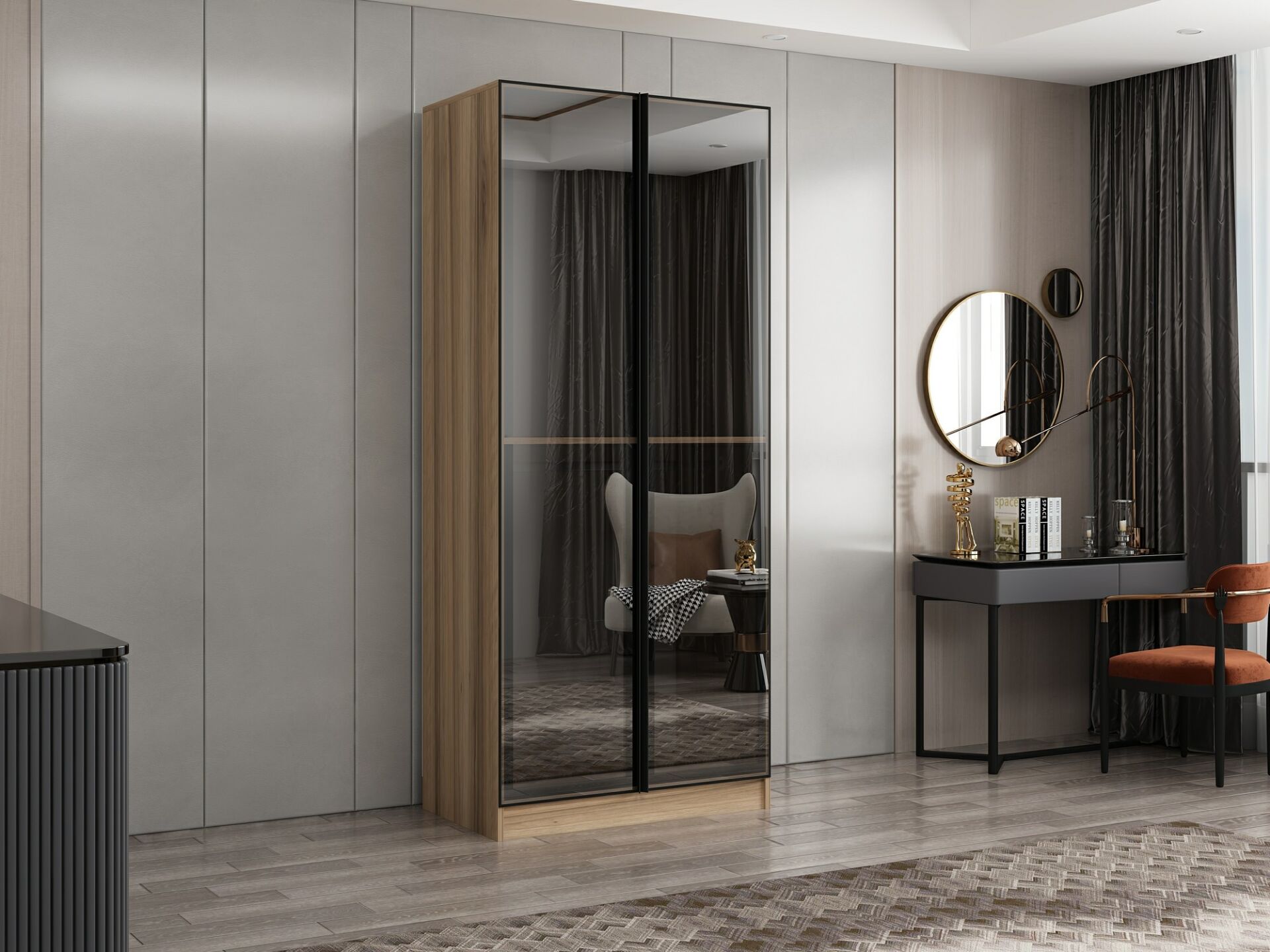 Nisa 2 Kapaklı Dolap Dore Reflekte Cam