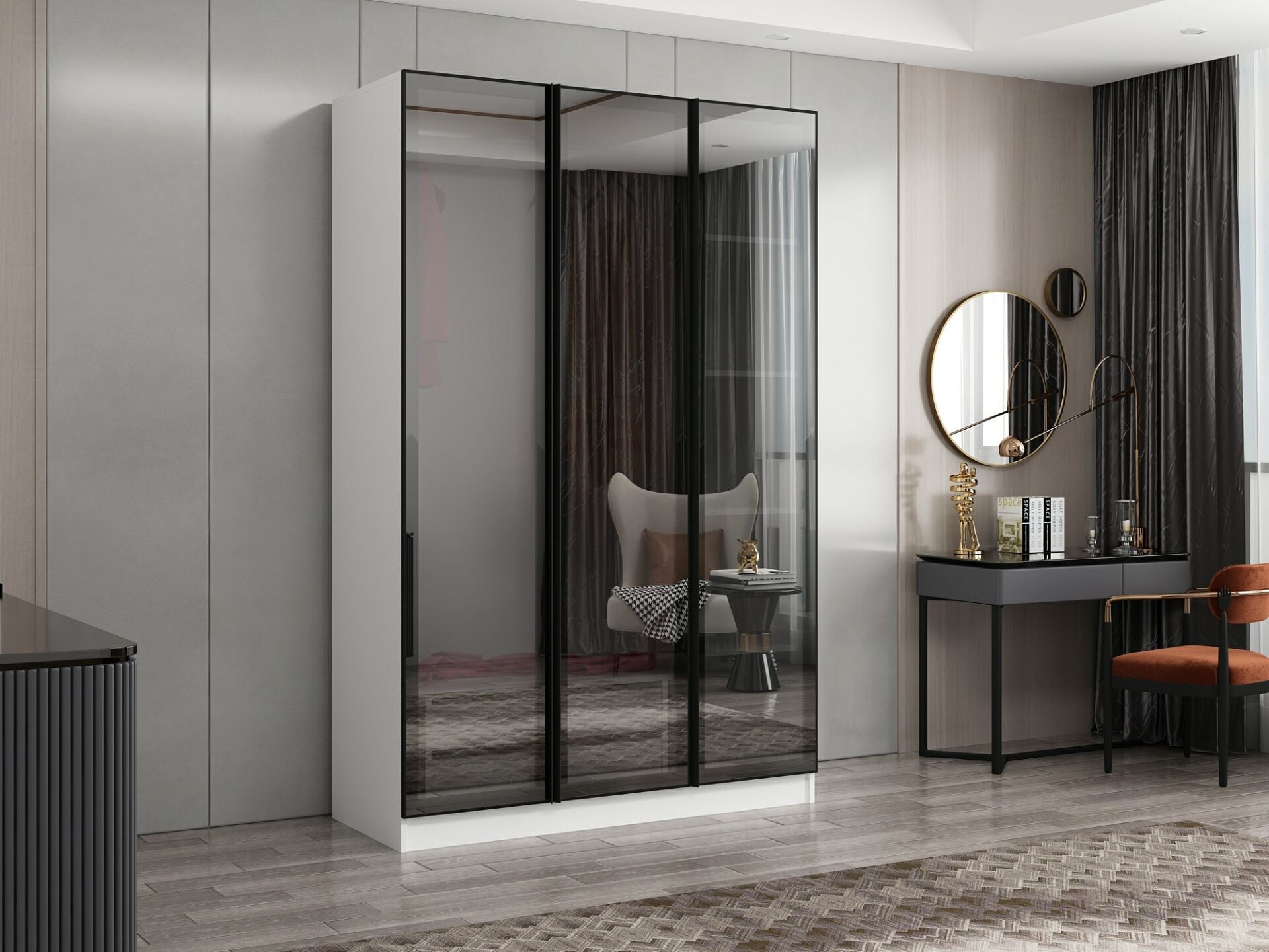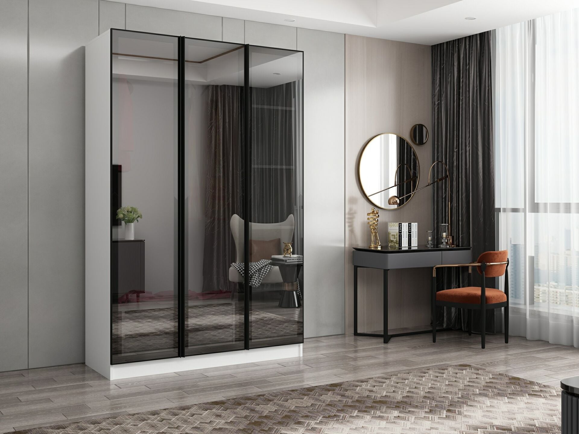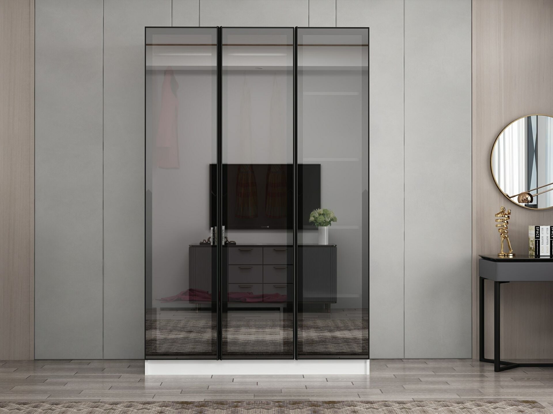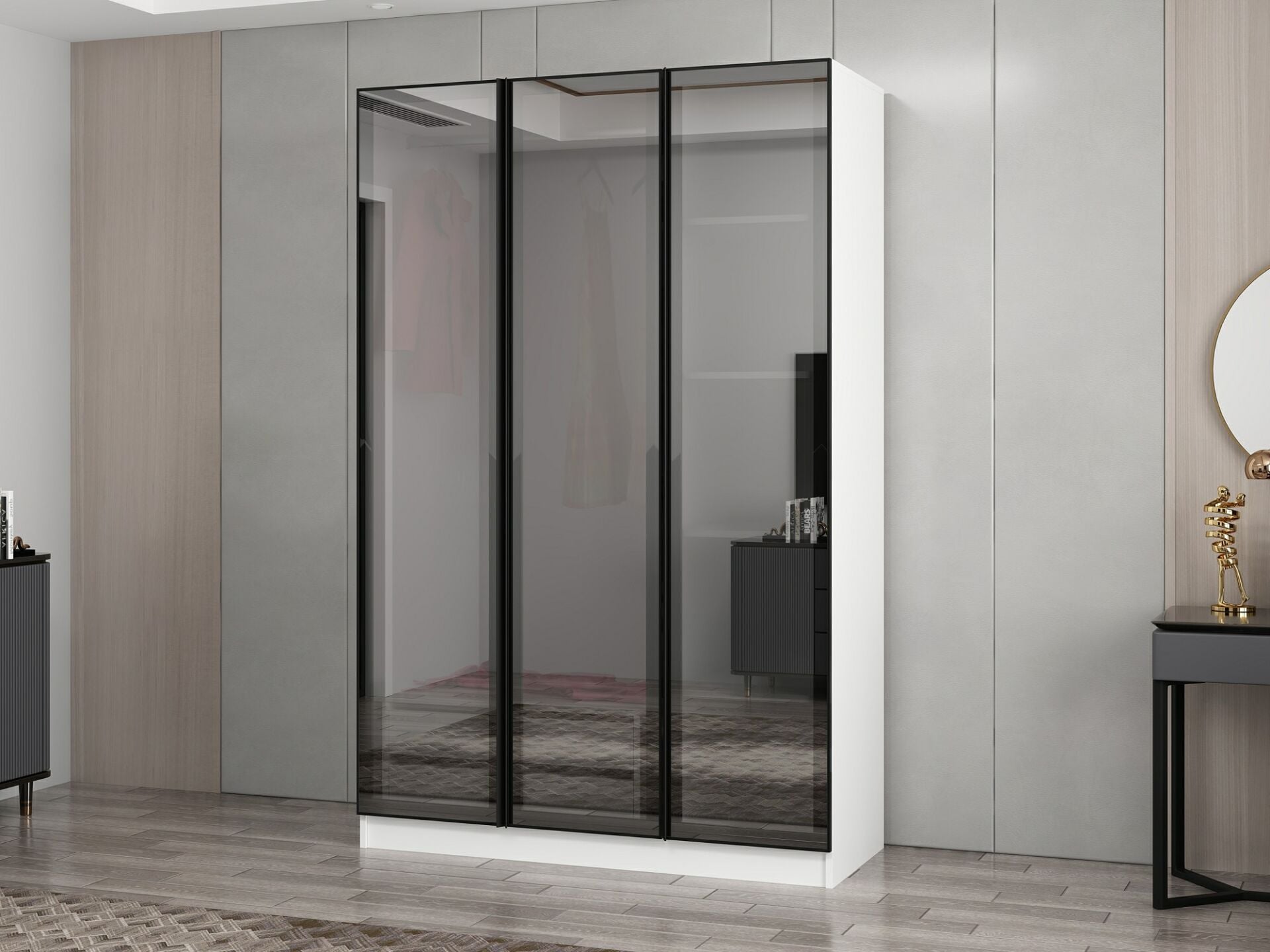 Nisa 3 Kapaklı 2 Çekmece Dolap Beyaz Reflekte Cam