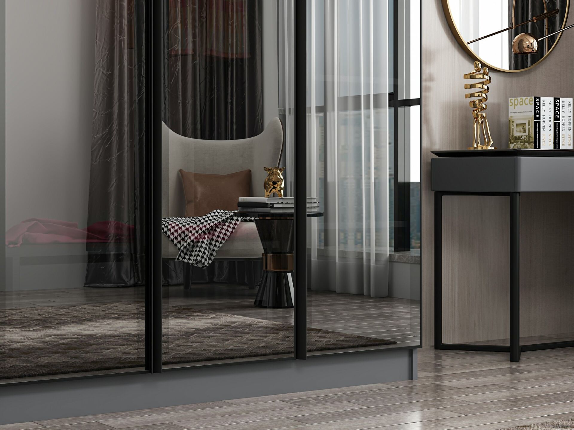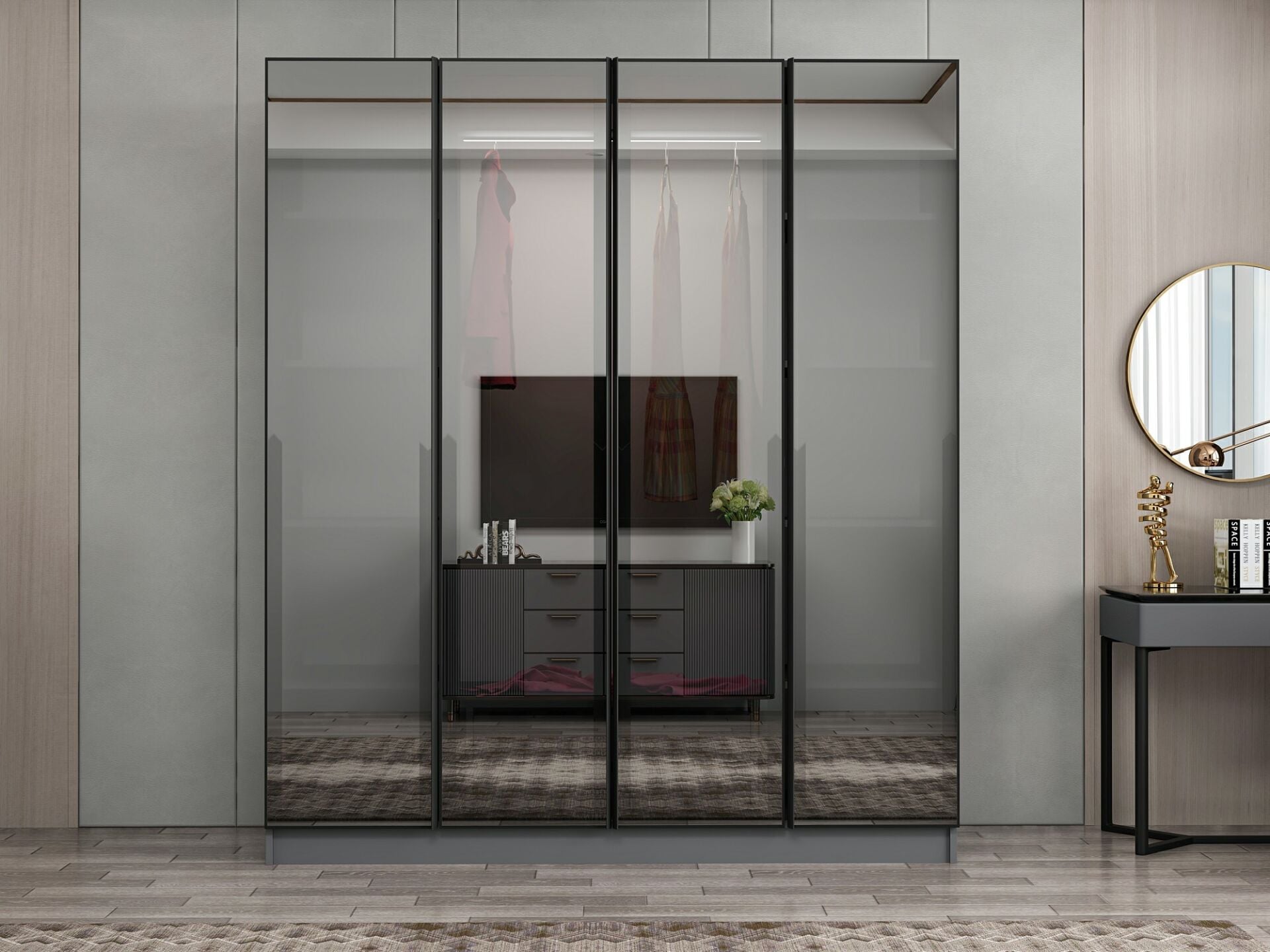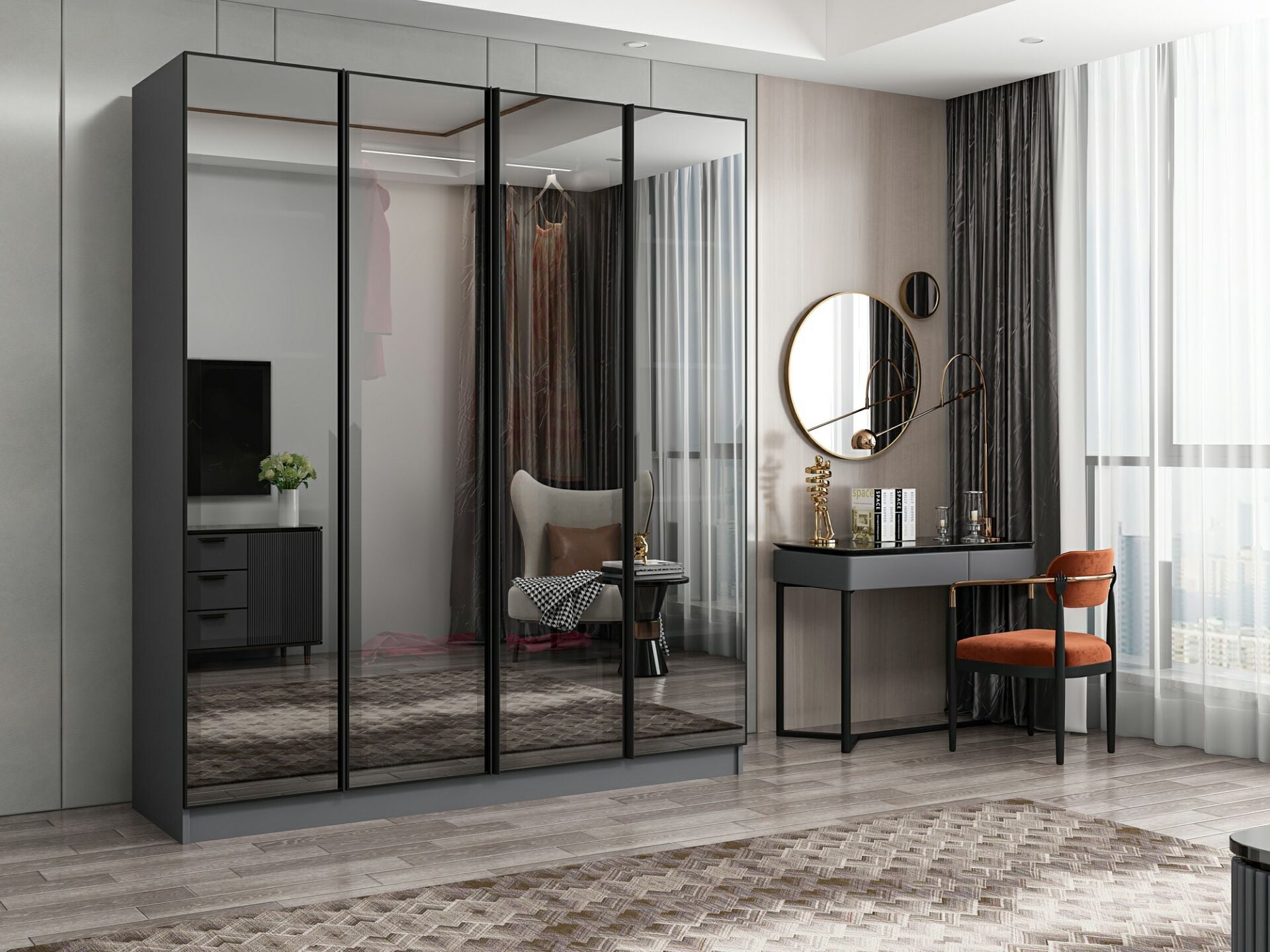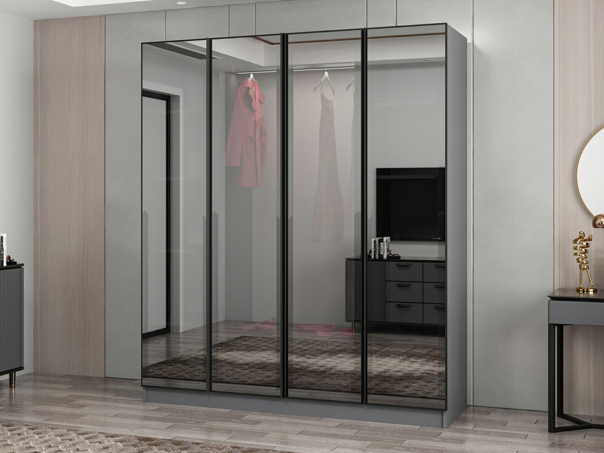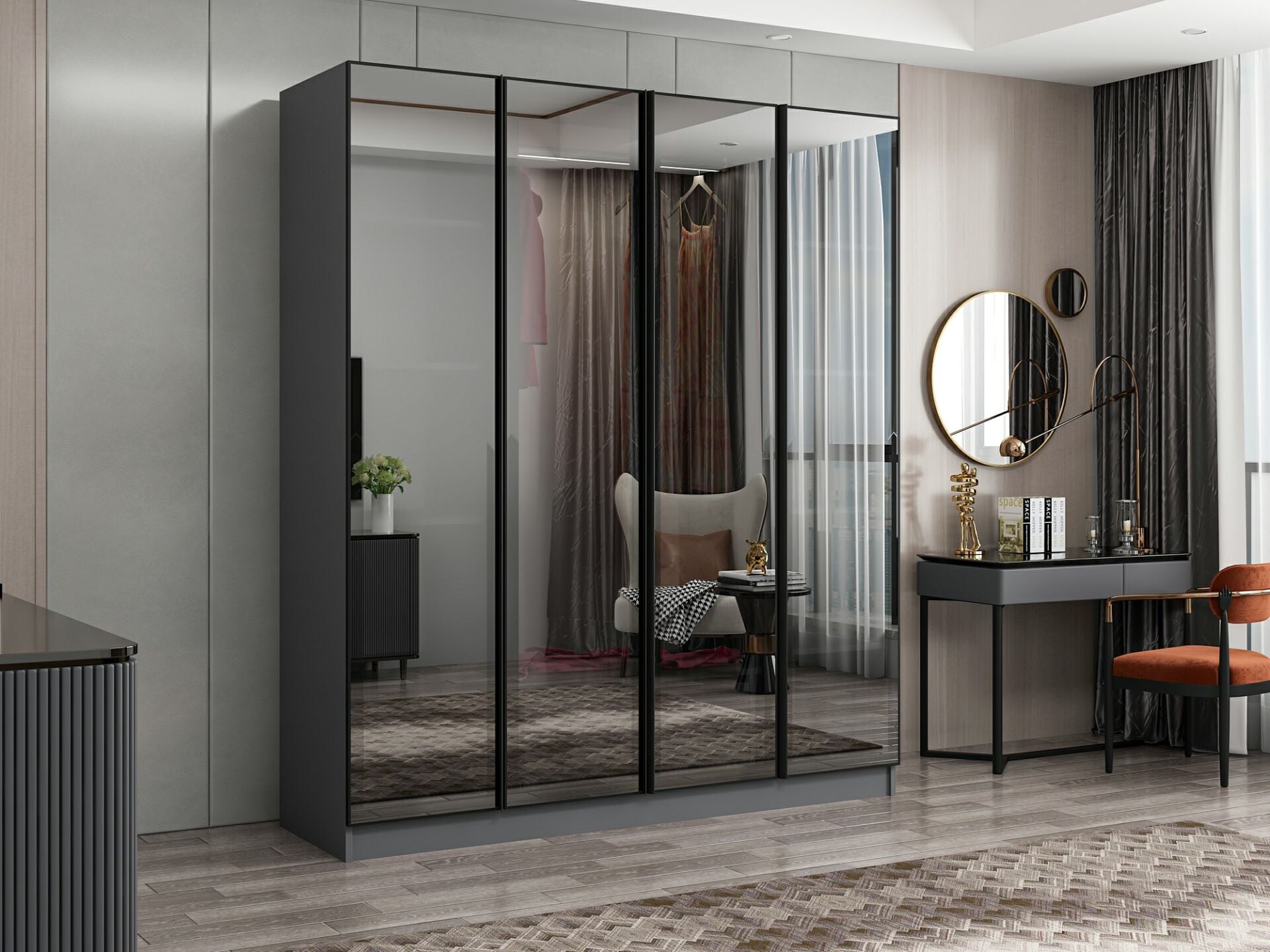 Nisa 4 Kapaklı 2 Çekmece Dolap Antrasit Reflekte Cam