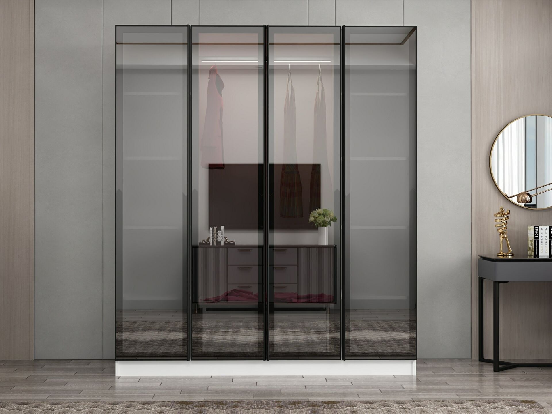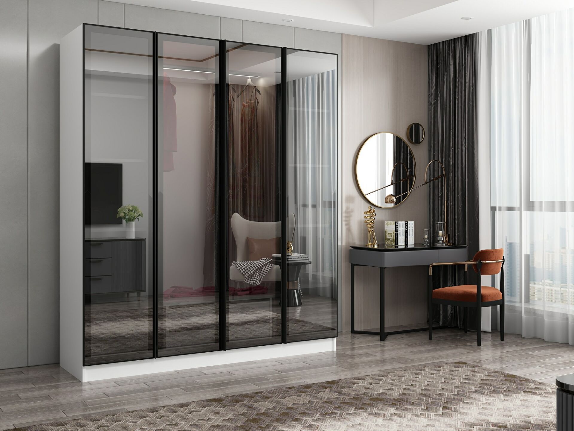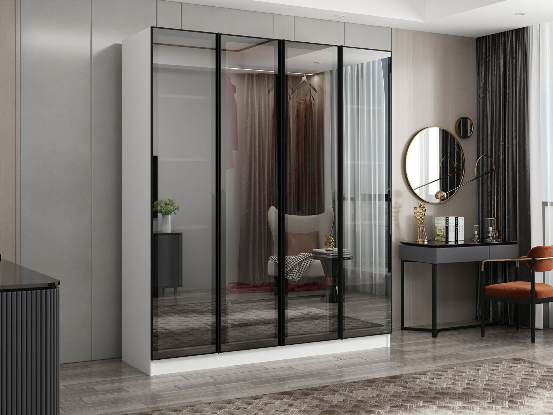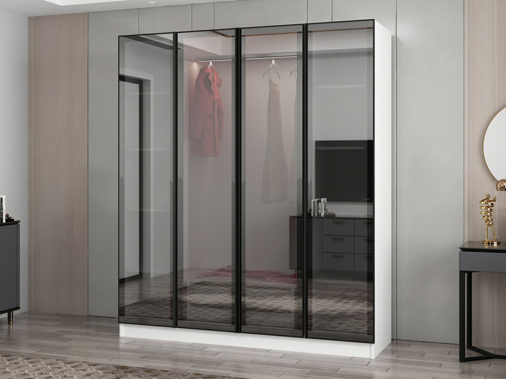 Nisa 4 Kapaklı 2 Çekmece Dolap Beyaz Reflekte Cam
