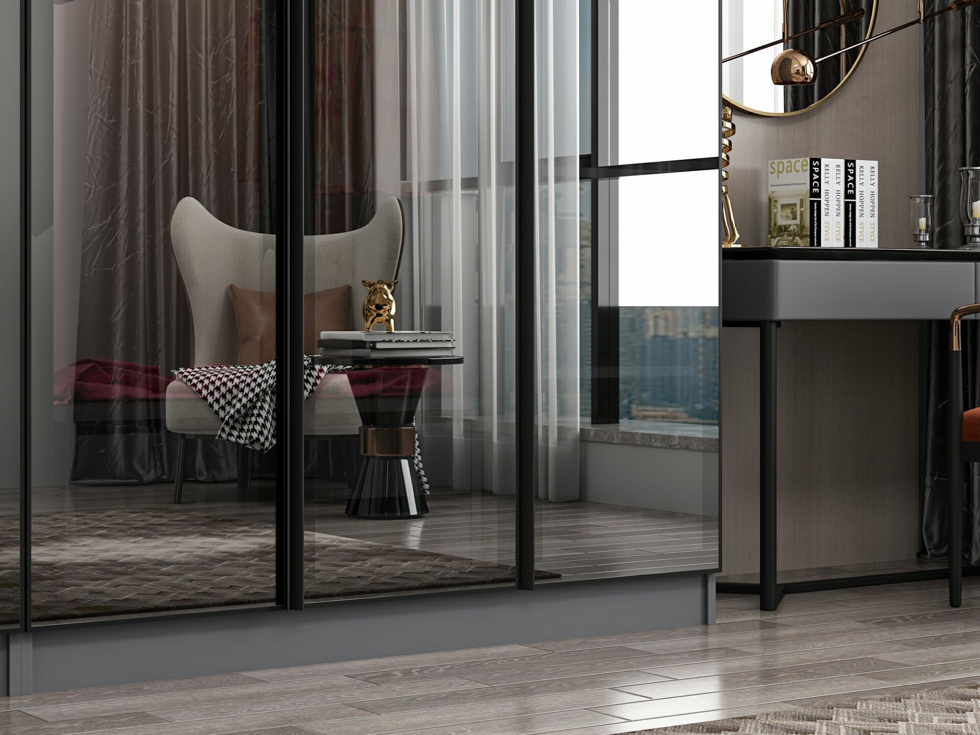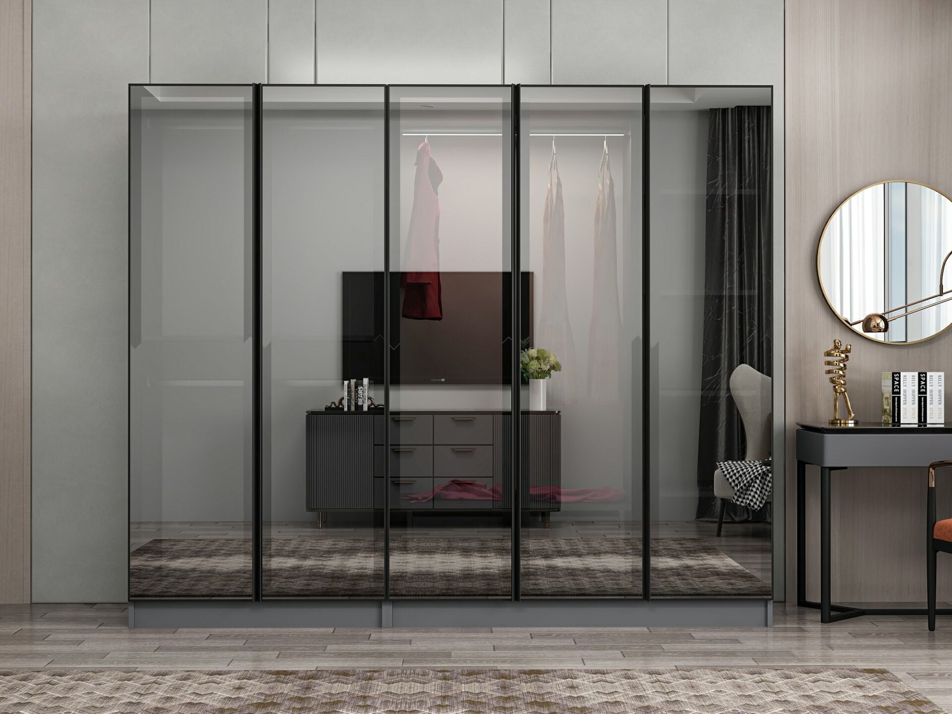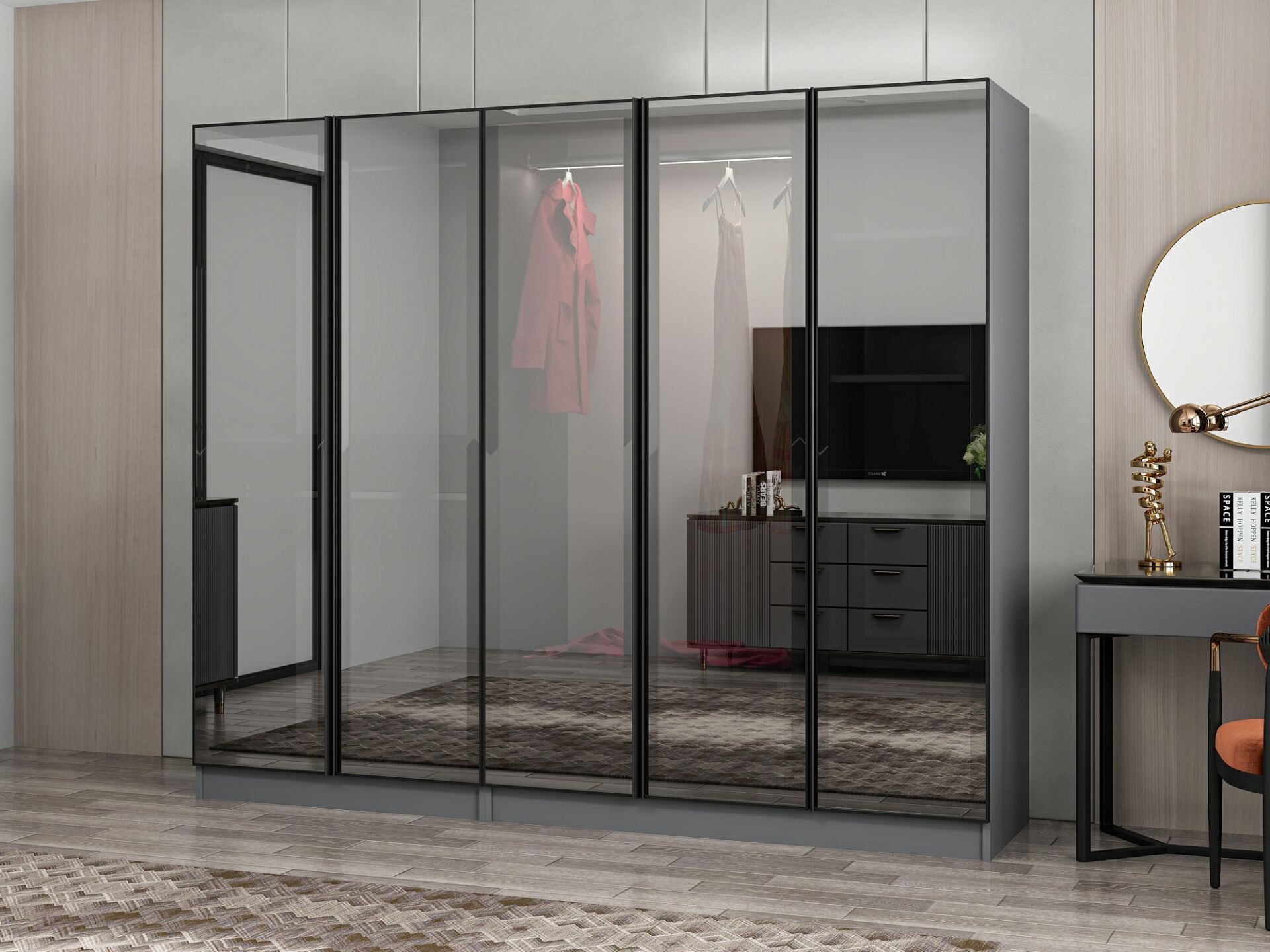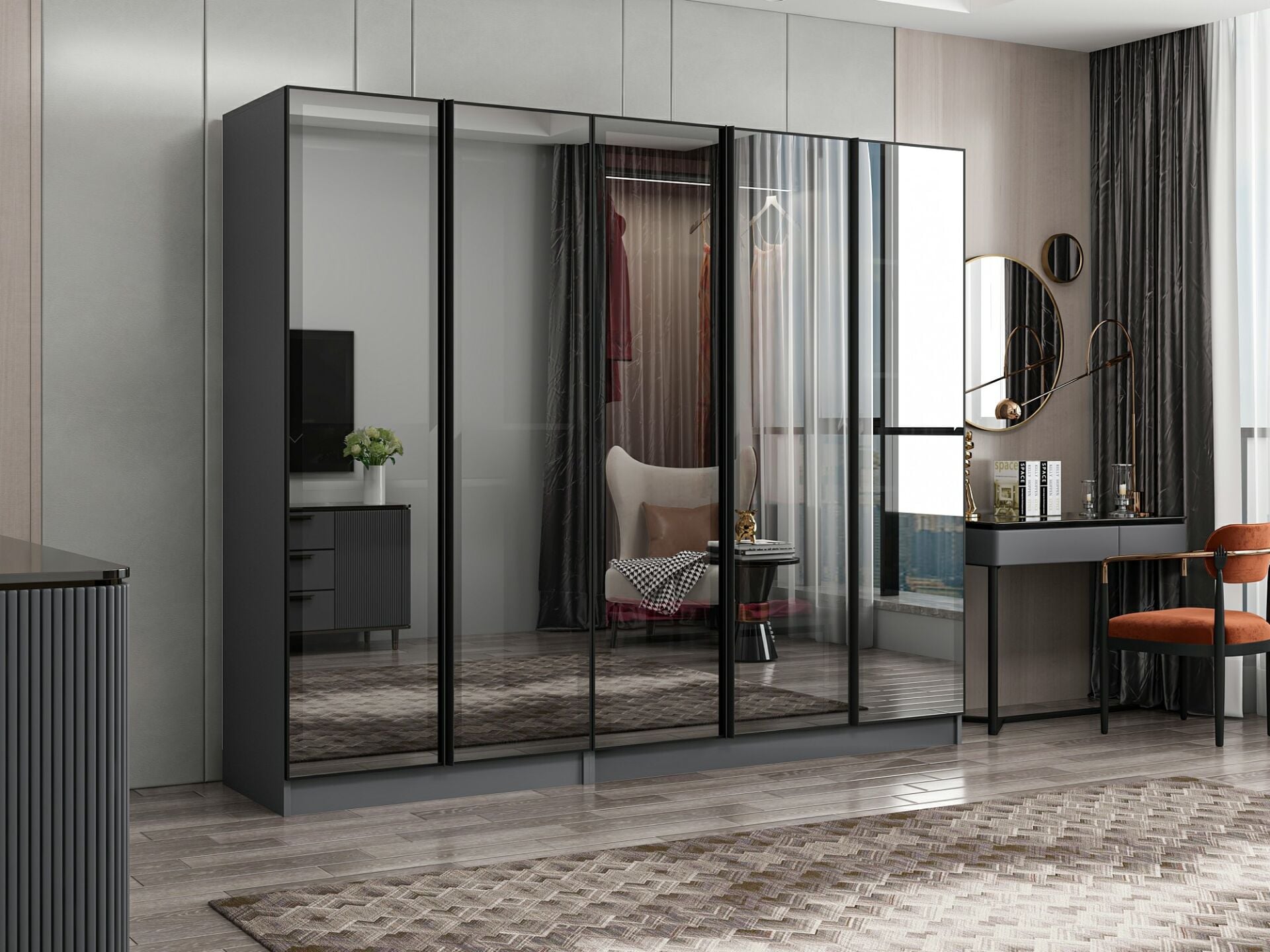 Nisa 5 Kapaklı 2 Çekmece Dolap Antrasit Reflekte Cam