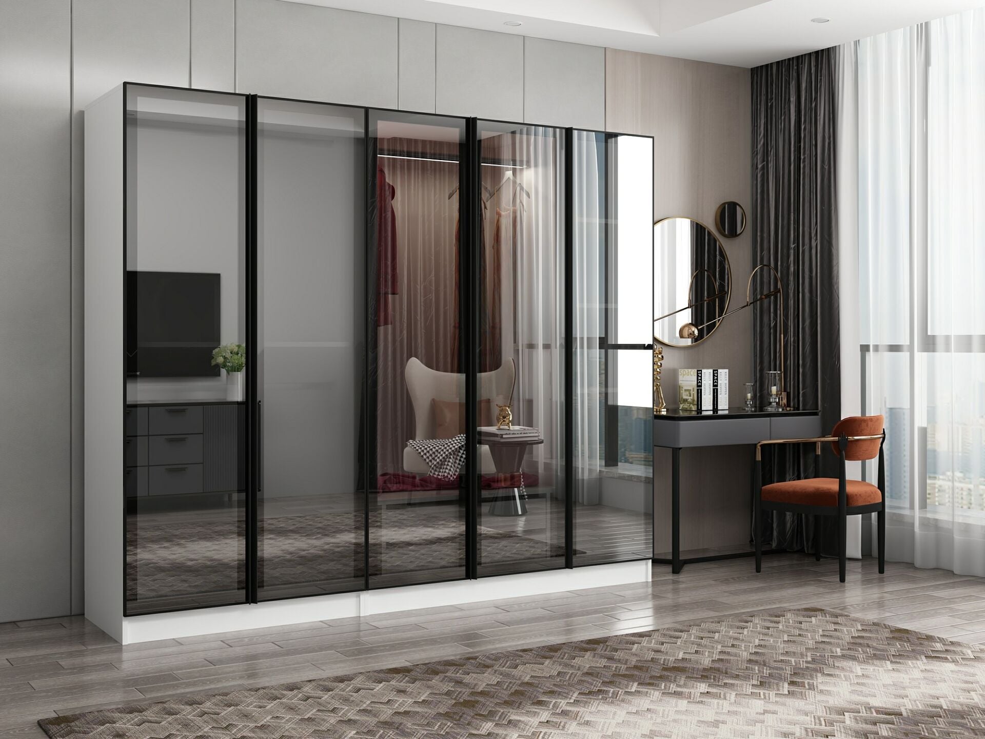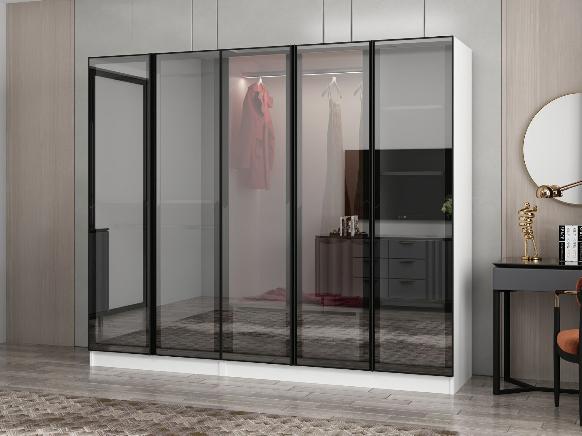 Nisa 5 Kapaklı 2 Çekmece Dolap Beyaz Reflekte Cam