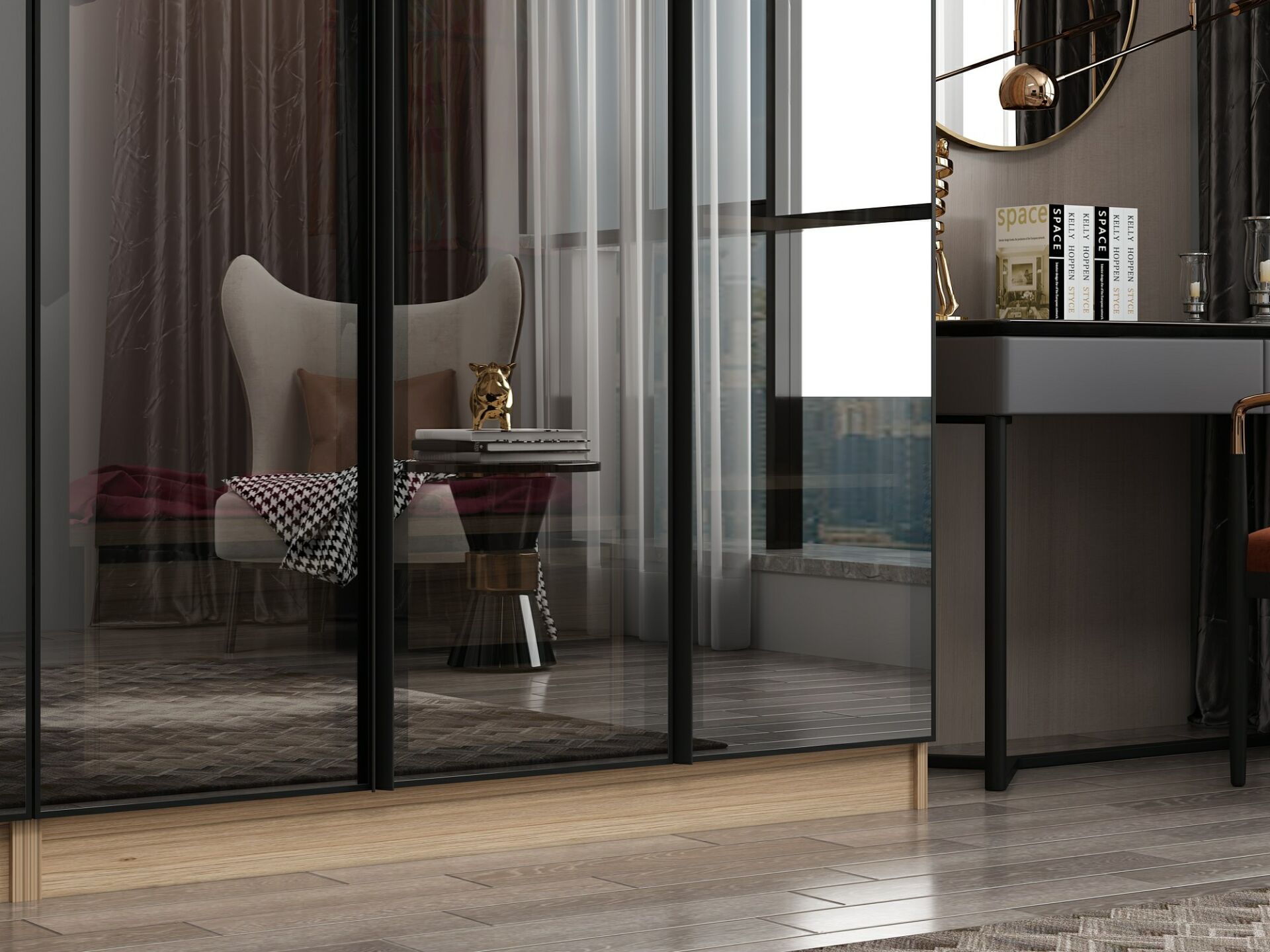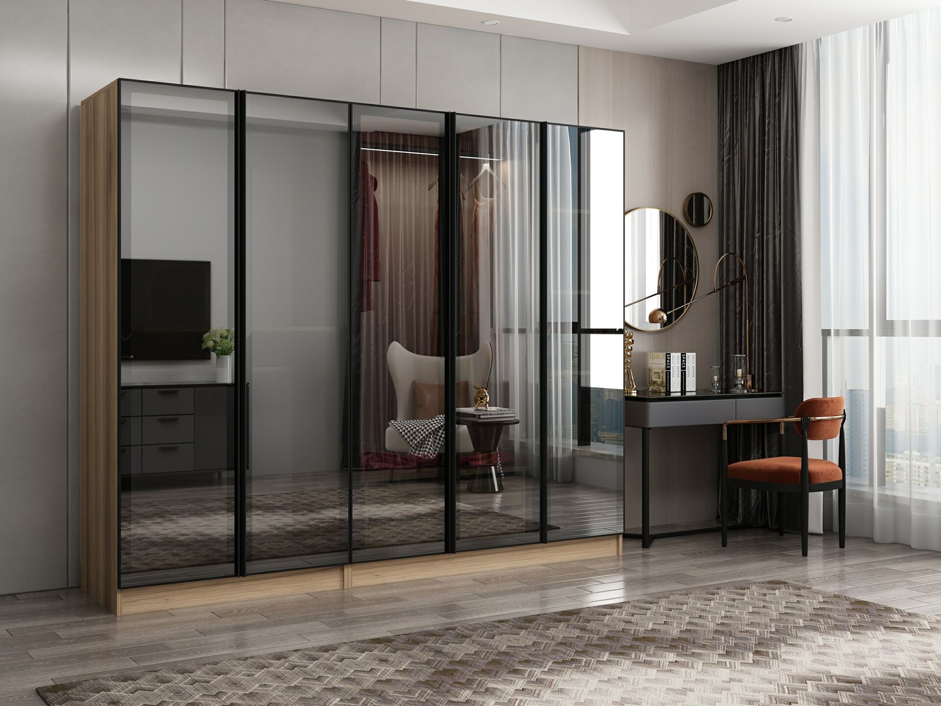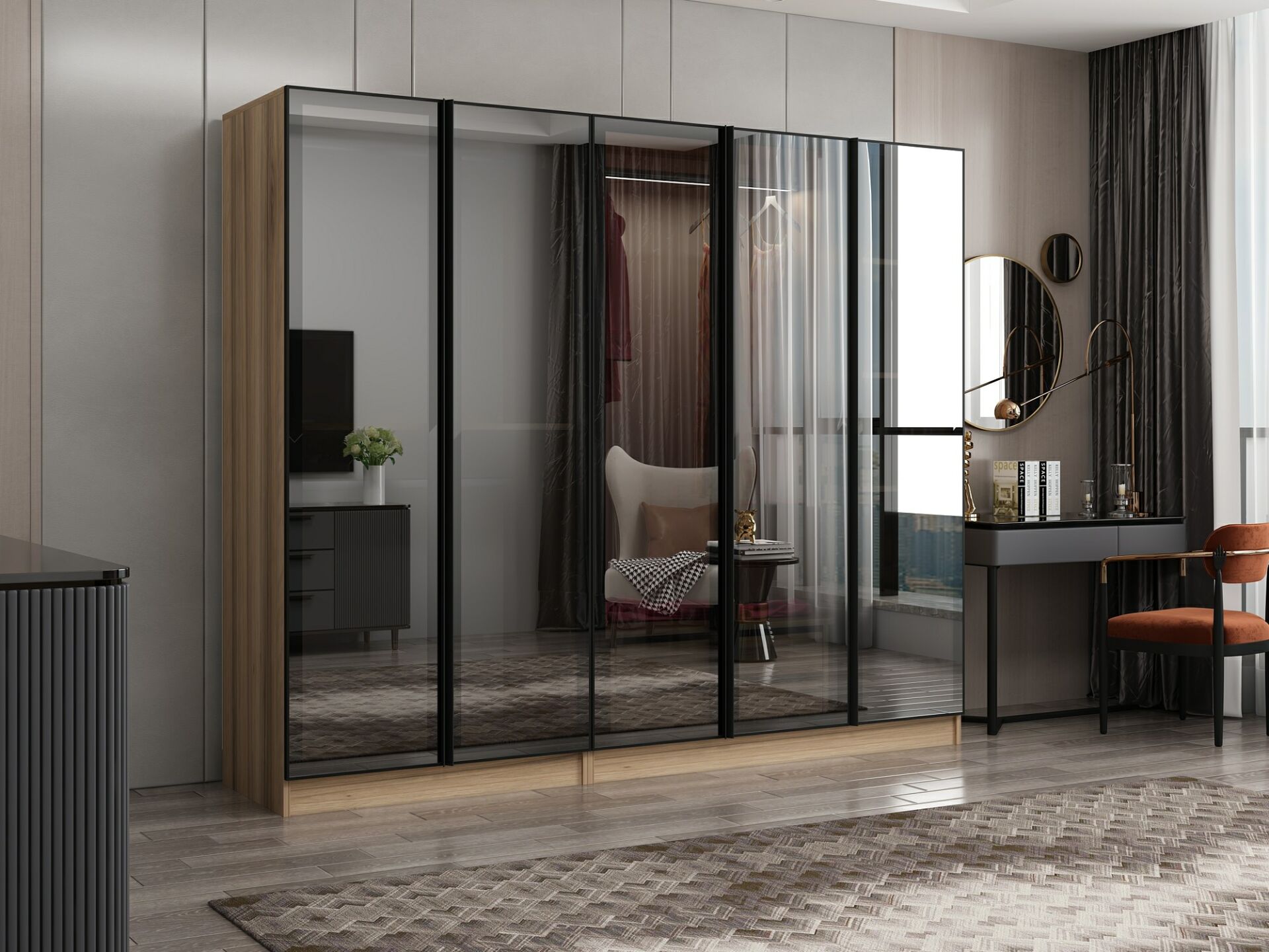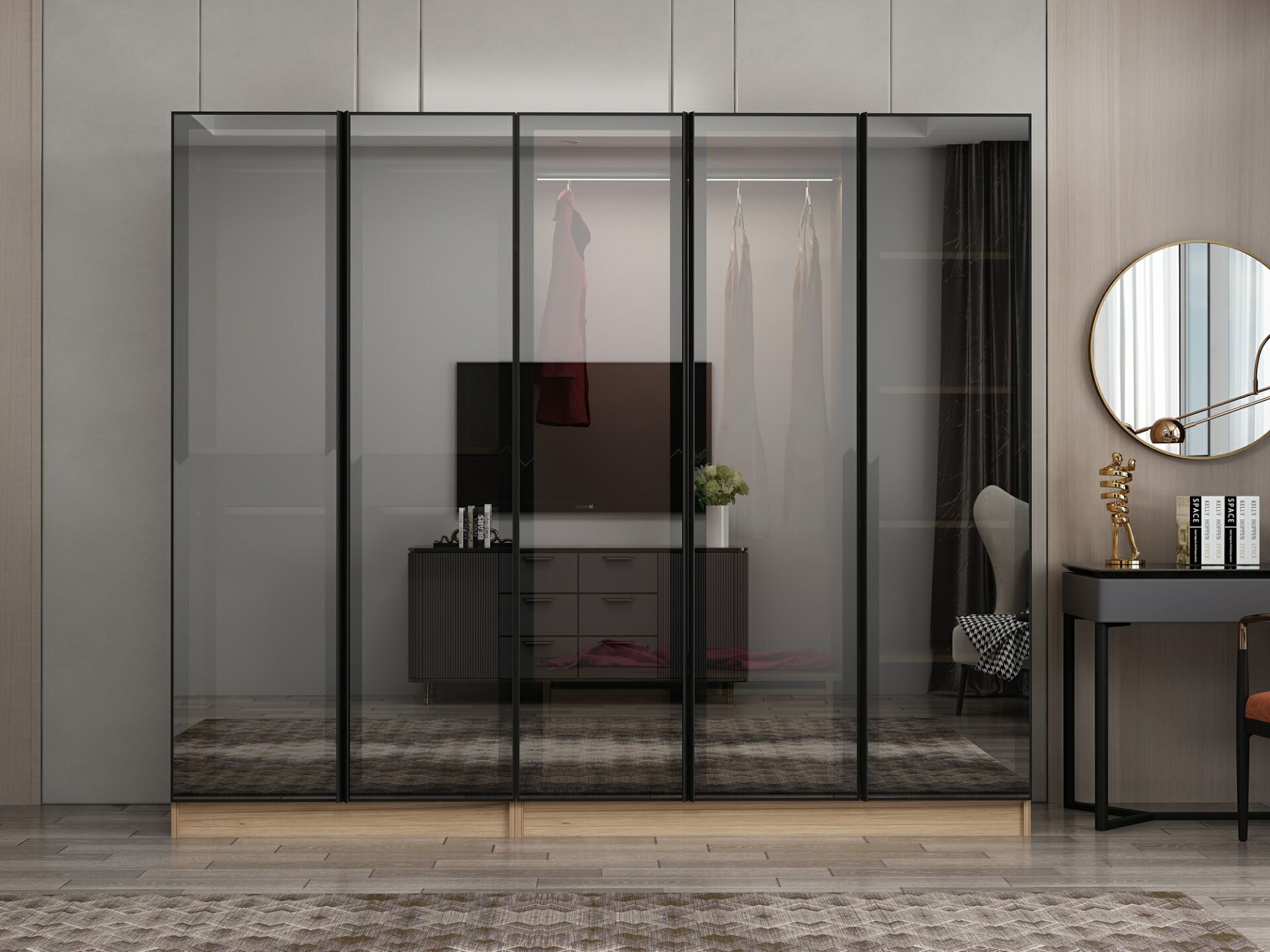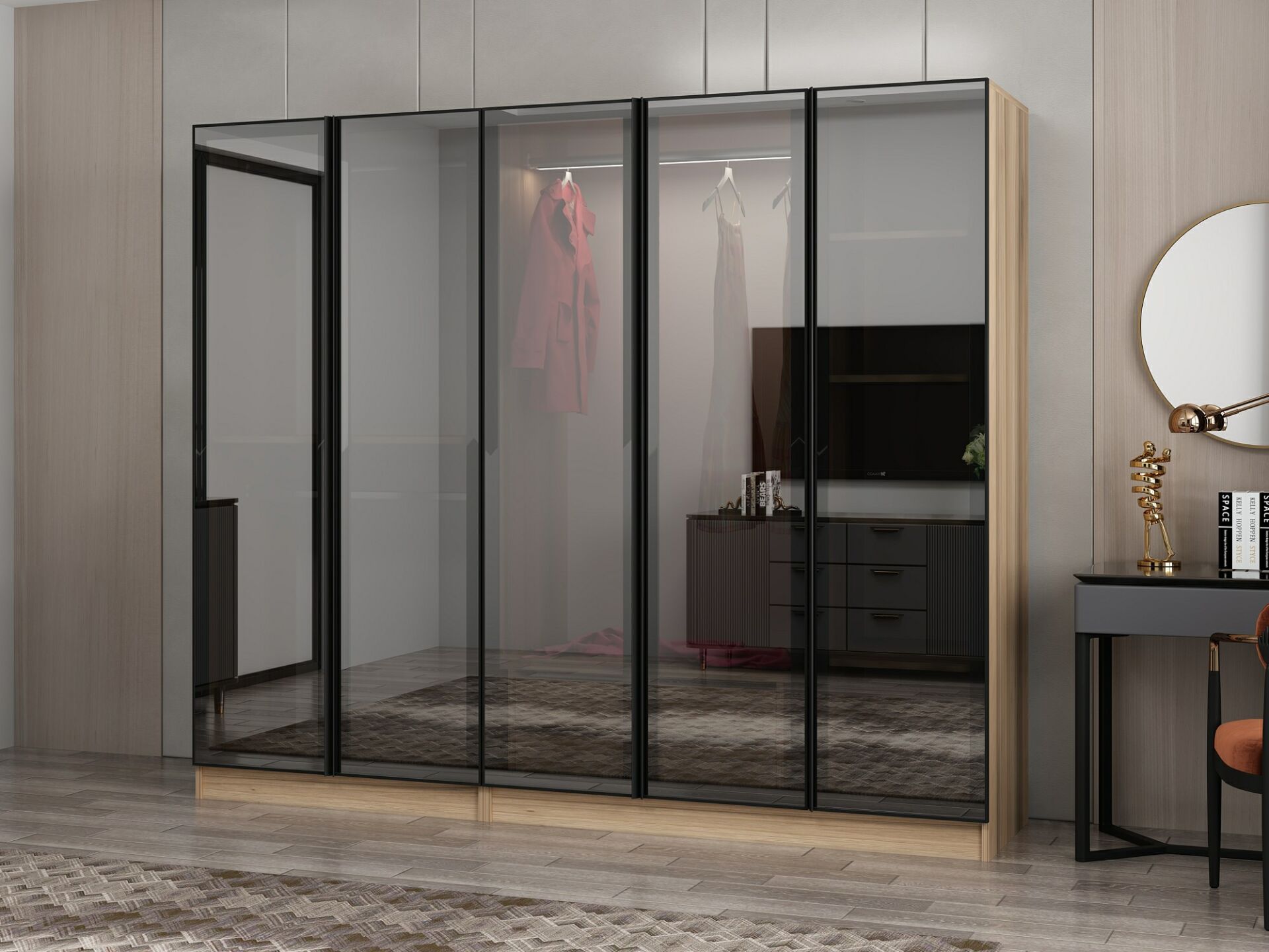Nisa 5 Kapaklı 2 Çekmece Dolap Dore Reflekte Cam