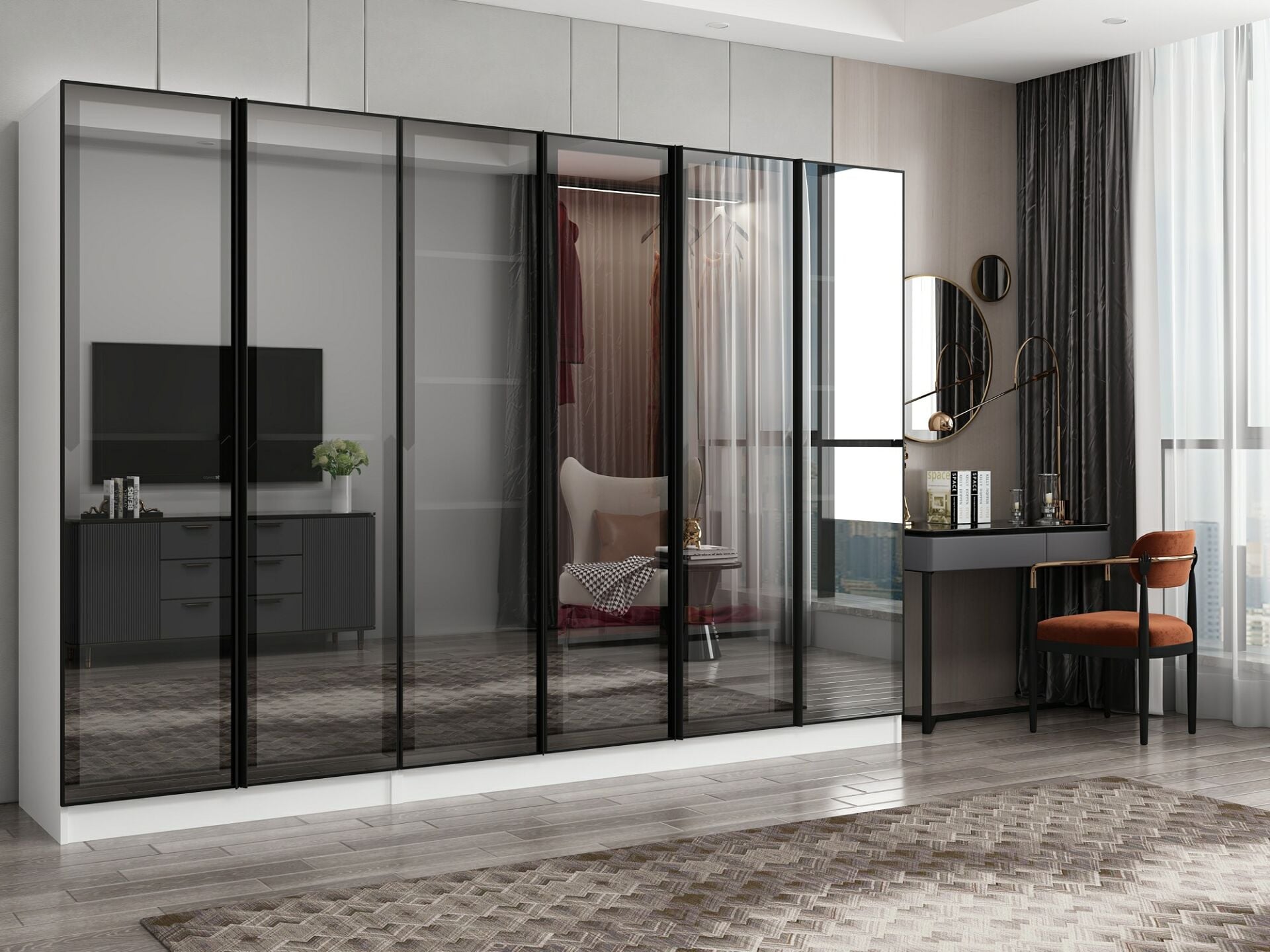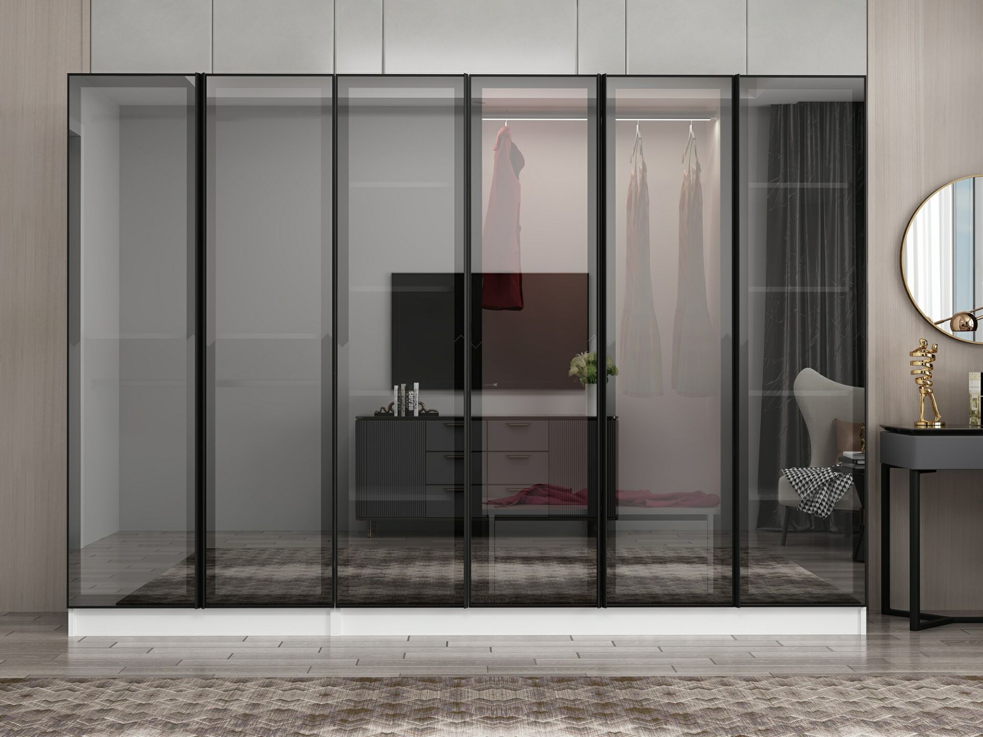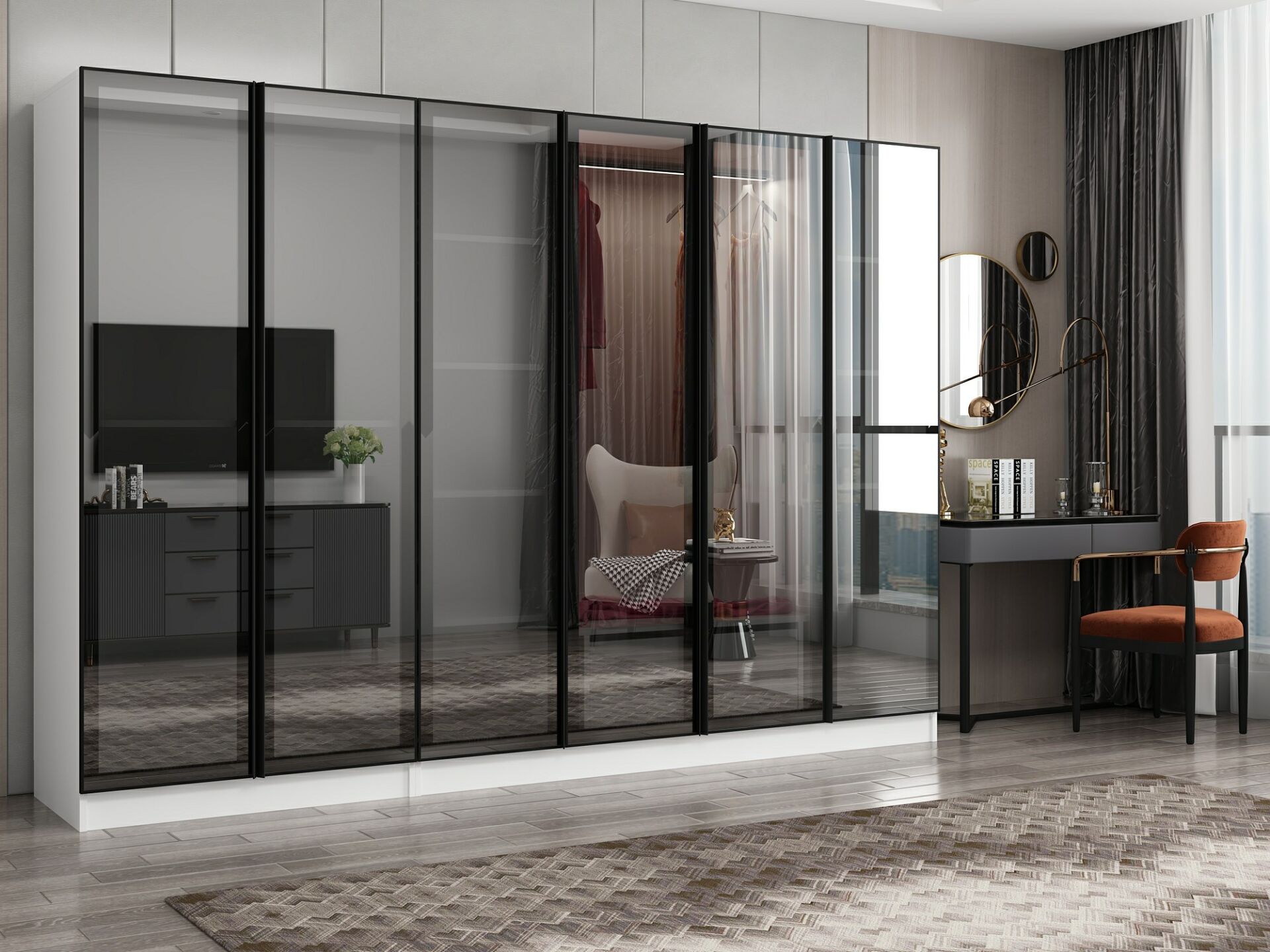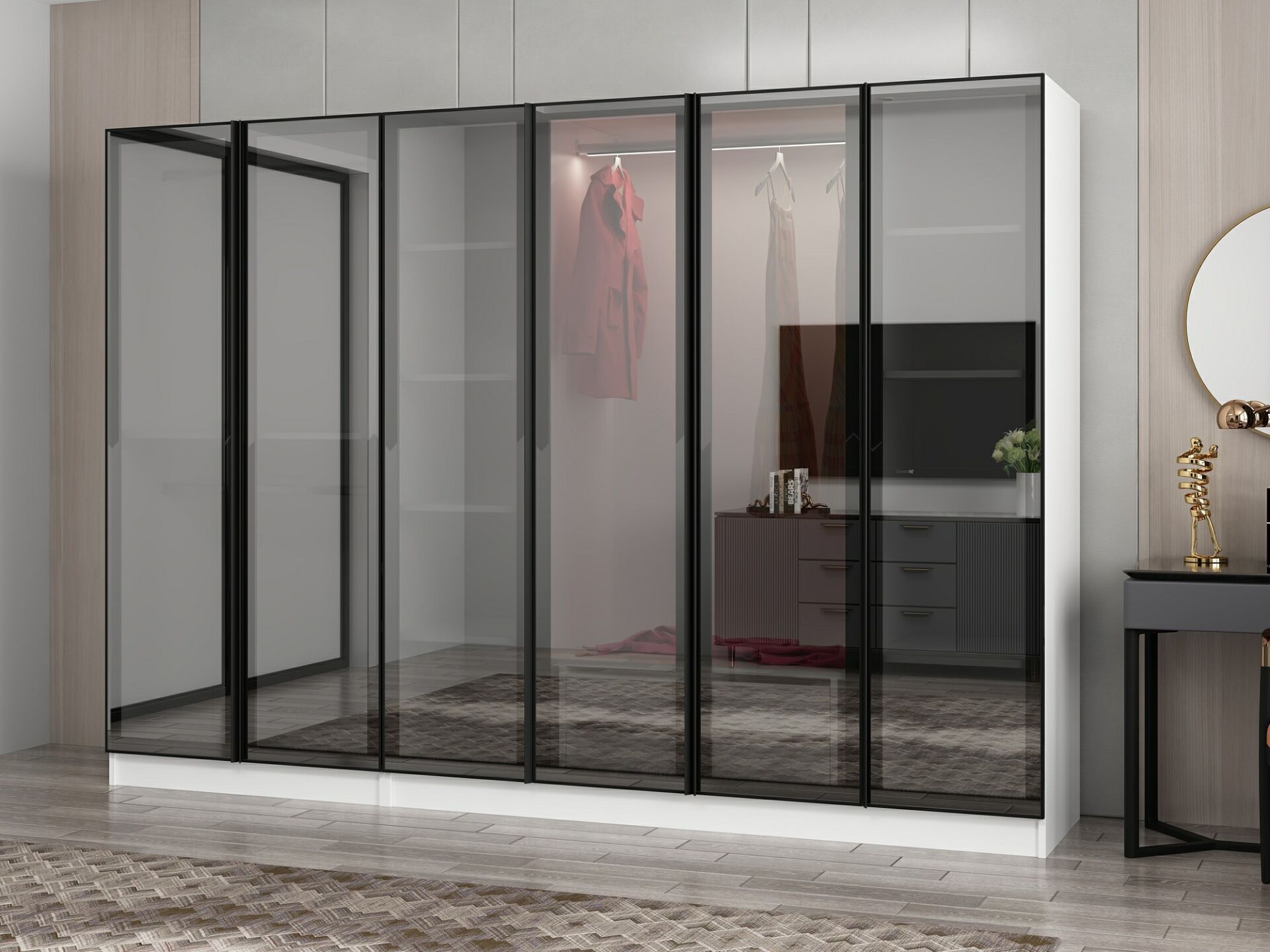 Nisa 6 Kapaklı 2 Çekmece Dolap Beyaz Reflekte Cam